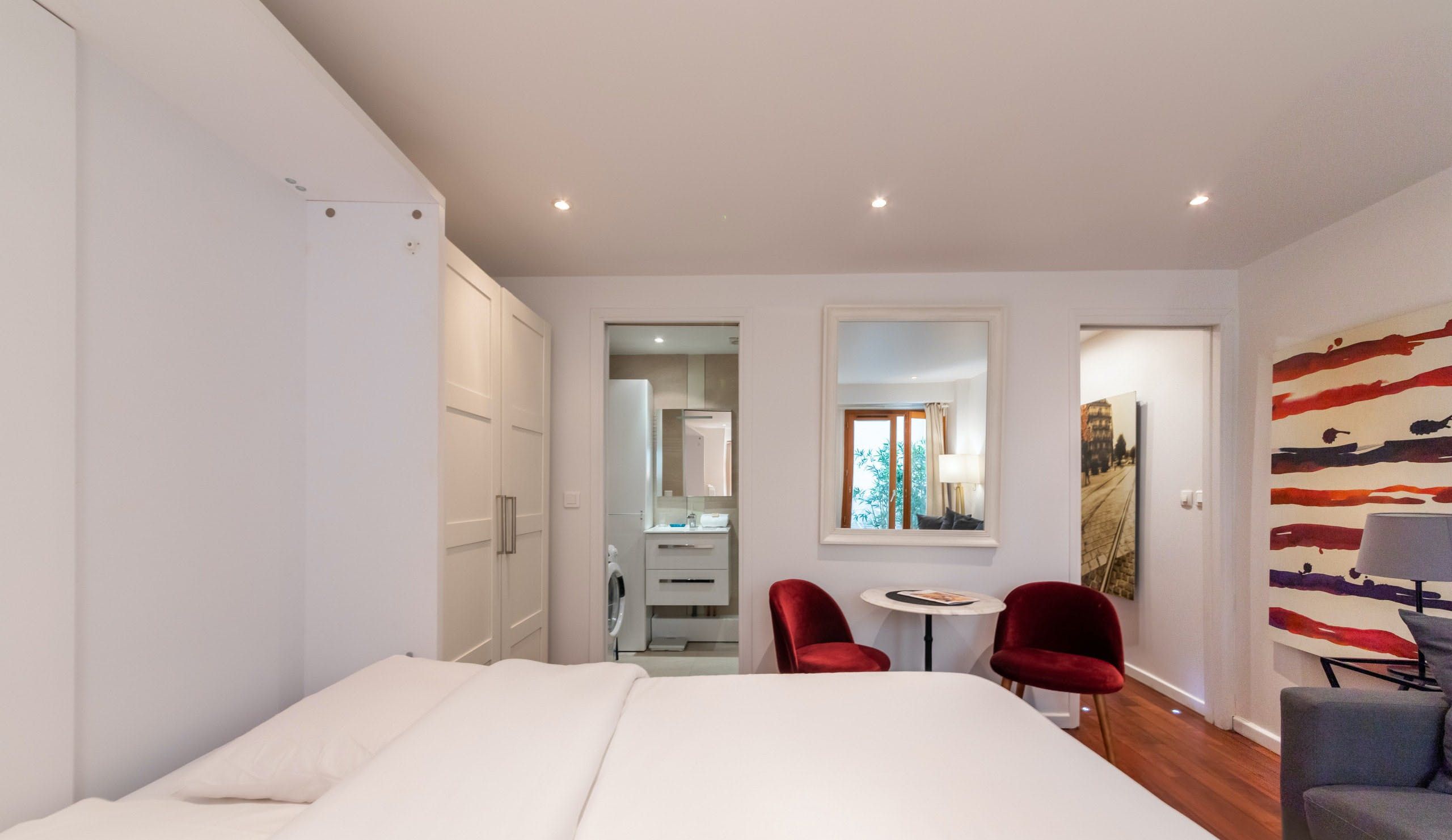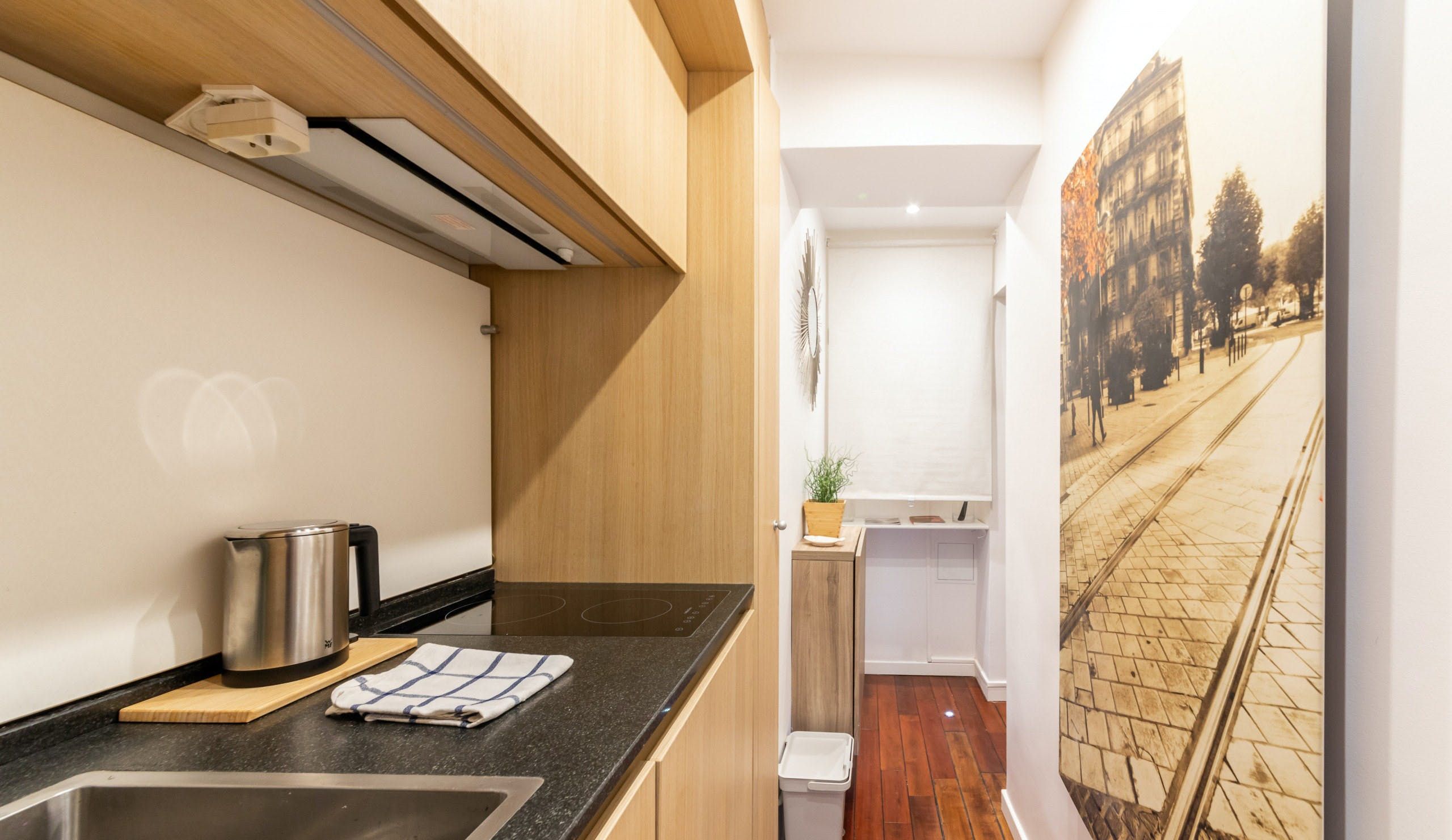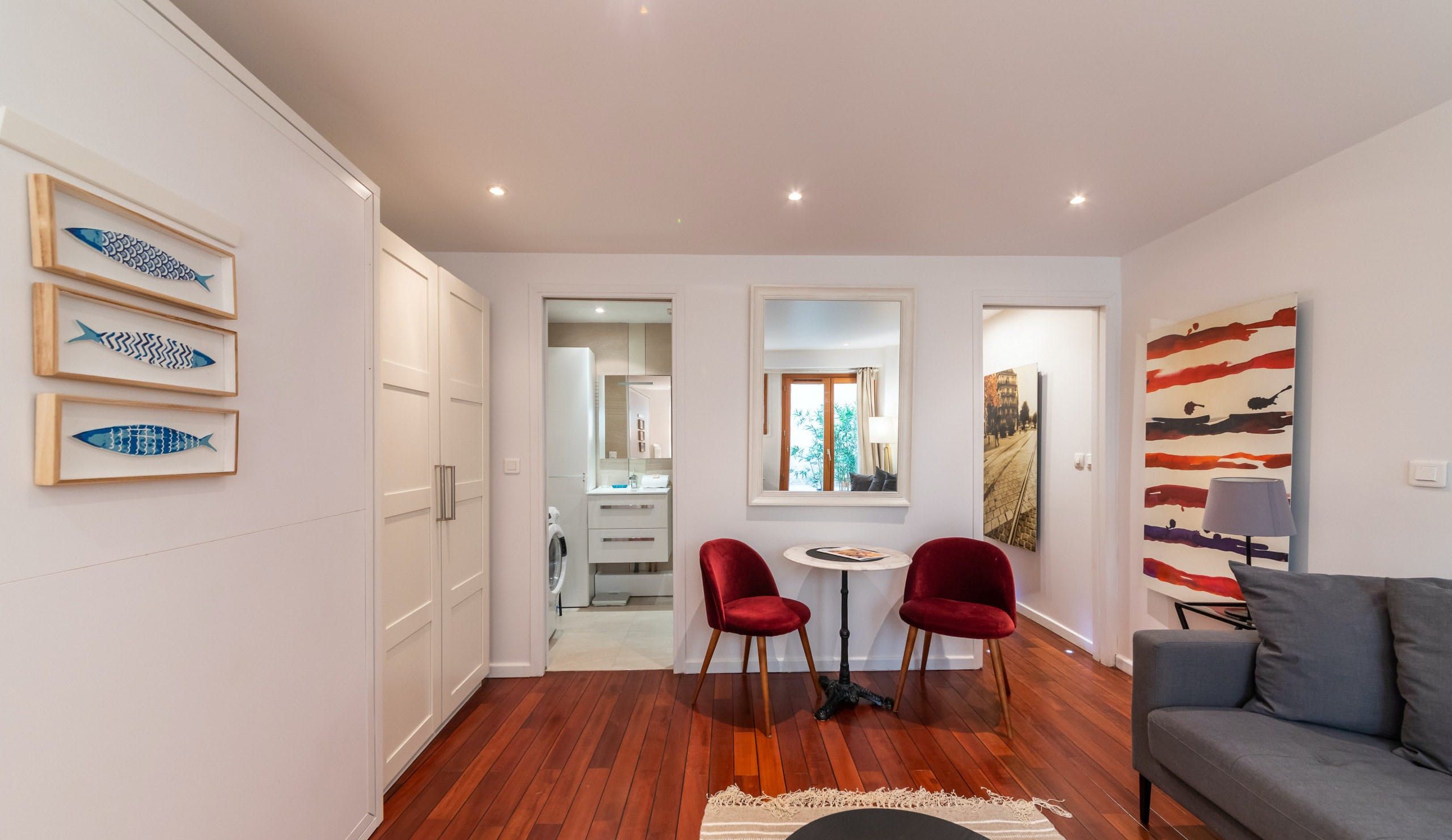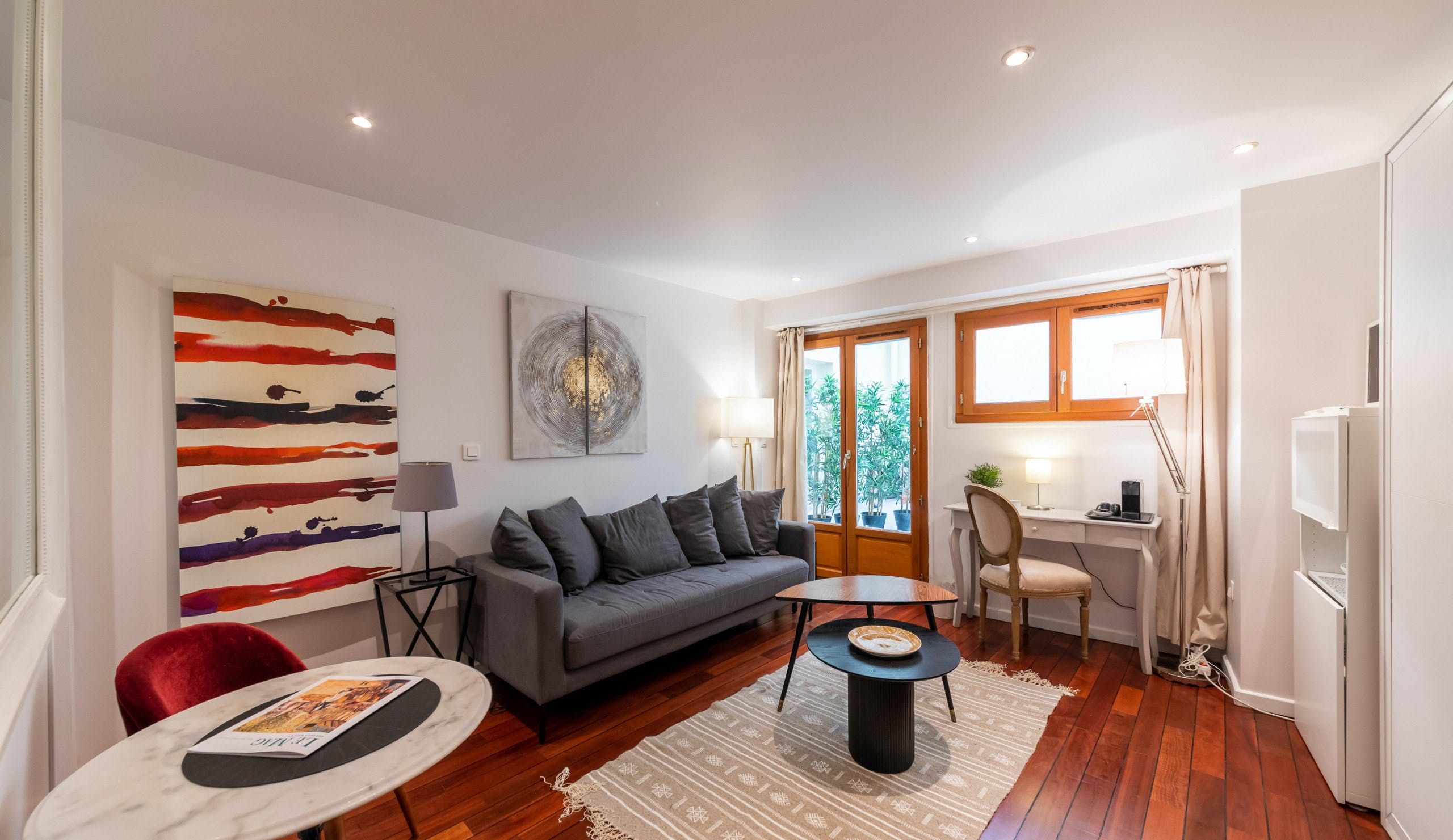 This cosy ground-floor apartment lies at the heart of Paris, perfect for those who want to get to know the capital a little more intimately. Enjoy natural sunlight from morning til dusk, with large windows in the doors to the communal terrace, where you’ll enjoy a morning coffee or a good book on the outdoor seating. Whip up a light lunch or some snacks in the kitchen, and eat on the couch while enjoying a movie or at the dining table as you discuss the day or make plans for your week. Those hoping to get some remote work or study done during their stay can take advantage of the dedicated desk, perfect for setting up a laptop and getting productive. In the evening, pull down the Murphy bed and transform the living space into a cosy bedroom where you're sure to get a great night's sleep.