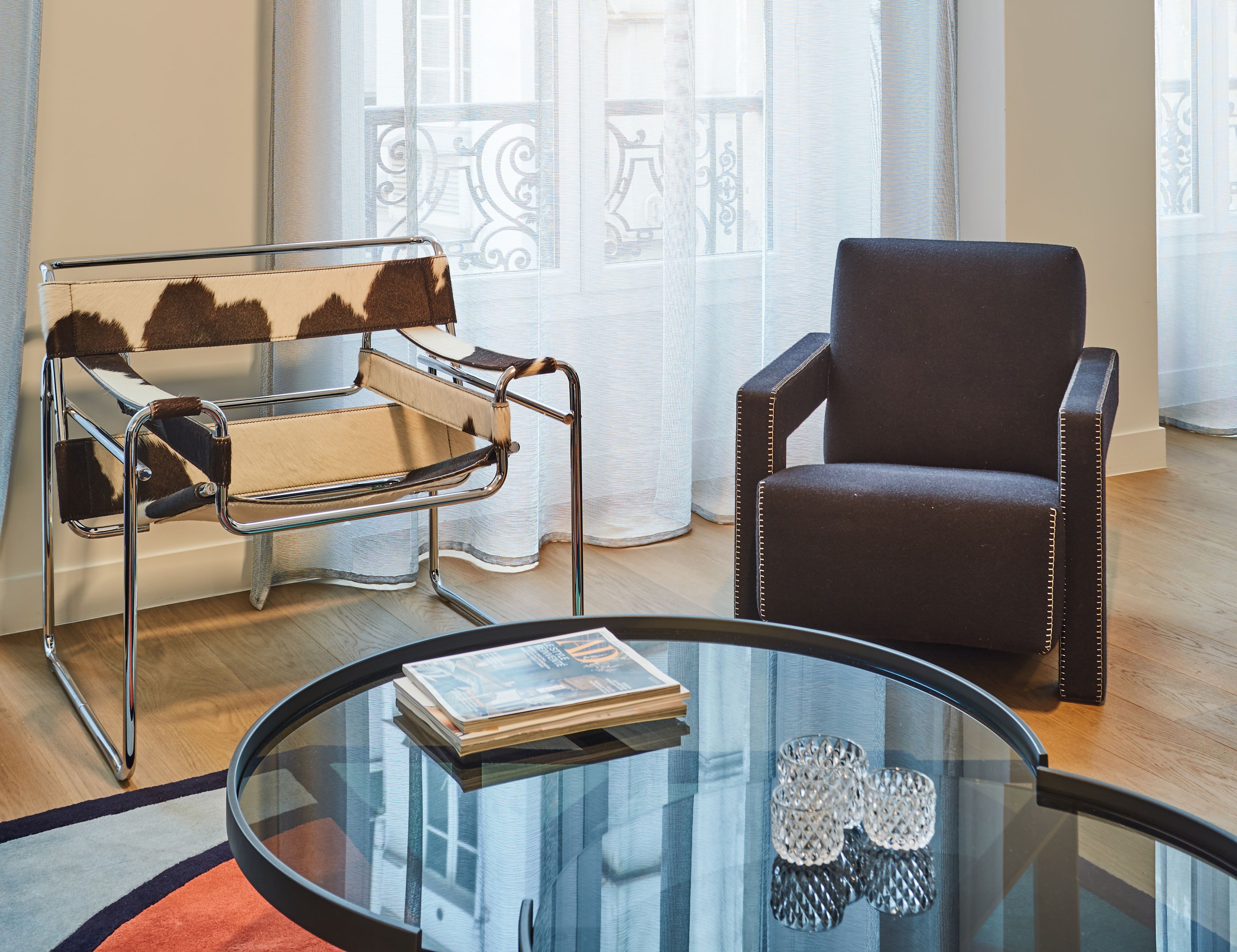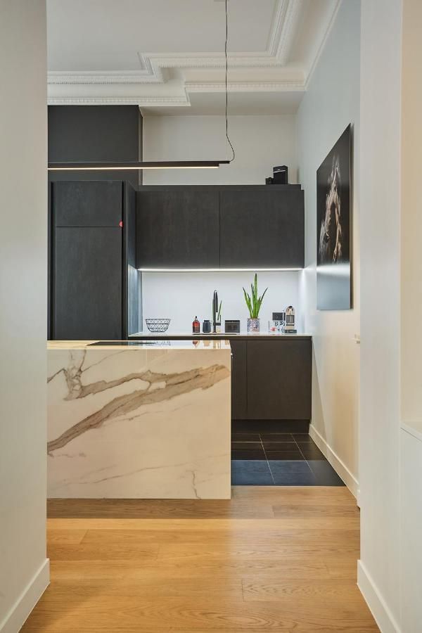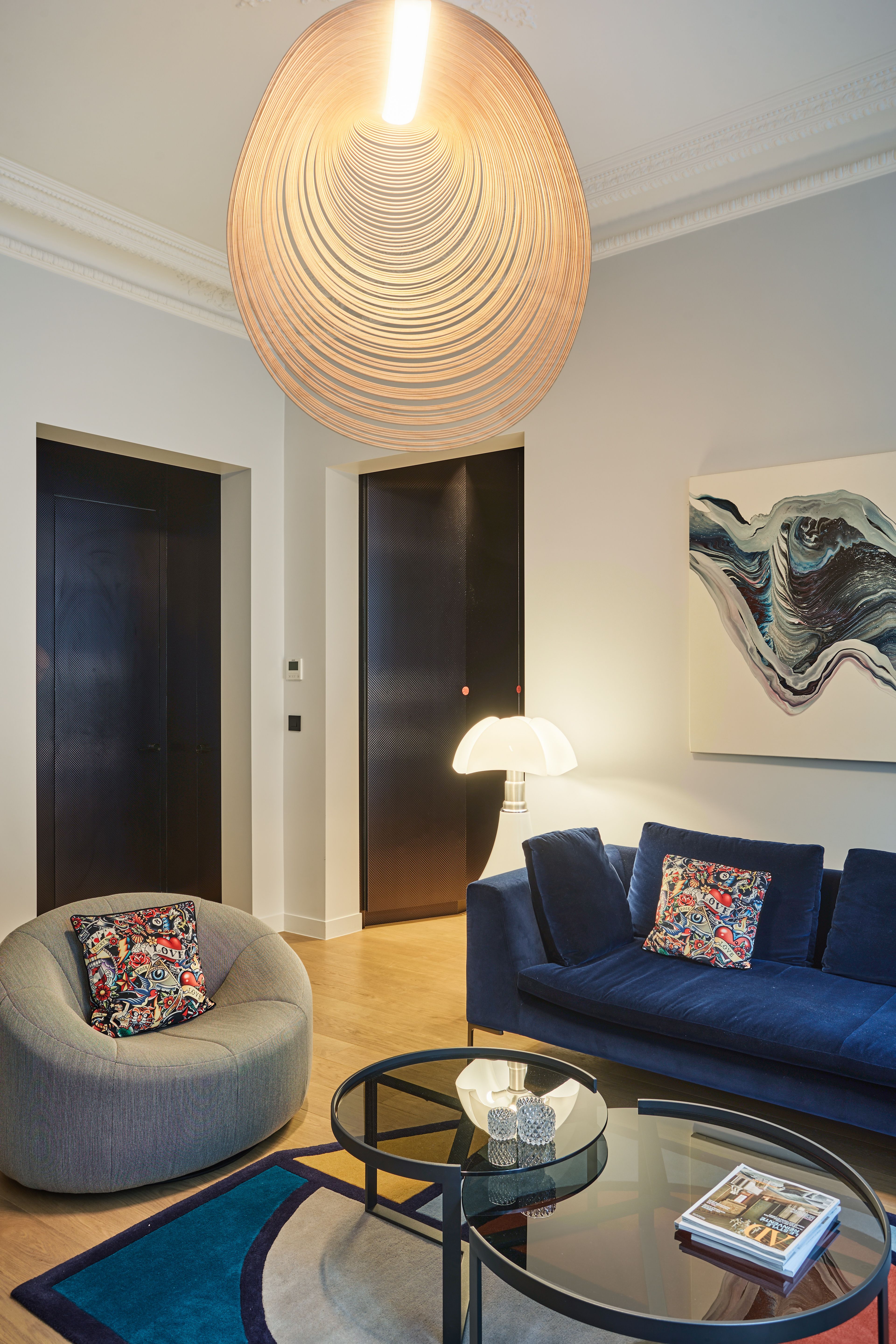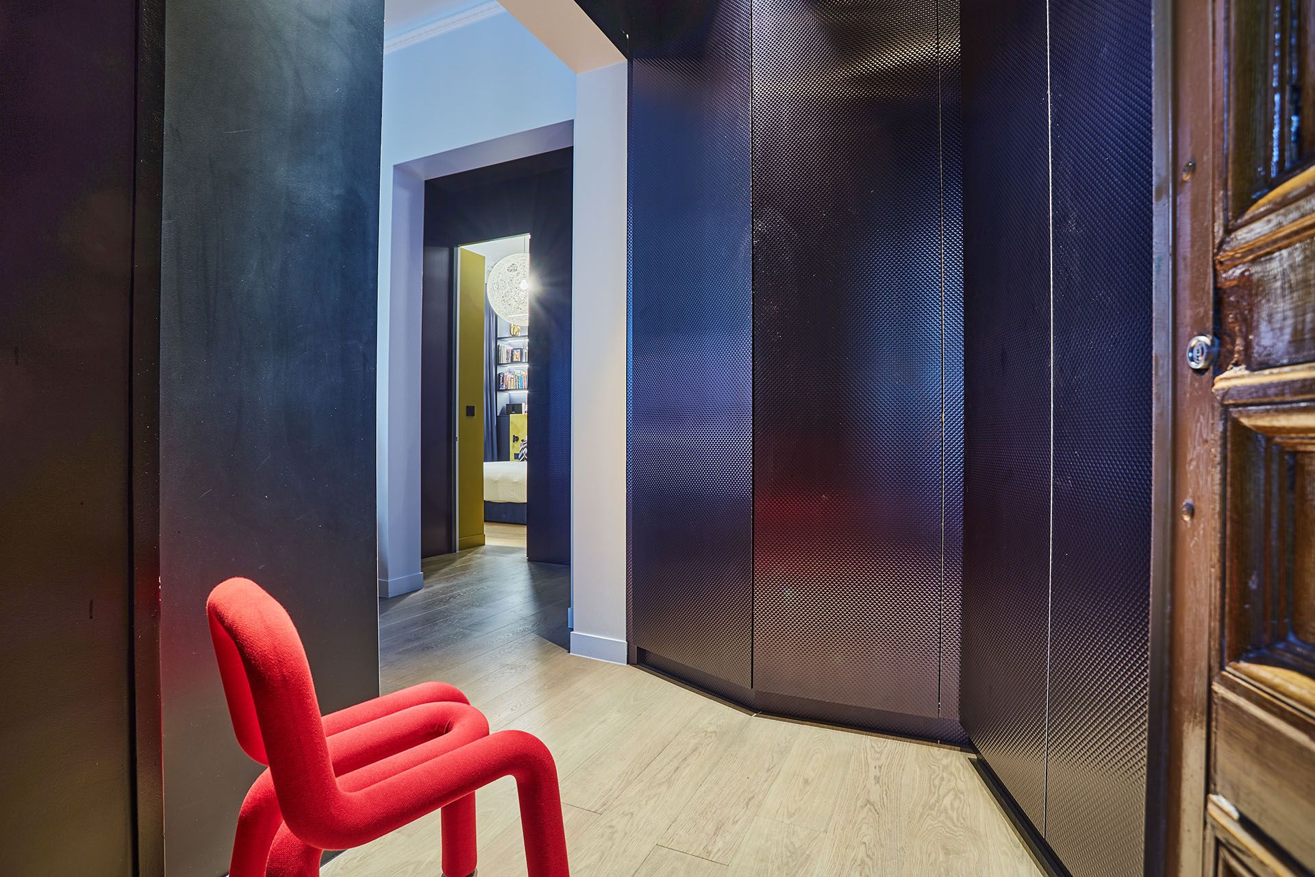 Between the buzzing centre of Paris and the super chic Le Marais neighbourhood, this art-filled apartment is ideal for creative types. It’s a ten-minute walk to the world-class collection of the Louvre, and thirteen minutes to Notre Dame. But stick around in Le Marais, and you’ll find niche museums, bijou boutiques and galleries, and trendy bars. The apartment itself is in a handsome Haussmann building of big windows and wrought-iron balconies. Stepping inside feels like stepping into one of the chichi galleries of Le Marais as big, bold contemporary artworks adorn the white walls in high-ceiling rooms. The French windows in the living room look out over an internal courtyard, so it’s blissfully quiet – perfect if you want to curl up on the velvet sofa with a book from the mini-library. The kitchen is all sleek modernism, with a quartz island and sunny breakfast table for a morning coffee and croissant.