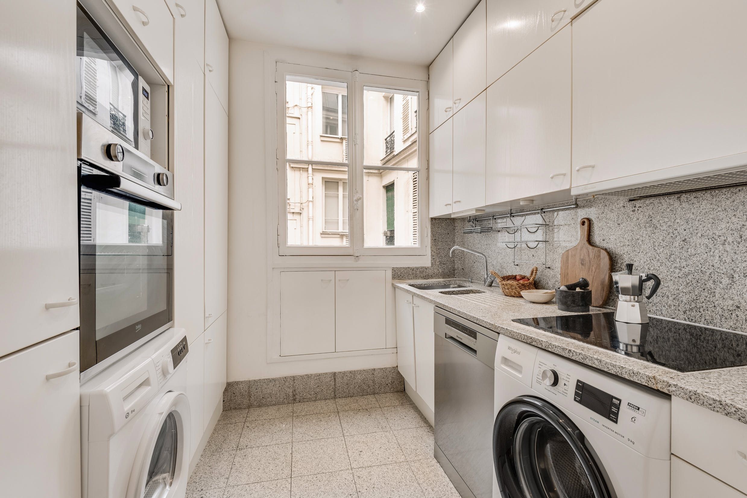 Perched around the corner from Hôtel de Ville and fringing happening Marais, you'll be in good company at this stylish apartment. With a sweep of ornate French windows and chic interiors to welcome you, this home couldn't feel more Parisian if it tried. If we were being picky, the second bedroom feels compact, and it's worth noting the last two guests will be sleeping on a sofa bed in the living room. But for a home in such an unbeatable location, we can forgive that.