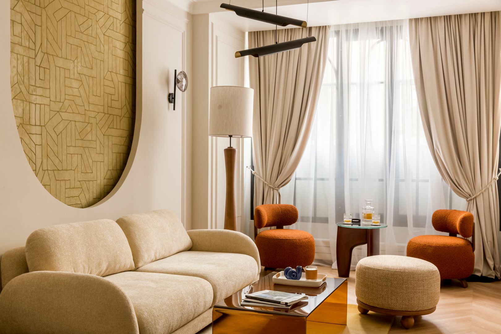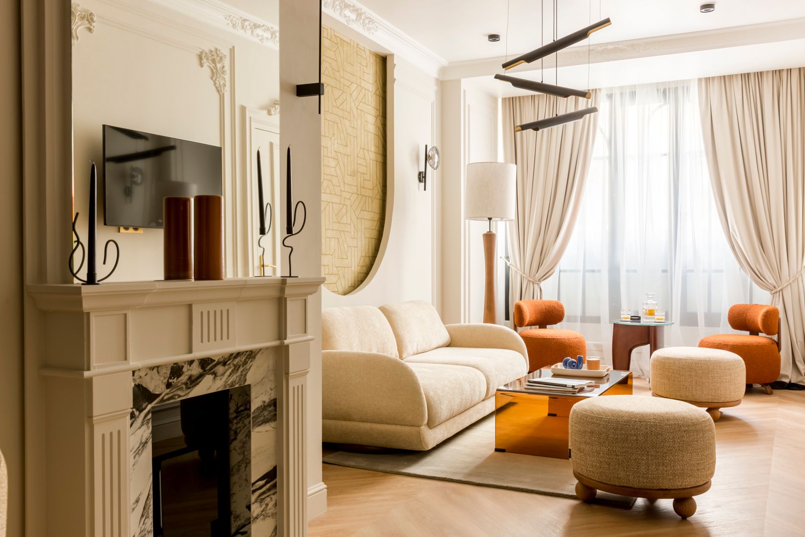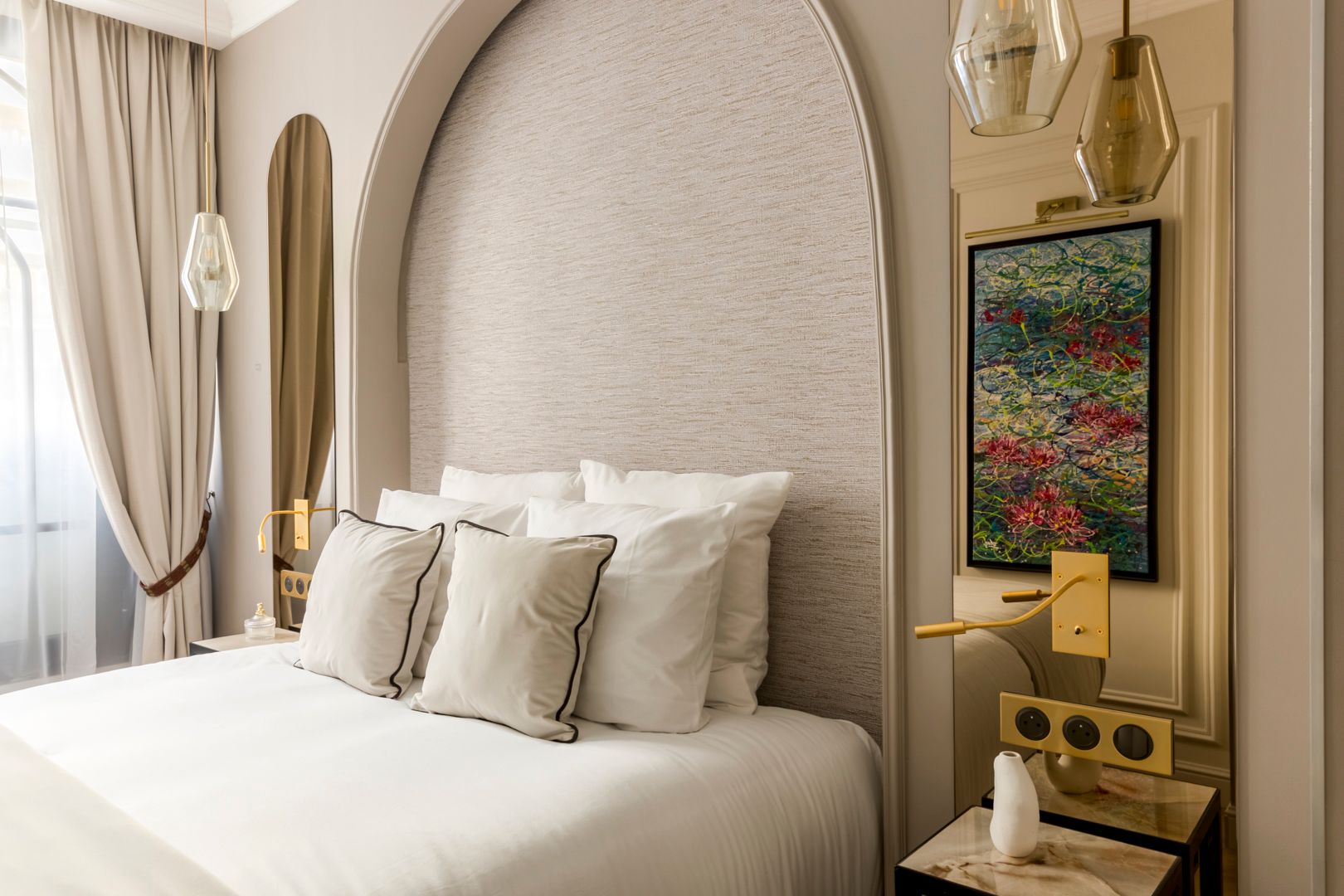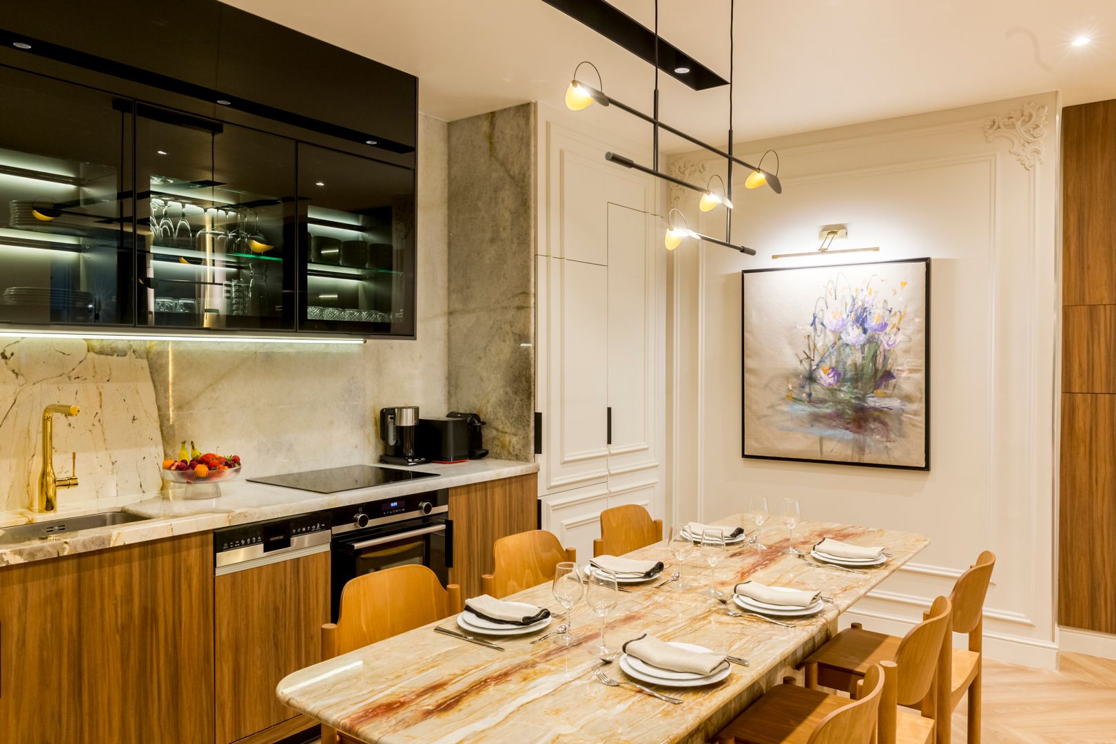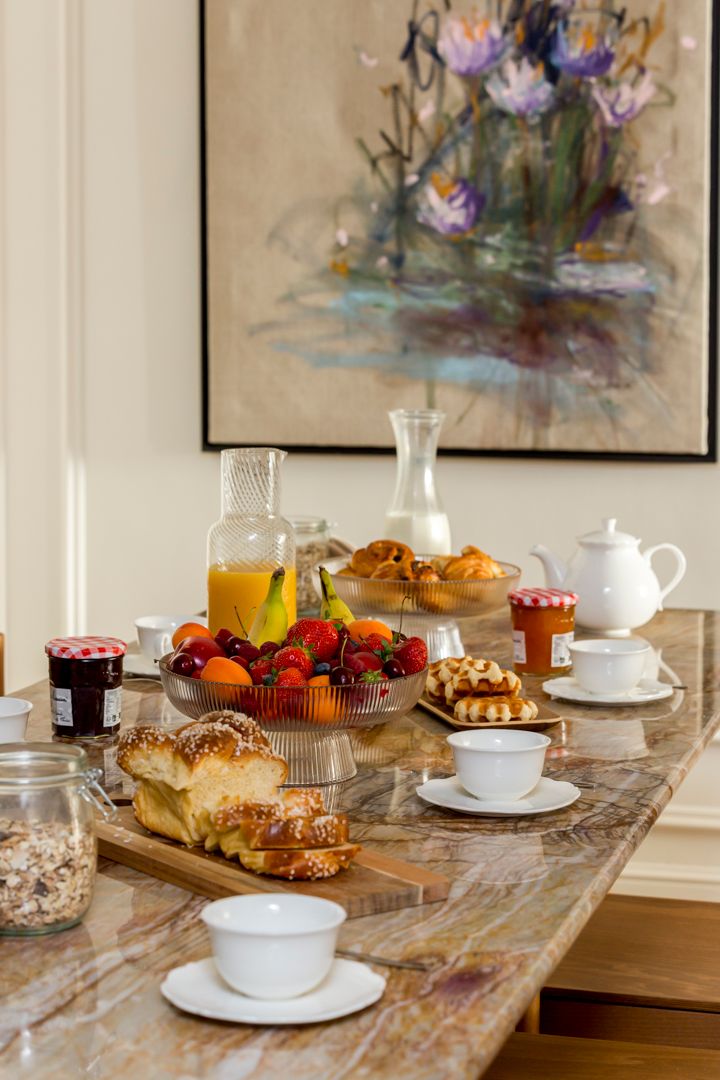 A fifteen-minute walk from the Eiffel Tower, this apartment puts you smack dab in the heart of Paris. Sightseeing is a given here, but there are plenty of shops, restaurants, and bars nearby where you can soak up the atmosphere. Back home, the living space allows you to relax in style. There's also a compact but well-appointed kitchen, a collection of cosy bedrooms, and two sleek bathrooms plus a separate WC. We love the quintessential Parisian touches, too – from modern versions of Monet's water lilies to ornate cornices. We think you'll settle in nicely here.