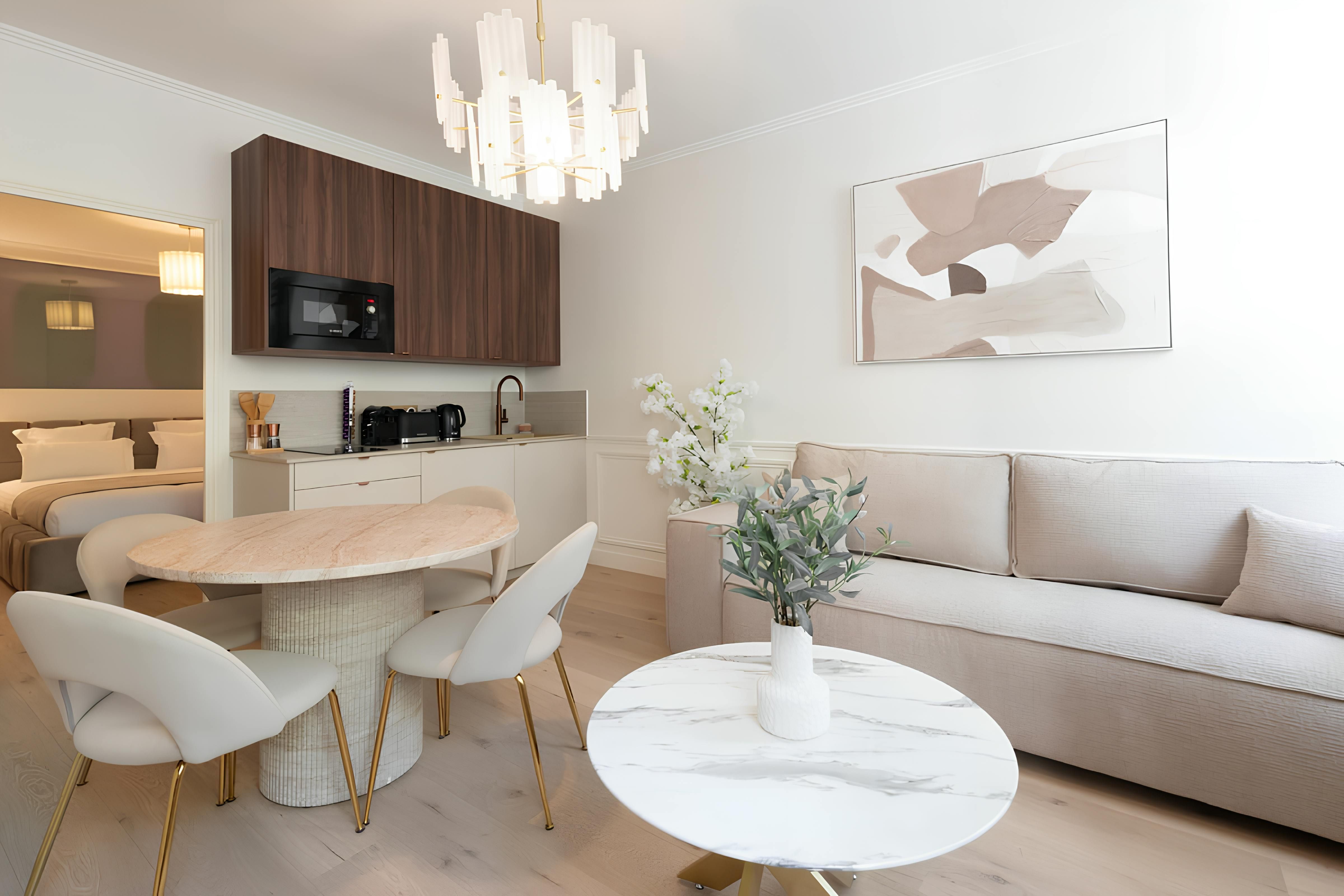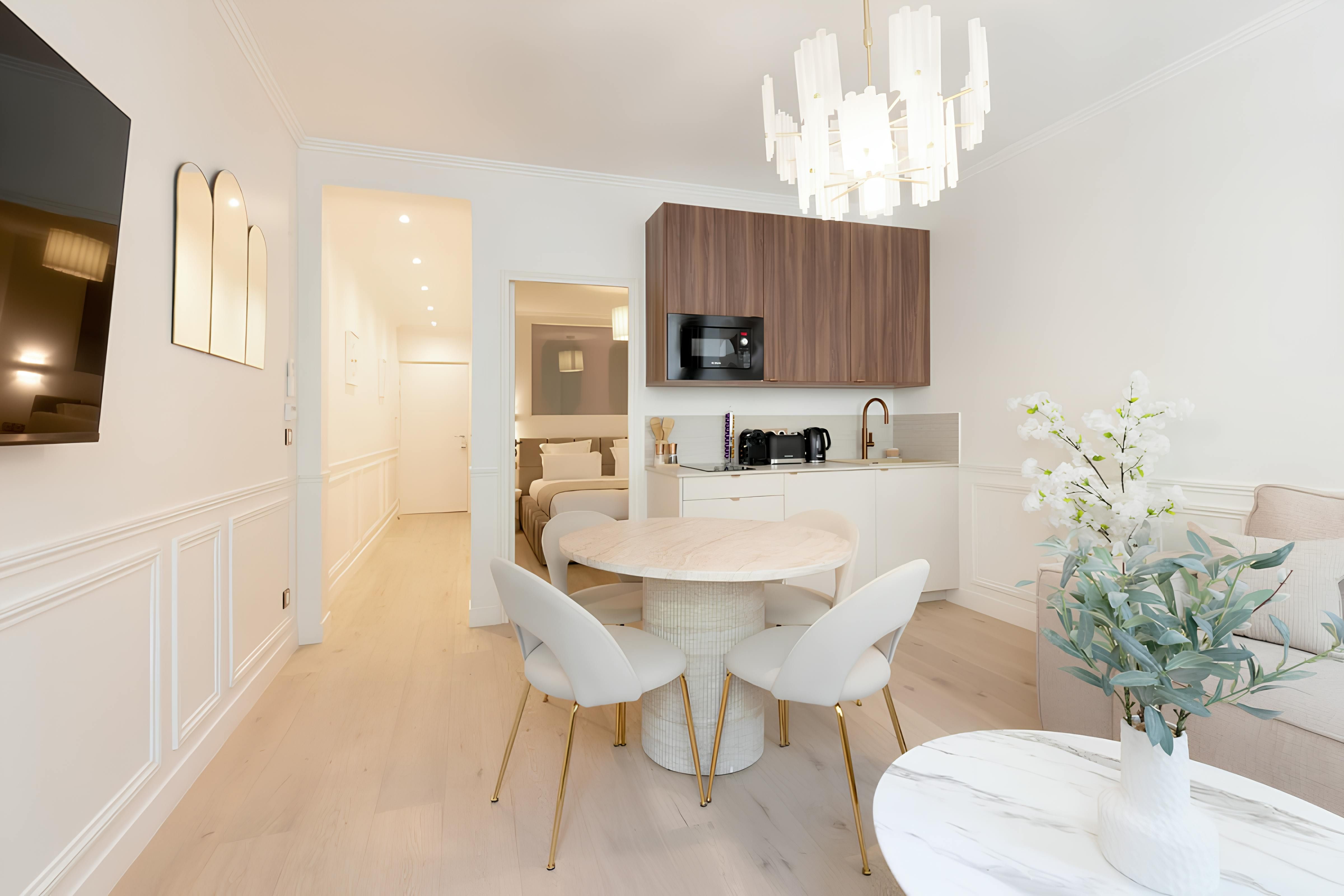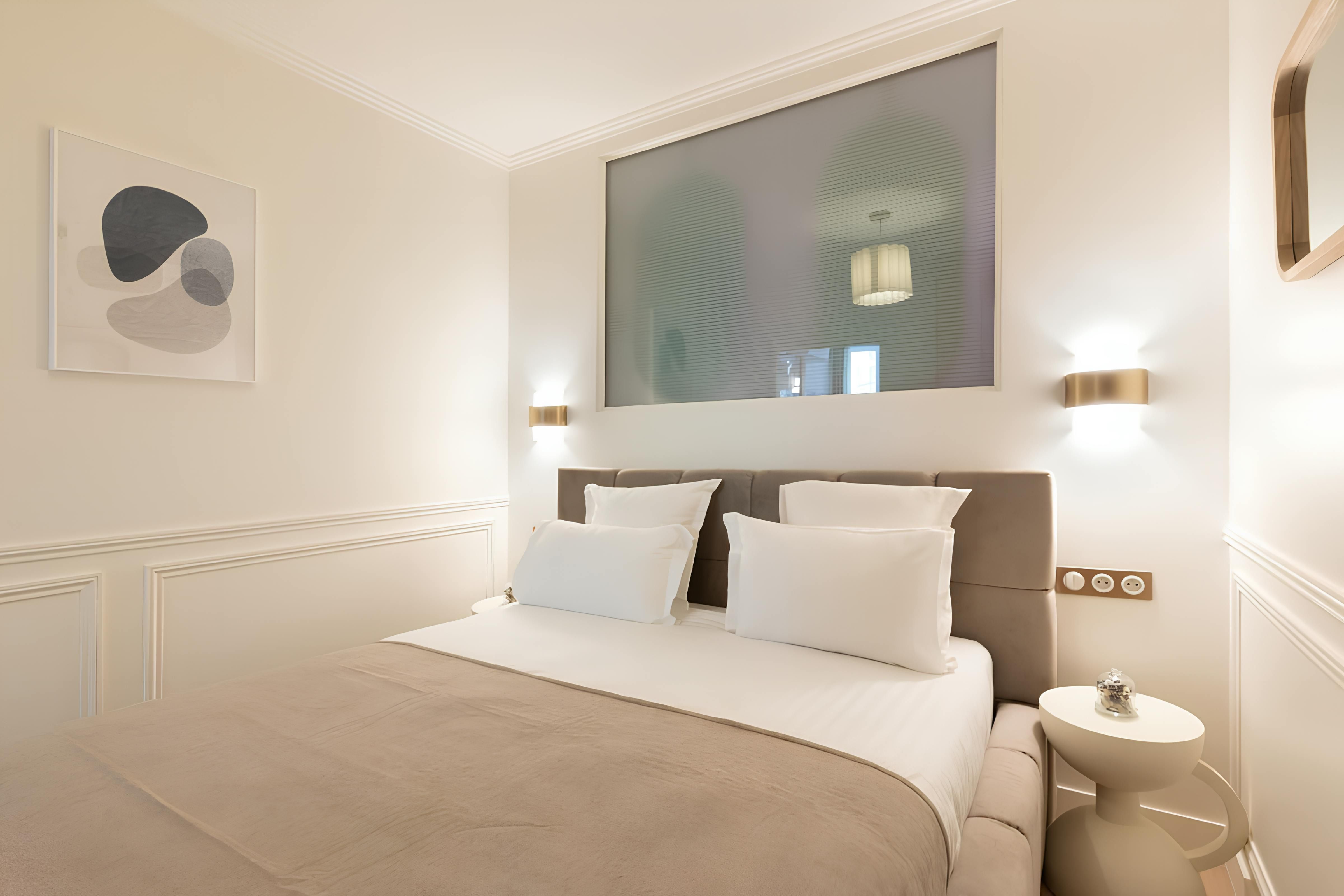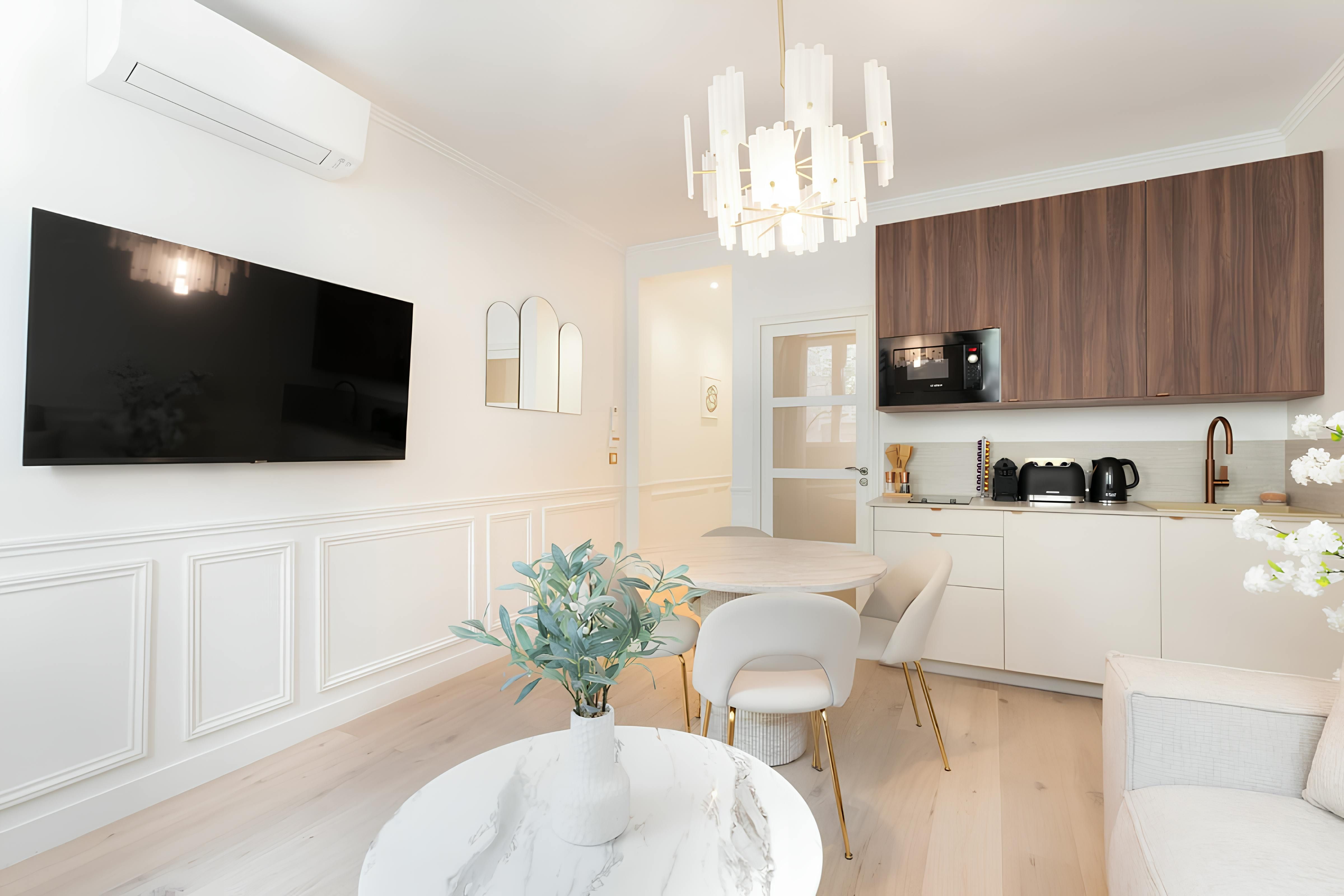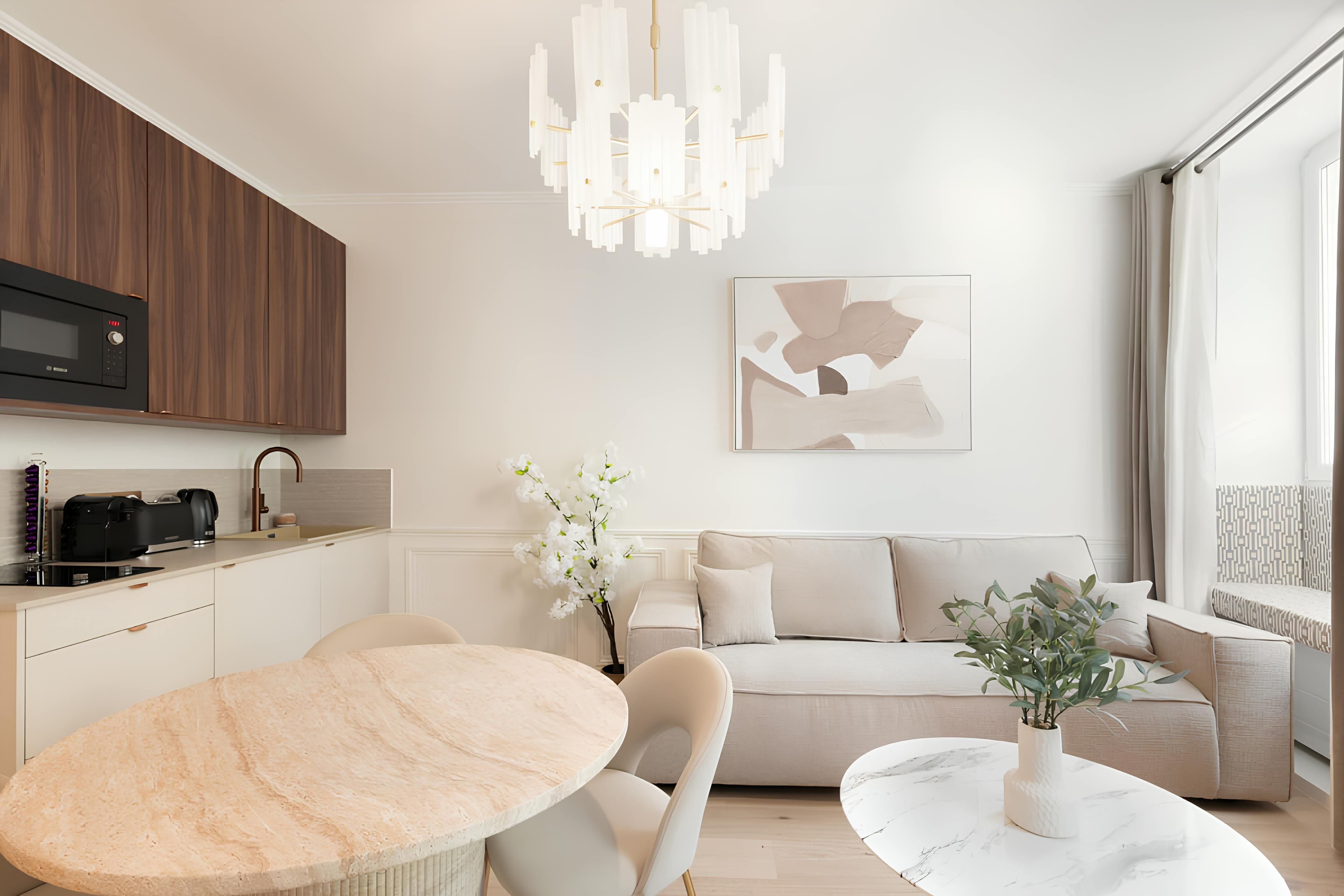Elegant but comfortable, this apartment is a great Parisian base. It’s modern and practical, with a kitchenette and an open-plan living and dining space. This is where two guests will sleep on a sofa bed – if you want more space, a maximum occupancy of two might be more suitable. The apartment is cleaned each day, which helps to keep things organised. This home is next to Parc Clichy Batignolles, with Brochant Metro station a few minutes away, giving you easy access to the rest of Paris.