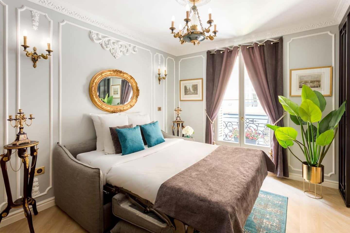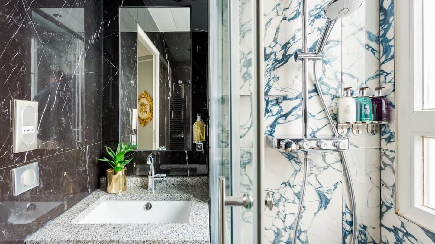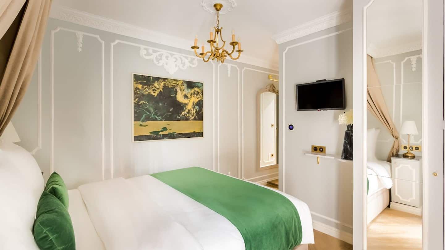 Exuding elegance and sophistication, this stunning apartment housed in a heritage building dating back to 1784 under the reign of King Louis XVI has been charmingly renovated by an esteemed Parisian architect to make for a luxurious home in the heart of the city of love. Just fifty metres from the Champs-Élysées, you really couldn't be better placed for shopping, sightseeing and flat white sipping in the sunshine – there's a host of classy cafés dotted below. Tick some of the most beloved sights in Paris off your bucket list. Ascend to the top of the Iron Lady with a ten-minute stroll to the Eiffel Tower, and visit the Arc de Triomphe only a couple of kilometres from your door. Back inside, from the moment you enter you'll feel the graceful ambience surrounding this palatial interior, benefitting from gold-trimmed furnishings, ornate mouldings and dazzling chandeliers. After a restful night's sleep in the mint green master bedroom that's fit for royalty, sit down for your morning croissants and coffee at the marble-topped breakfast bar. Speaking of, you'll notice the striking marble-clad bathrooms (all three of them) – there's no queuing for the shower here. Everything has been done with class and comfort in mind within this diamond of an apartment.