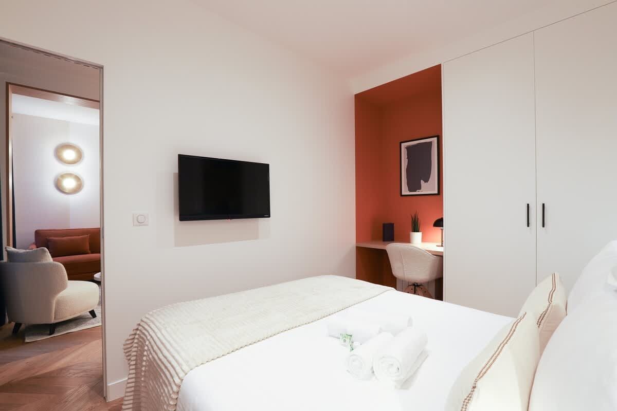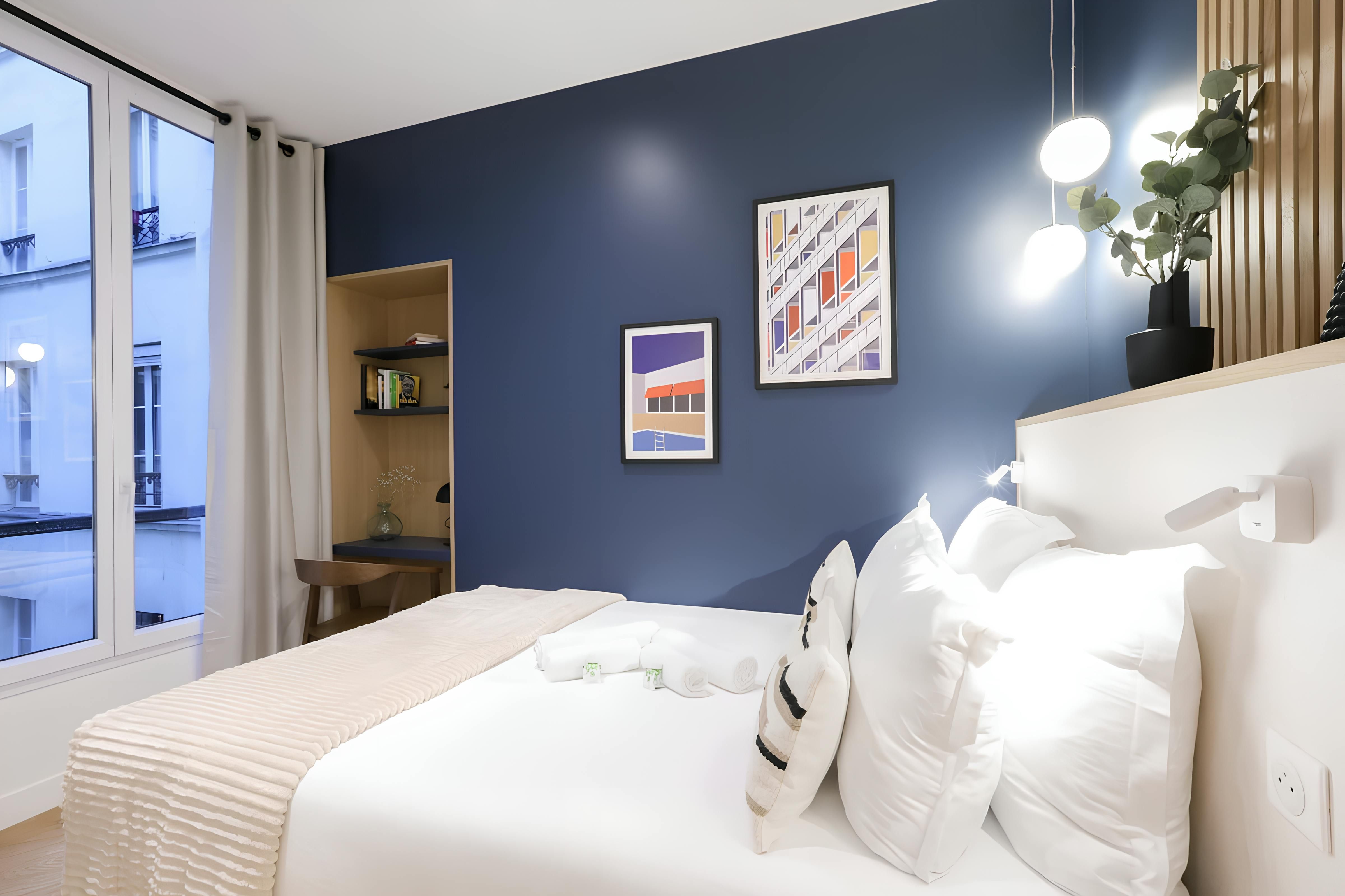 Set in the heart of the vibrant Faubourg Saint-Martin neighbourhood, this apartment is within walking distance of the Musée des Arts et Métiers and the Canal St Martin. There are also plenty of cafes, restaurants and shops in the locale. Back at this architect-designed apartment, there’s an open-plan living space, which also sleeps guests five and six on a sofa bed. Both bedrooms also have desks for when you need to work while away in Paris – this home is ideal for business and leisure travellers.