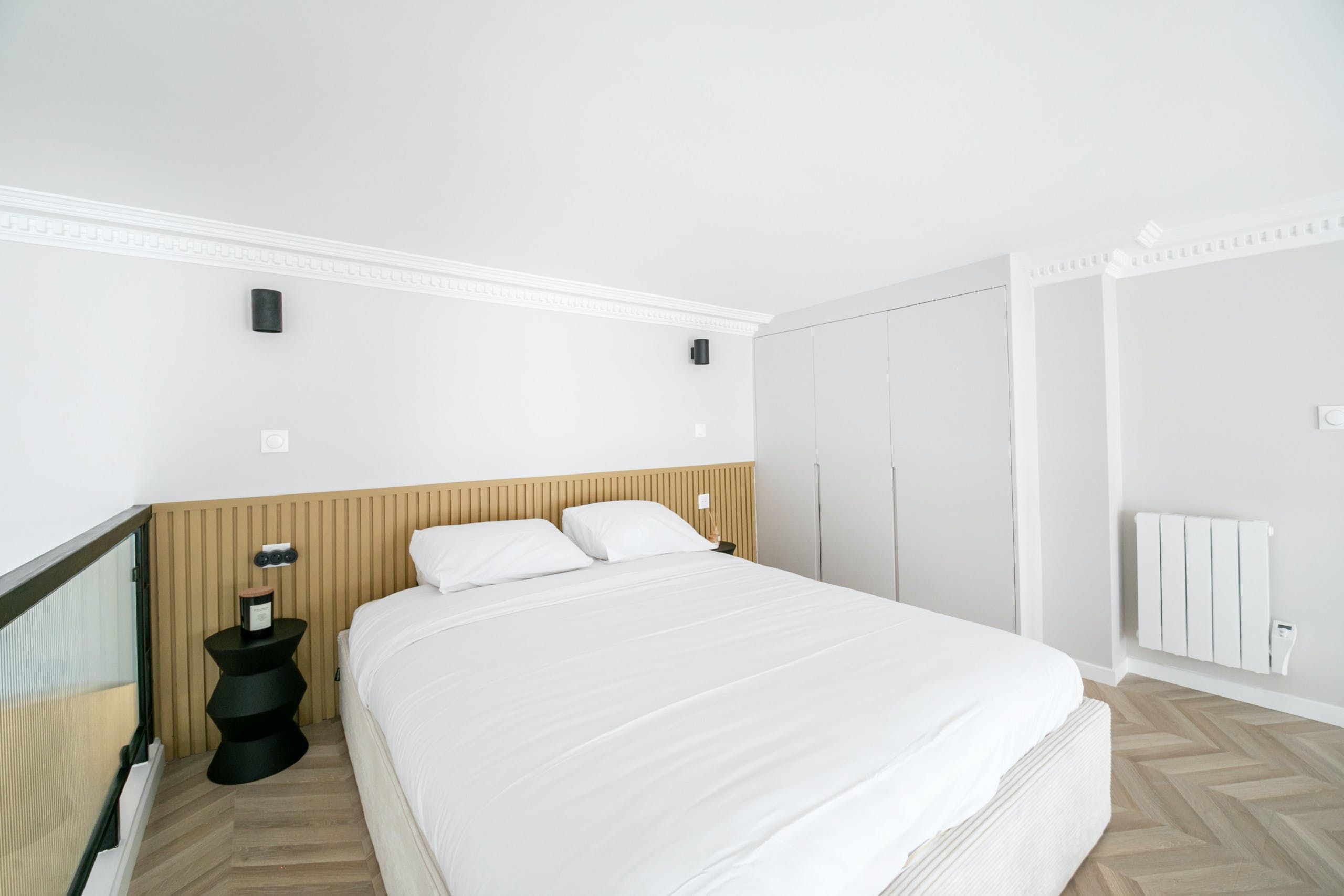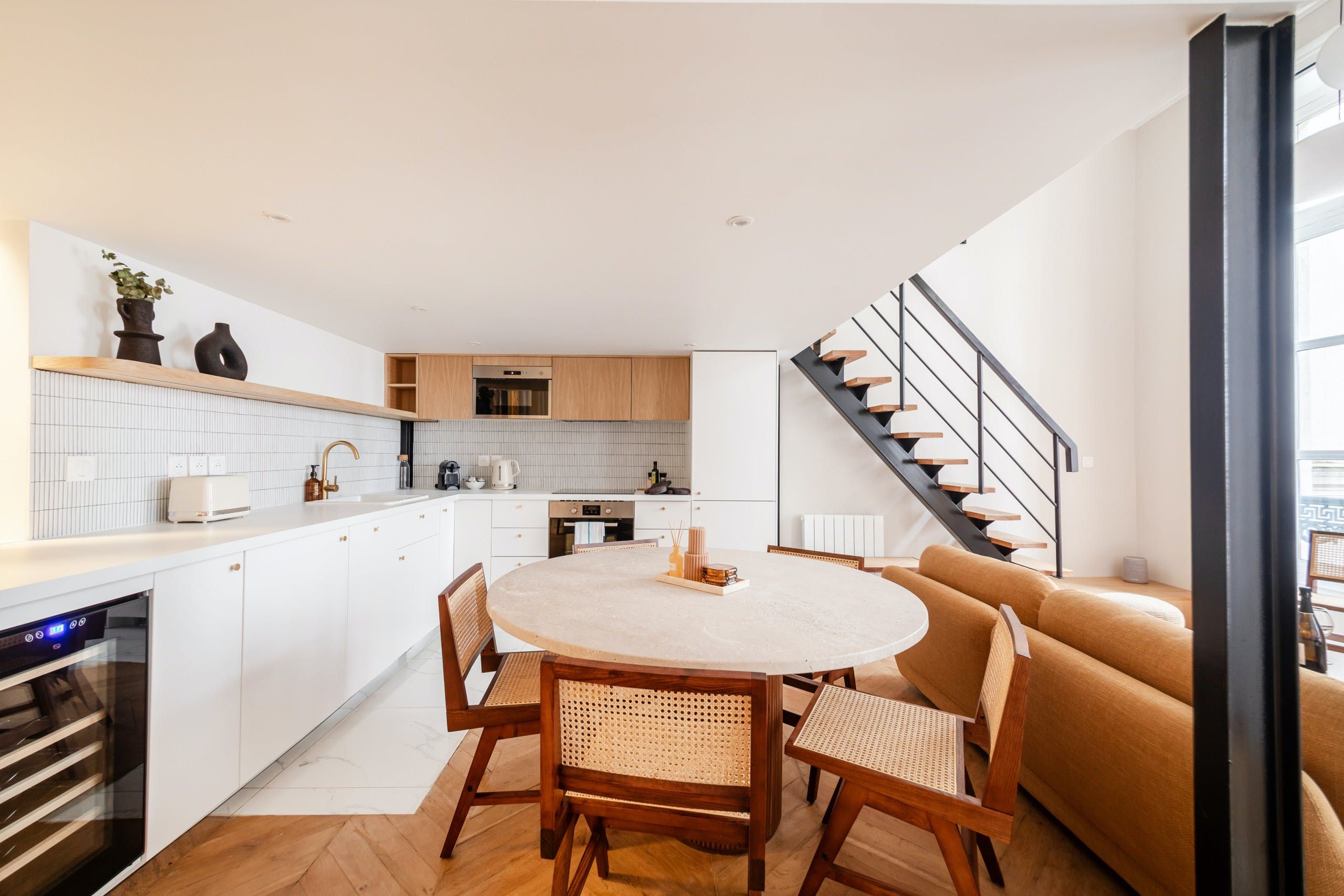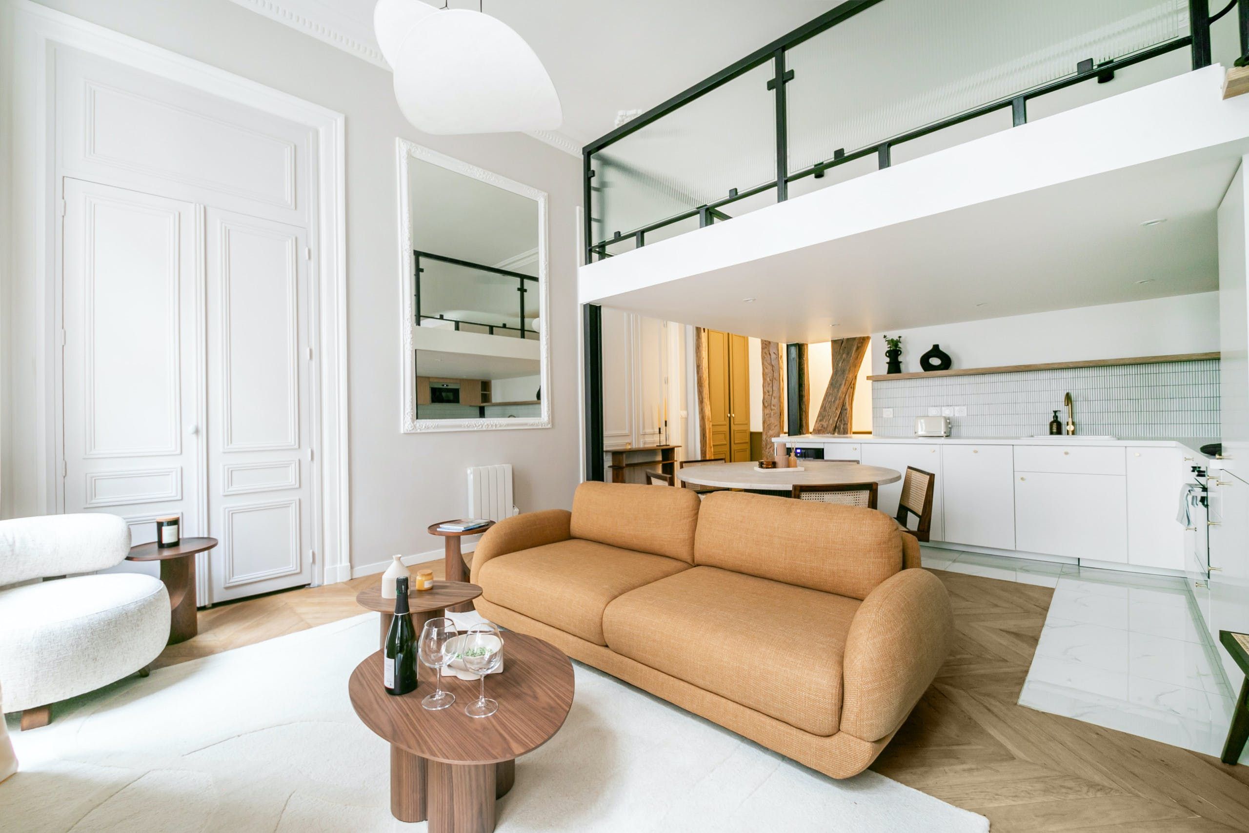 Modern design meets traditional French features in this apartment. We love the light-filled living area and pared-back interiors – you can tell it's been designed by an architect. The layout has a few quirky aspects, though – one of the beds is on the mezzanine above the living area, while the snug single room has low ceilings and is best for little ones. Location-wise, this is the heart of Paris. All the landmarks are within walking distance, including the Louvre and Opéra Garnier. Whether shopping, sightseeing, or sampling the local cuisine are on the agenda, there's no better spot to call home.