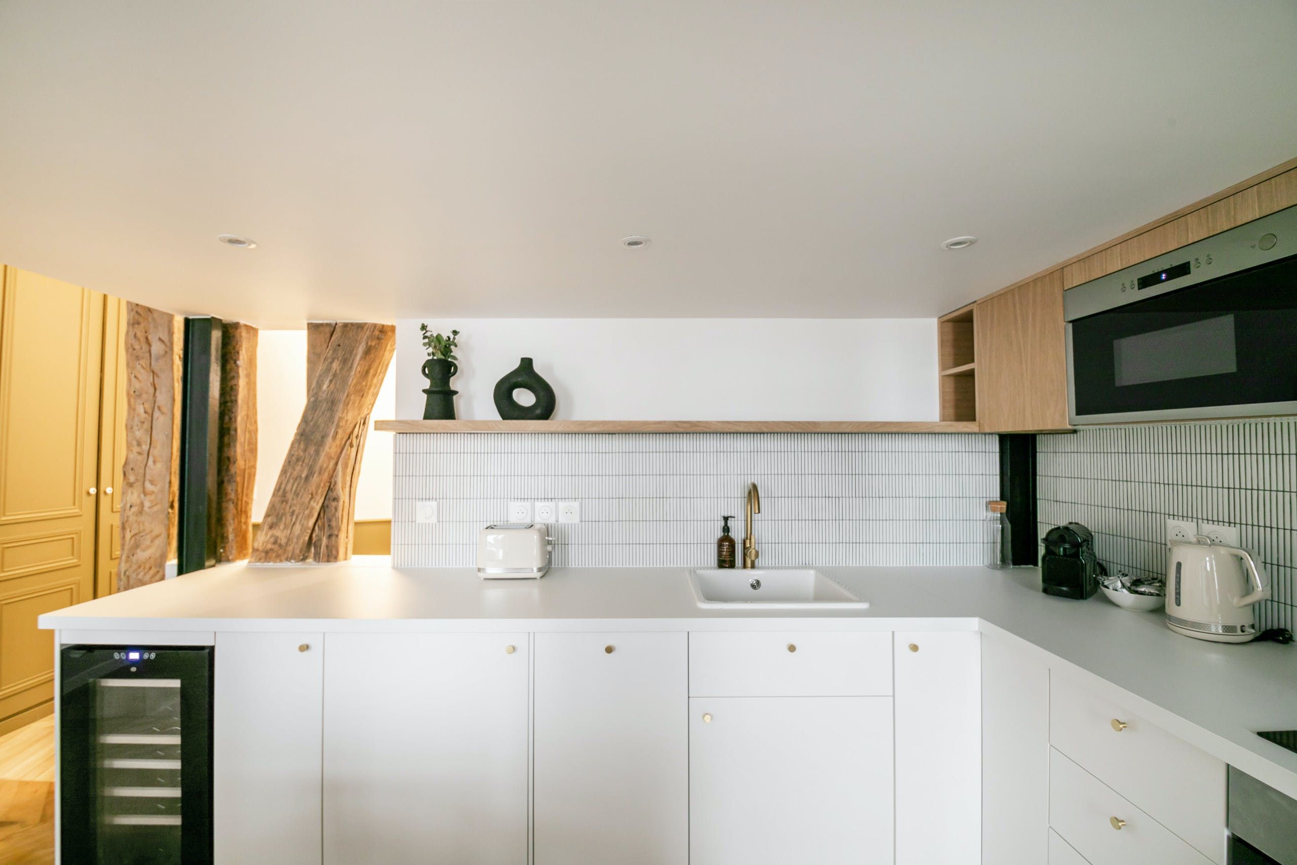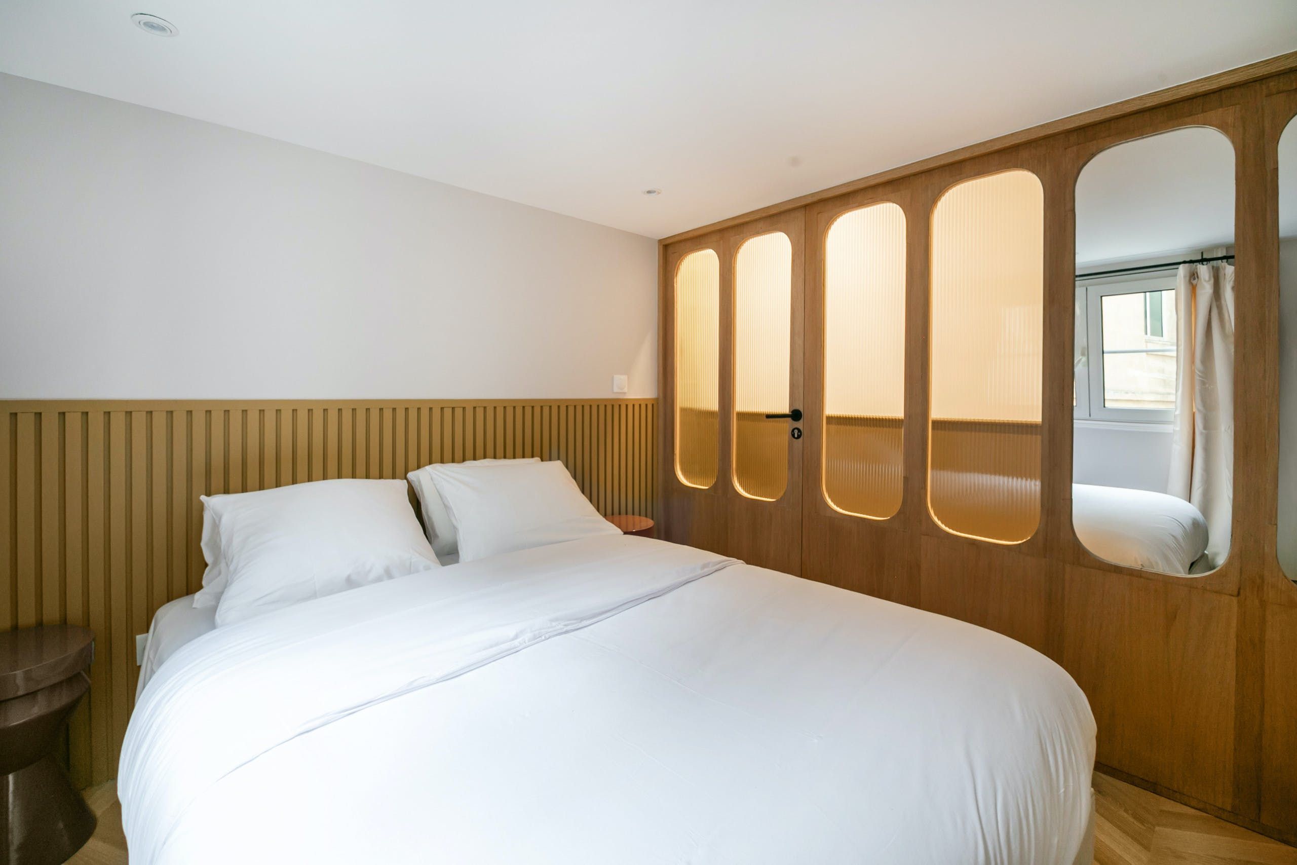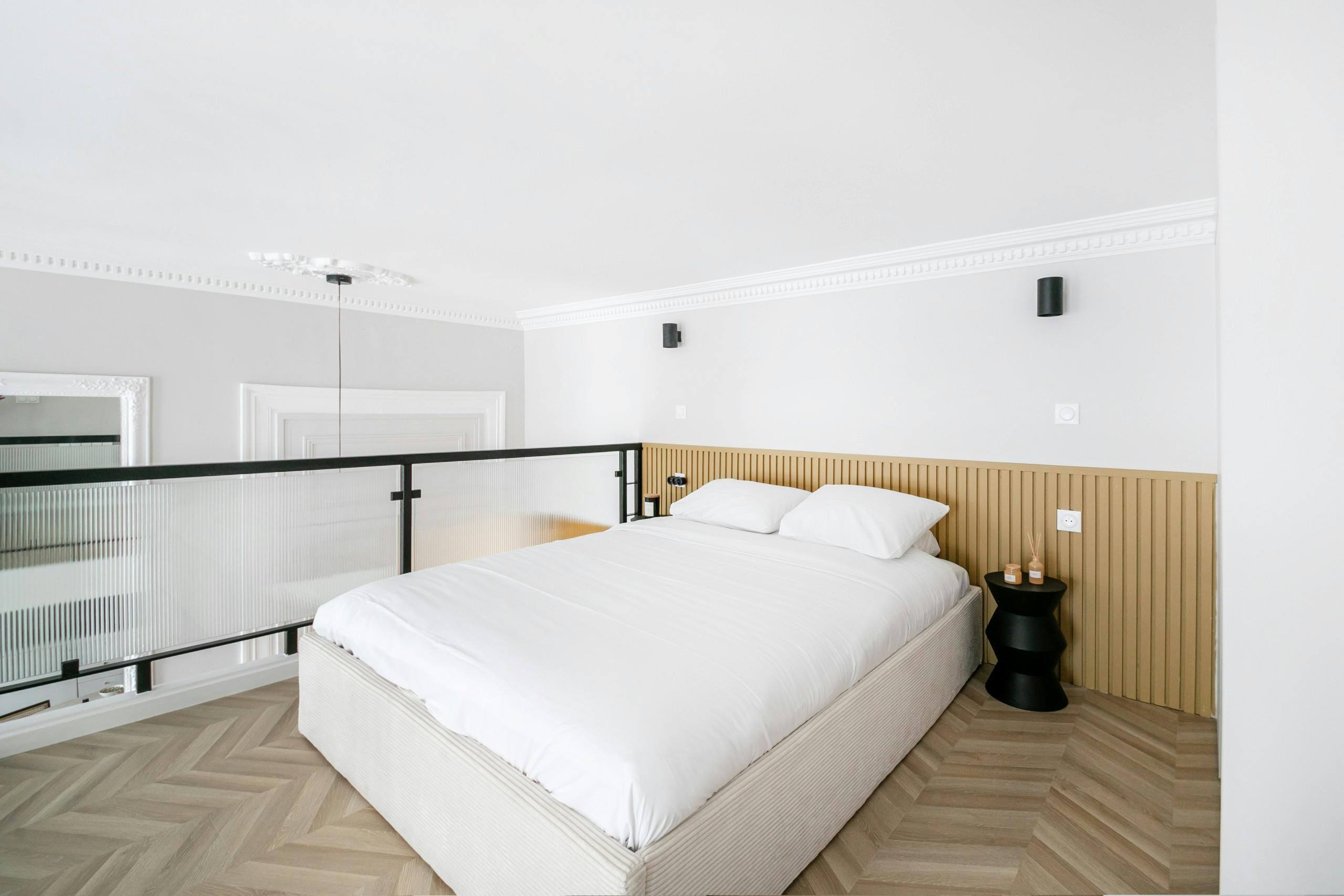 Modern design meets traditional French features in this apartment. We love the light-filled living area and pared-back interiors – you can tell it's been designed by an architect. The layout has a few quirky aspects, though – one of the beds is on the mezzanine above the living area, while the snug single room has low ceilings and is best for little ones. Location-wise, this is the heart of Paris. All the landmarks are within walking distance, including the Louvre and Opéra Garnier. Whether shopping, sightseeing, or sampling the local cuisine are on the agenda, there's no better spot to call home.