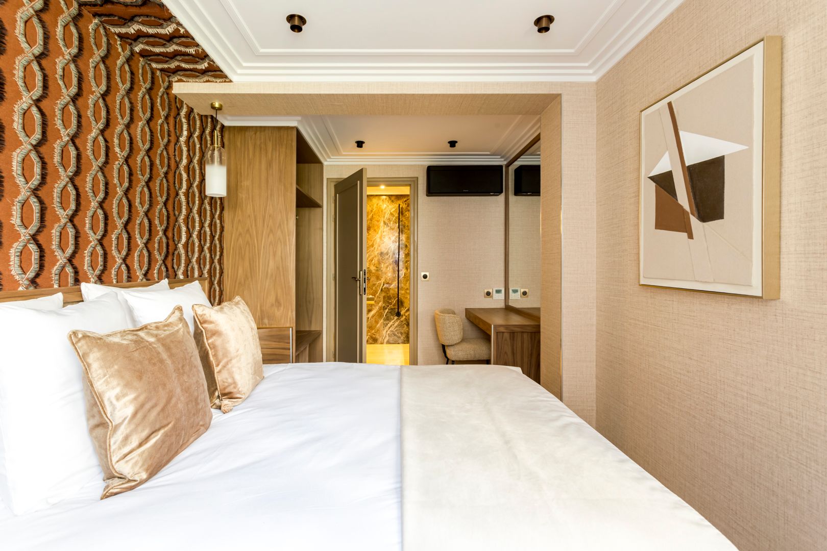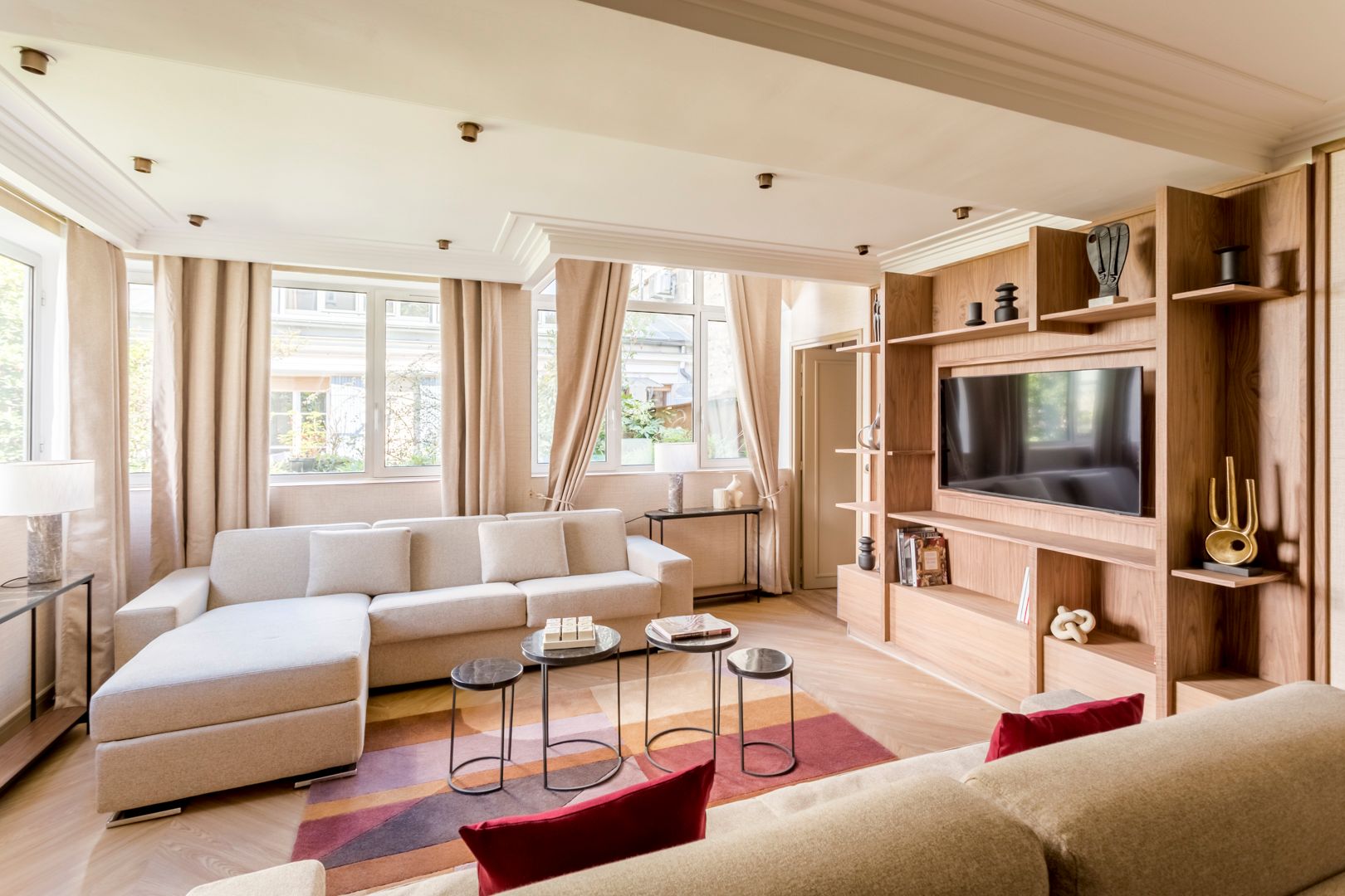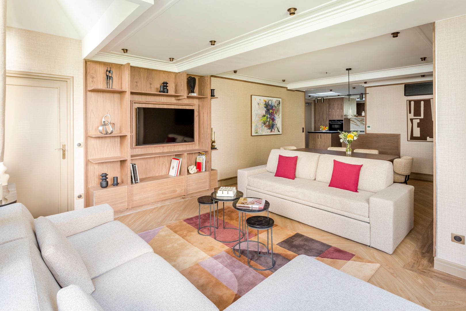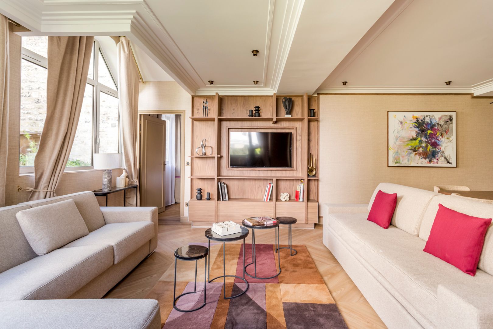 You'll find this apartment within easy walking distance of the Eiffel Tower and the Champ de Mars. There are also plenty of shops, cafes and restaurants in the locale. Back at this home, the living area, with its neutral tones, is a great place to relax after a busy day. This room also sleeps guests five and six on a sofa bed. The kitchen, with its skylight, is light and bright, but if you don’t want to cook, your host can arrange a private chef. We think this home is ideal for families or friends looking for a Parisian stay that combines comfort with a fantastic location.