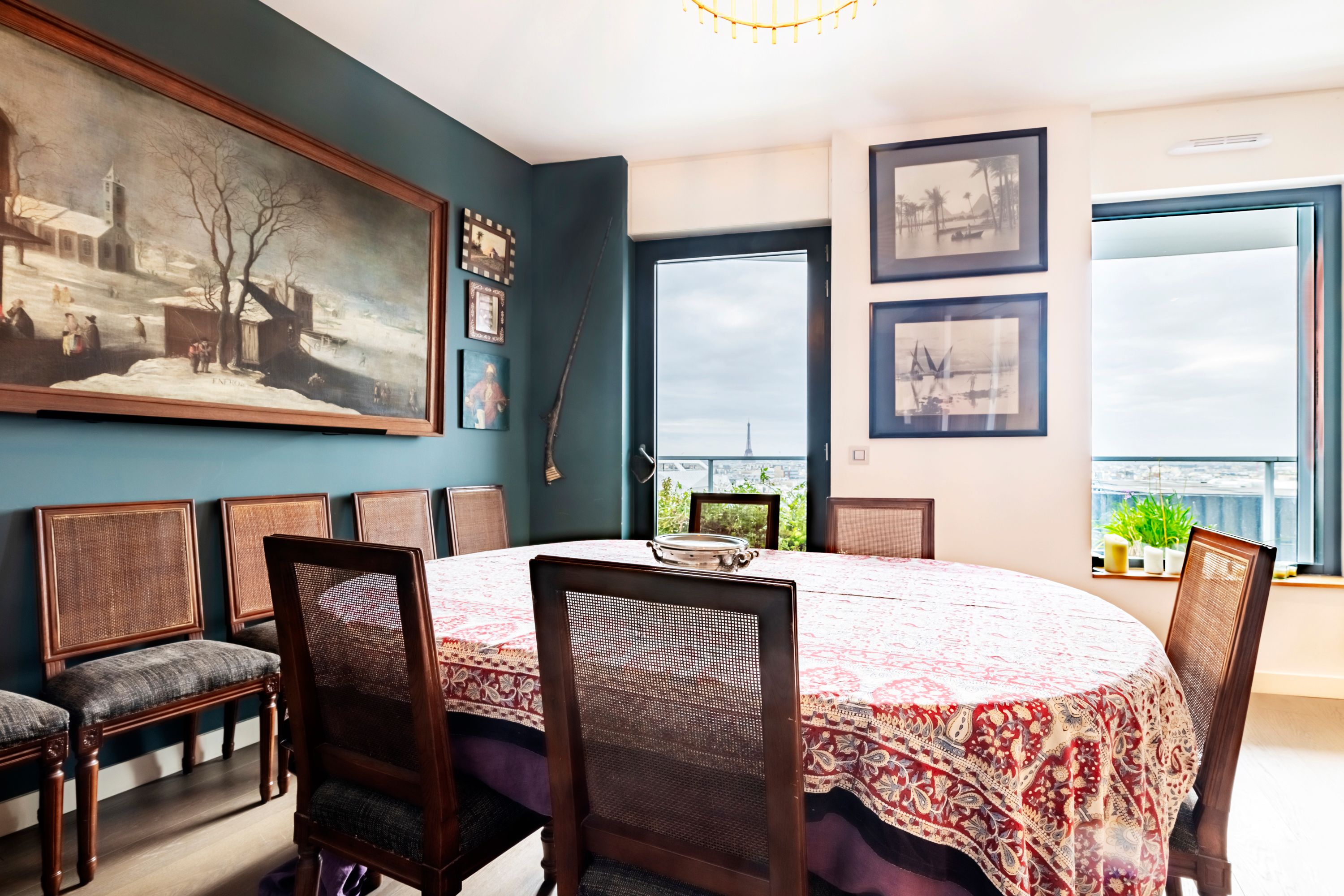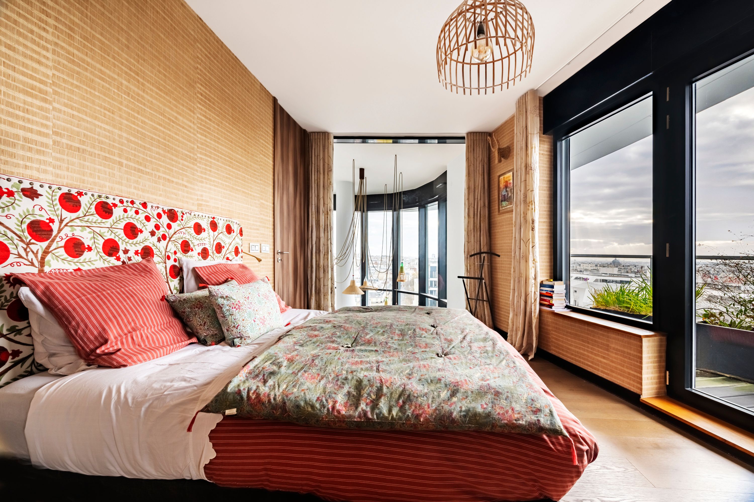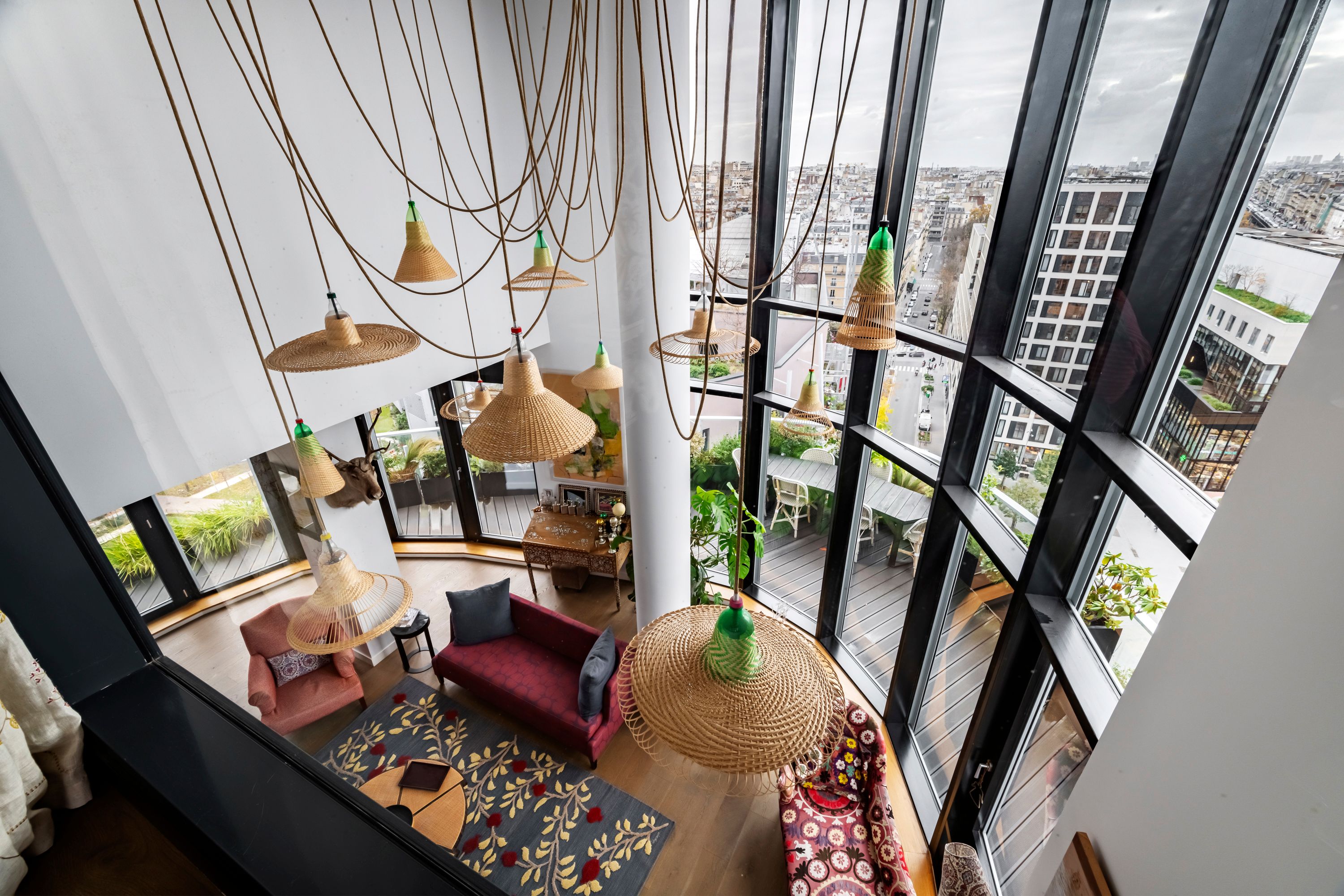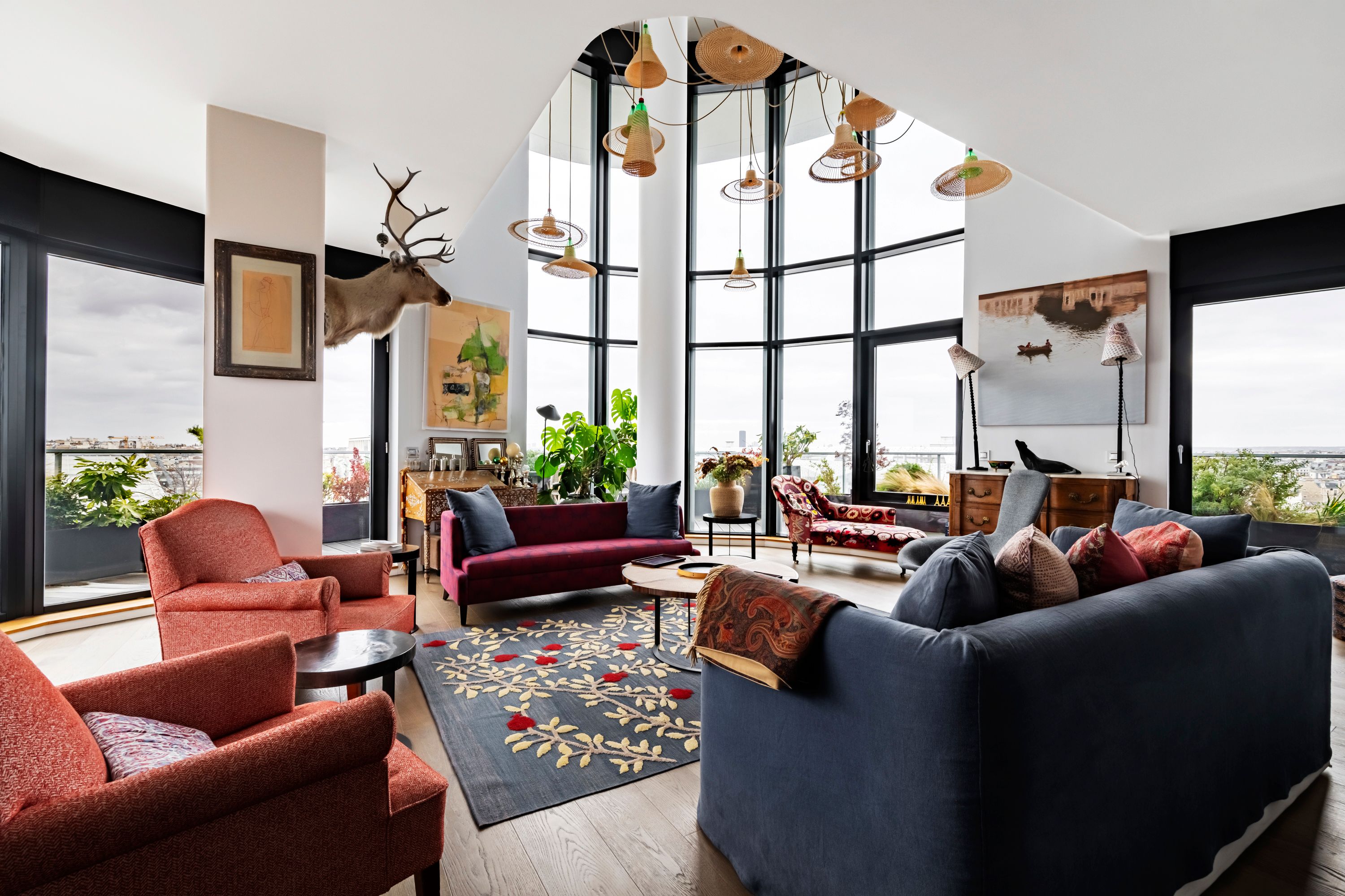 The views from this duplex home are simply stunning. It’s in the heart of Batignolles but offers vistas stretching to the Eiffel Tower and Montmartre – best of all, there’s a huge terrace to enjoy those views from. Inside, you’ll find walls of glass and impossibly high ceilings with quirky light fittings. There’s a remarkable amount of space for a Parisian home, so you’ll have no shortage of room to gather together after busy days spent sightseeing. Getting around Paris is easy, with Saint Lazare next door and Pont Cardinet metro station a short walk away.