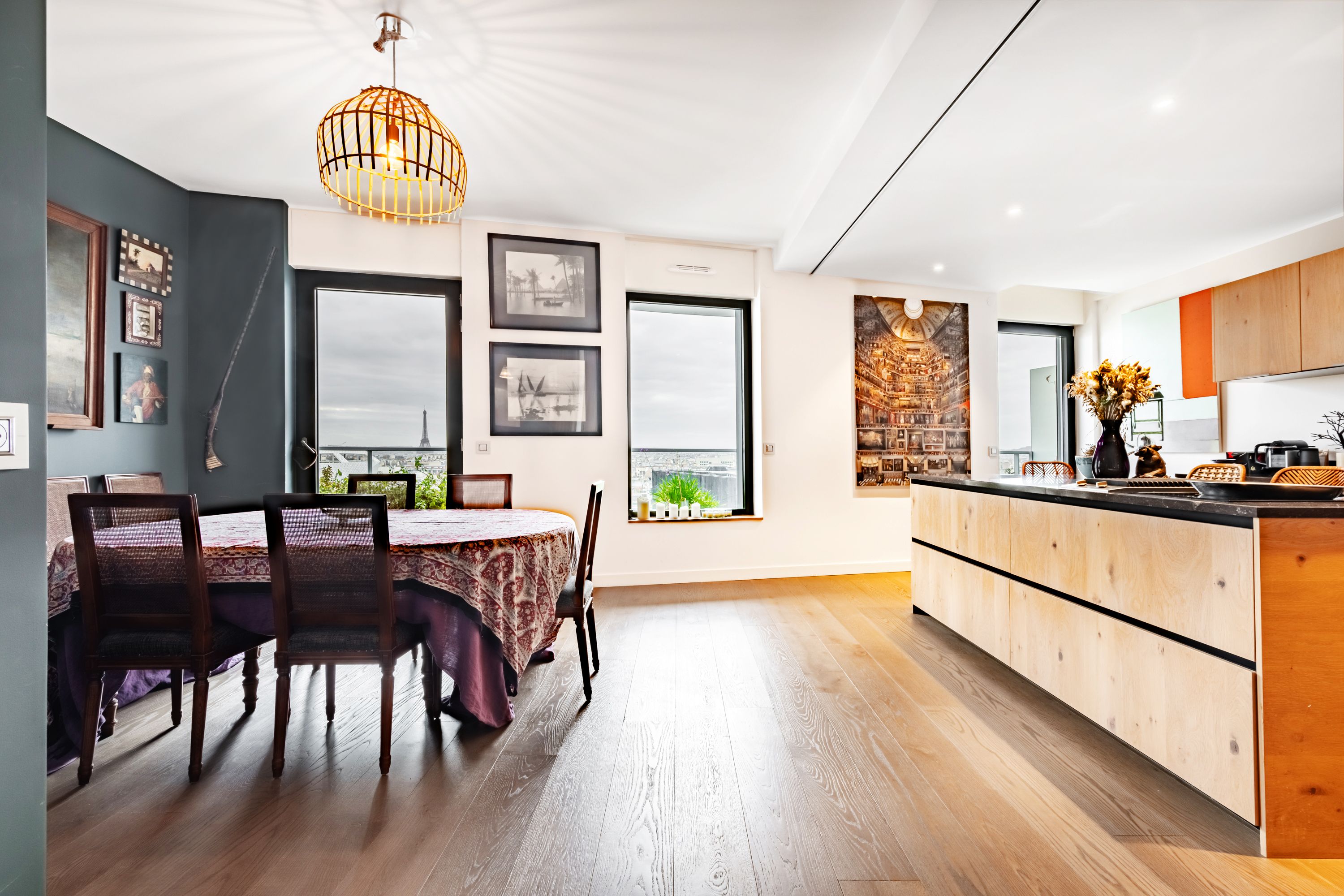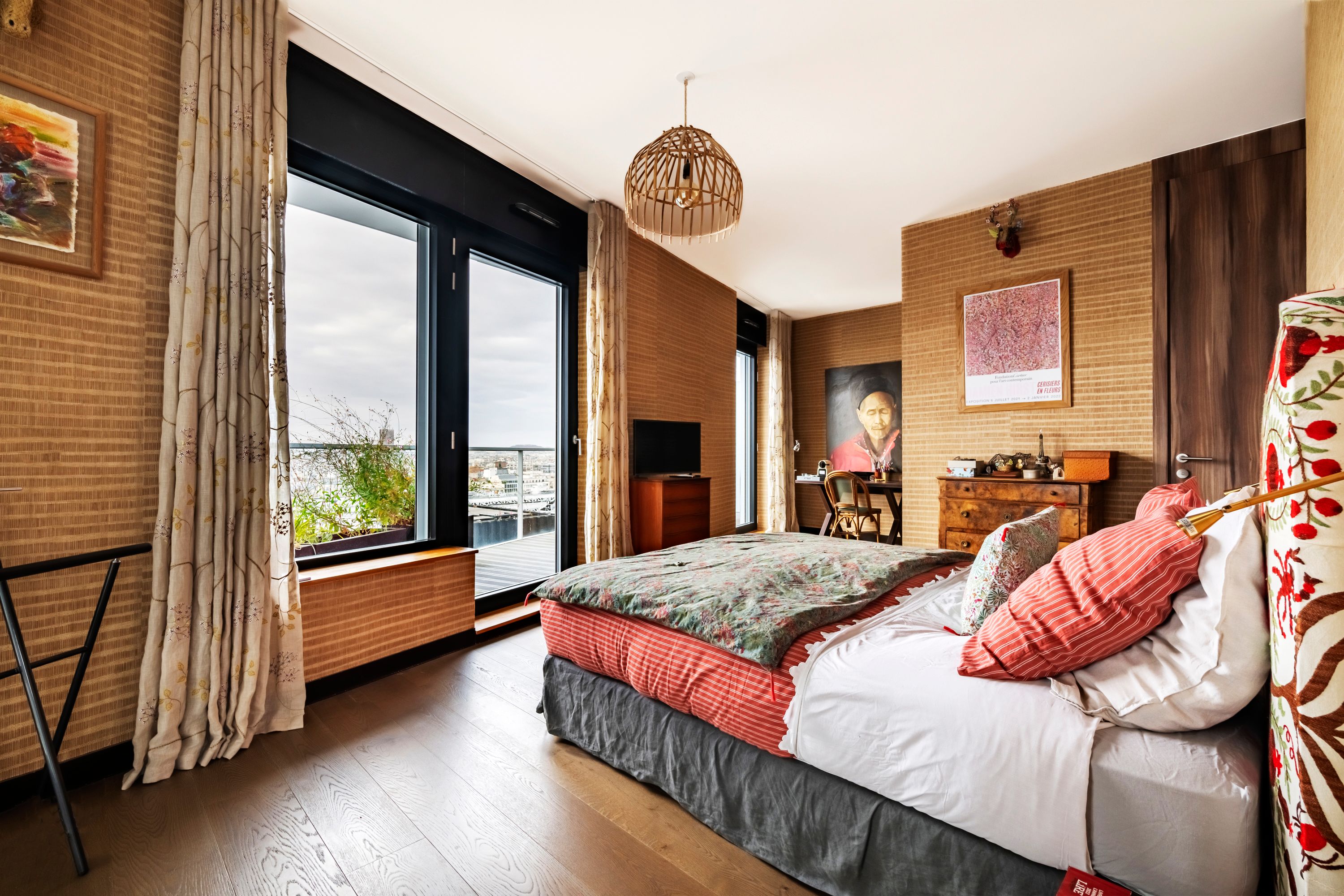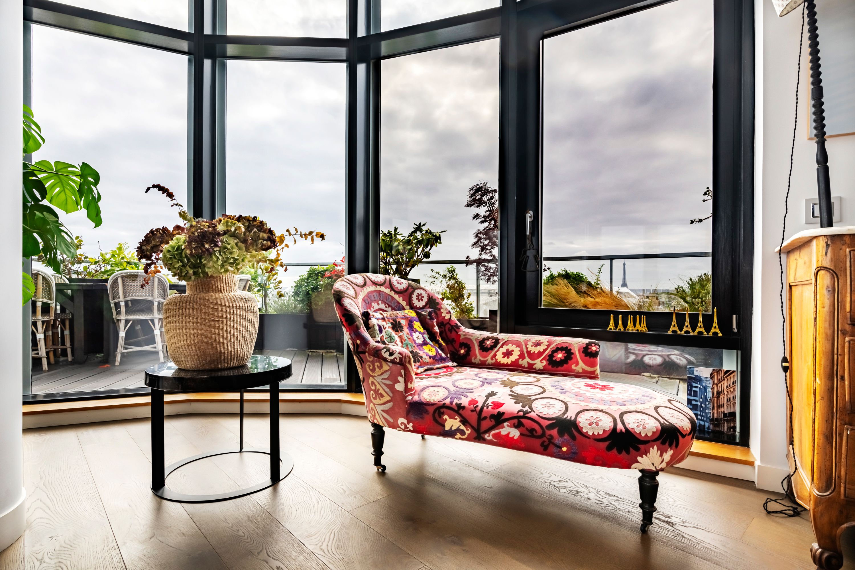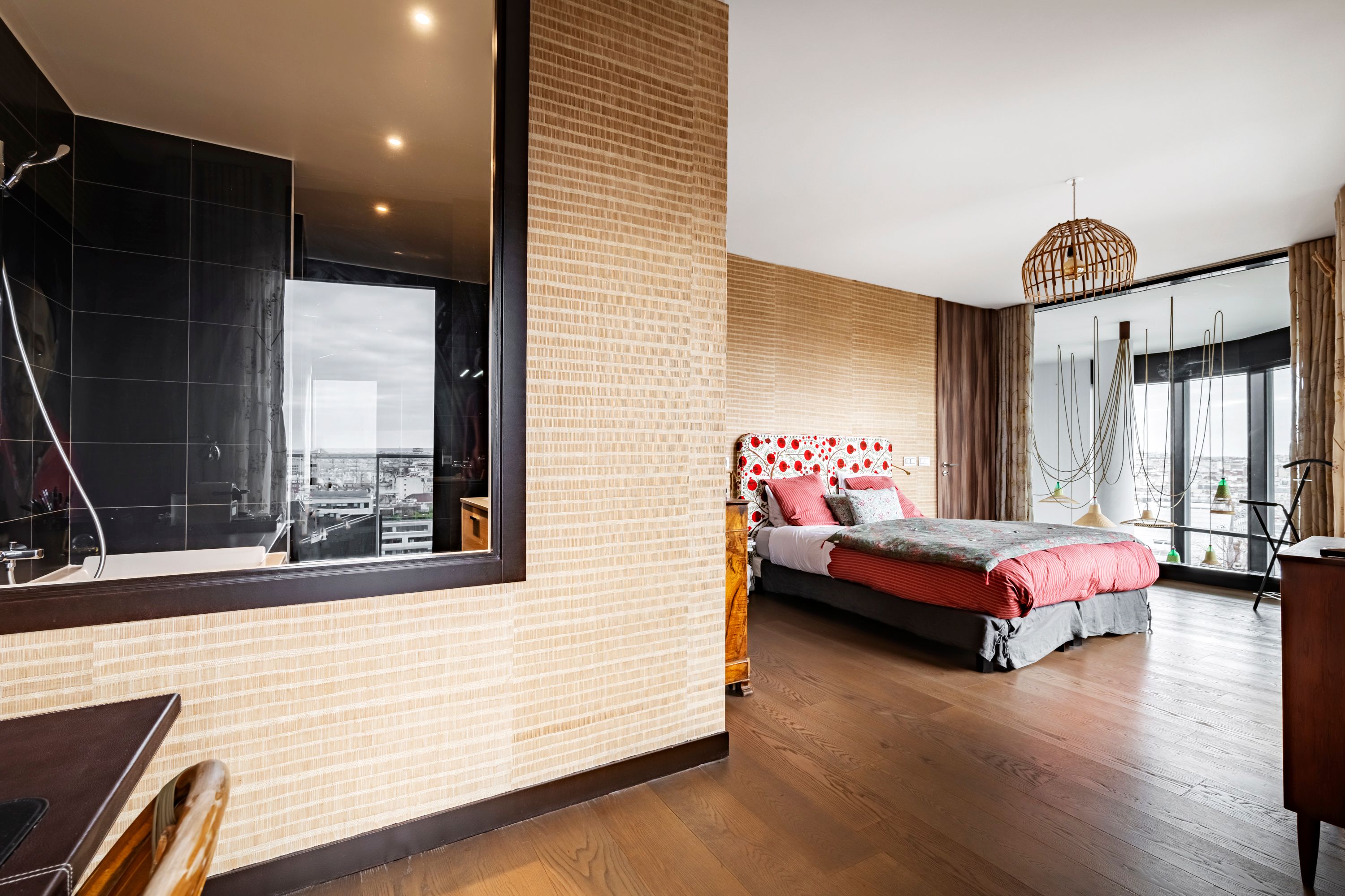 The views from this duplex home are simply stunning. It’s in the heart of Batignolles but offers vistas stretching to the Eiffel Tower and Montmartre – best of all, there’s a huge terrace to enjoy those views from. Inside, you’ll find walls of glass and impossibly high ceilings with quirky light fittings. There’s a remarkable amount of space for a Parisian home, so you’ll have no shortage of room to gather together after busy days spent sightseeing. Getting around Paris is easy, with Saint Lazare next door and Pont Cardinet metro station a short walk away.