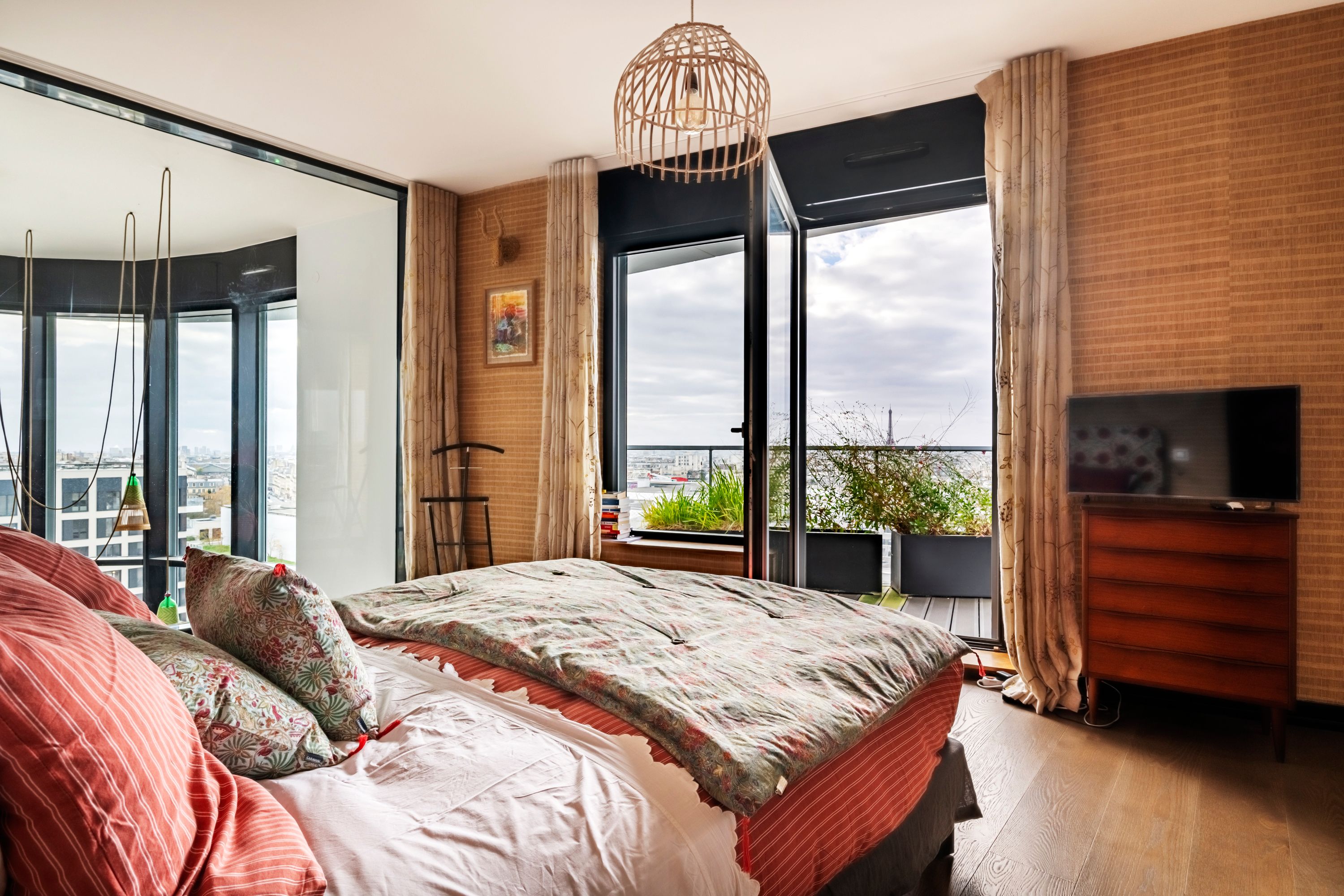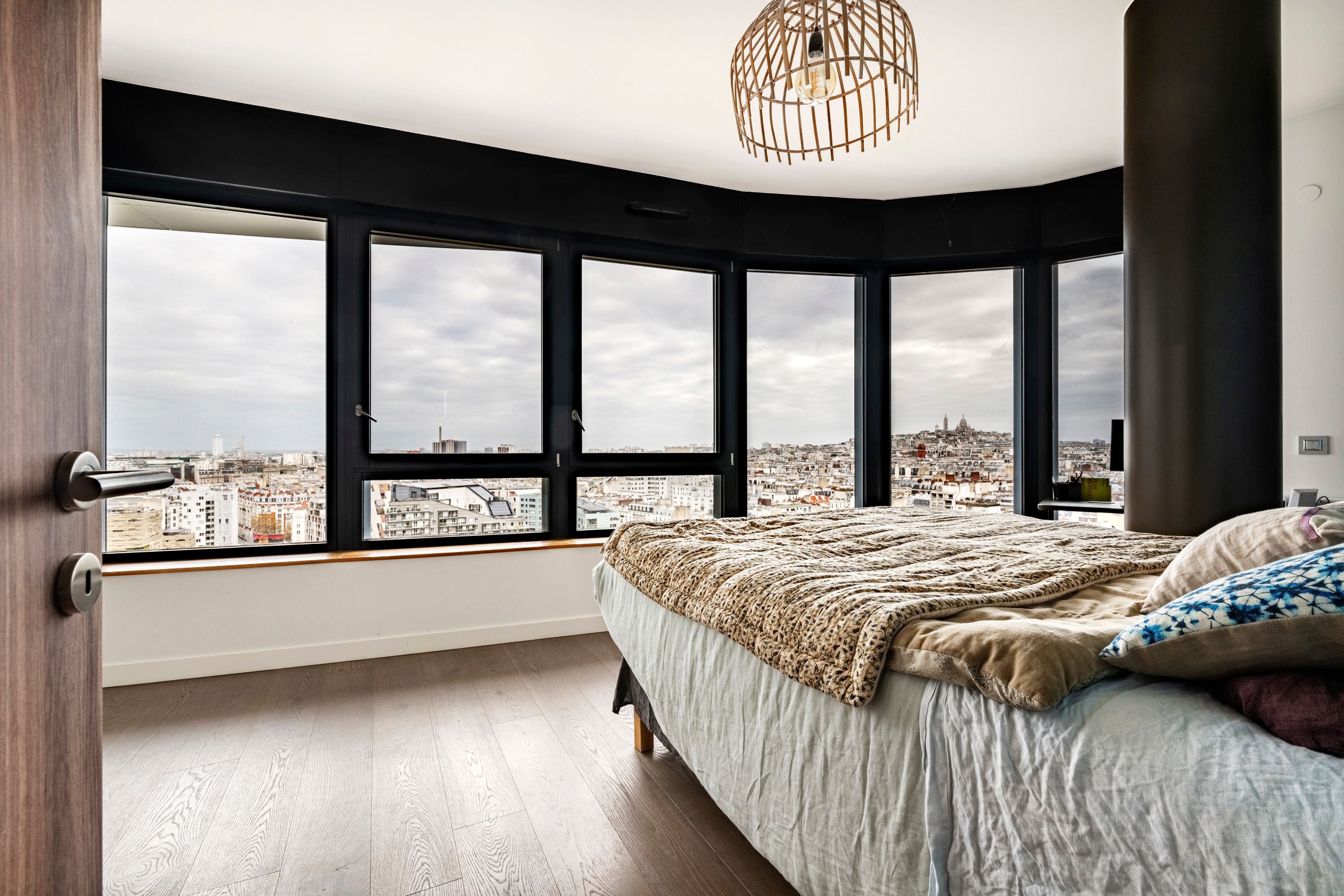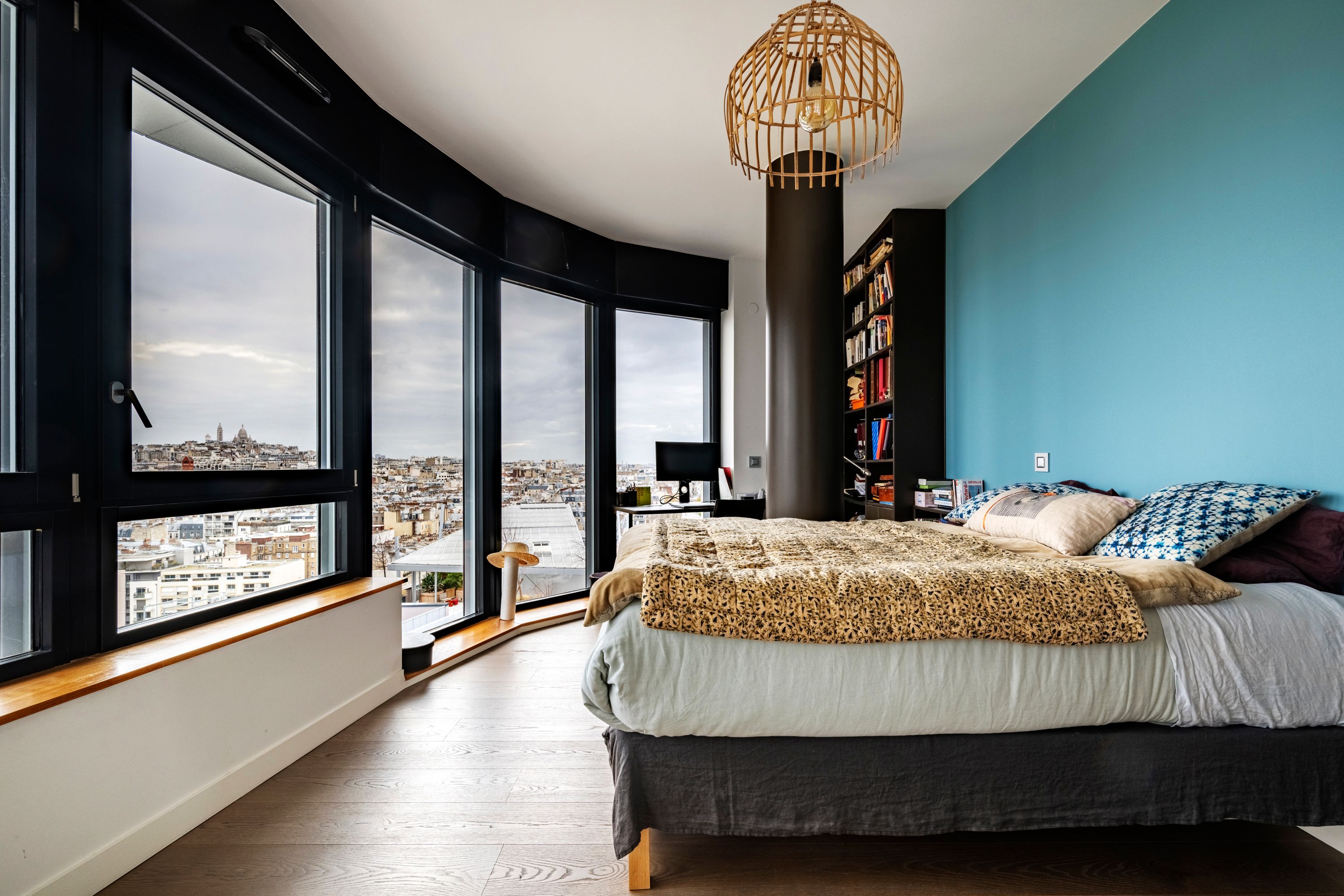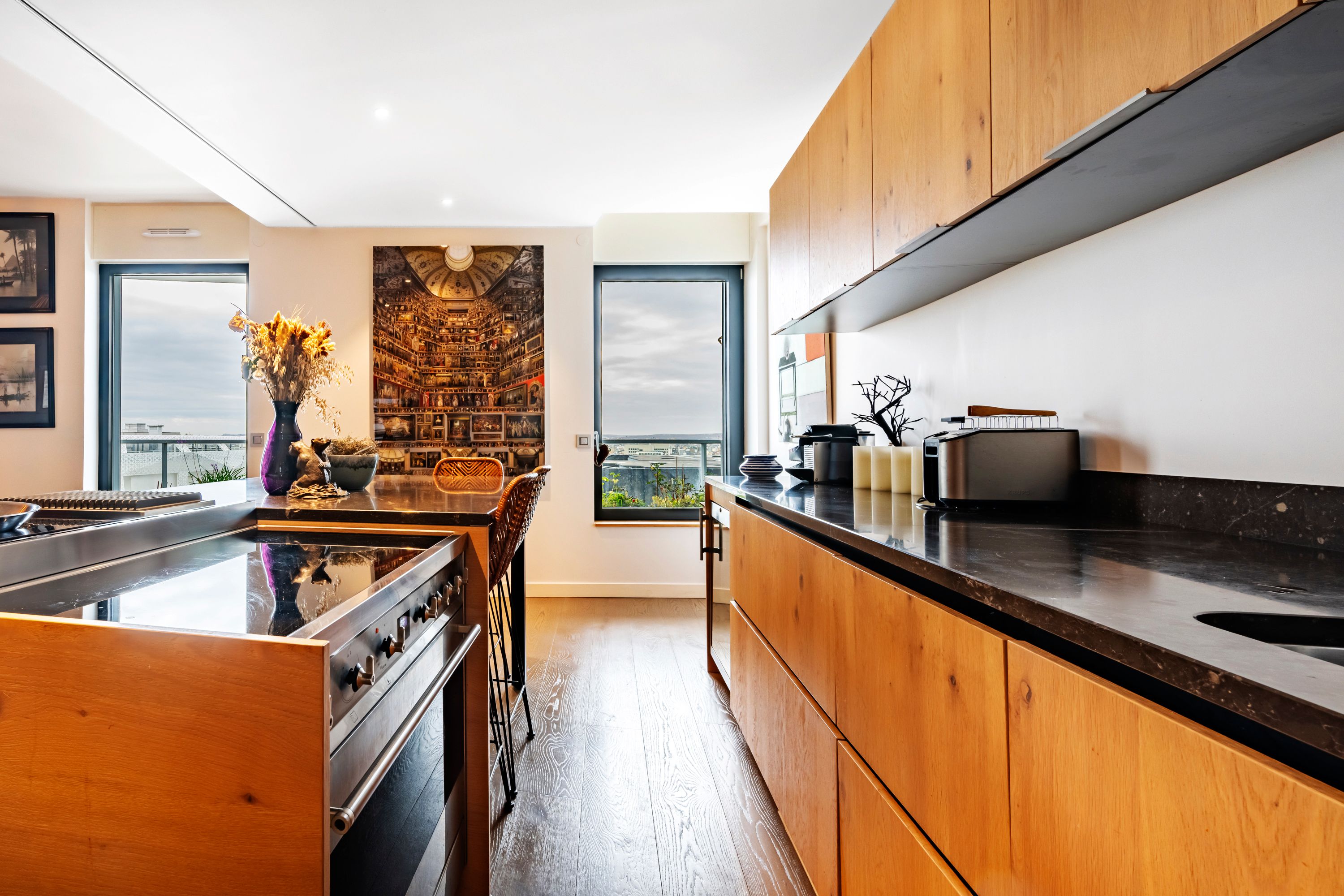 The views from this duplex home are simply stunning. It’s in the heart of Batignolles but offers vistas stretching to the Eiffel Tower and Montmartre – best of all, there’s a huge terrace to enjoy those views from. Inside, you’ll find walls of glass and impossibly high ceilings with quirky light fittings. There’s a remarkable amount of space for a Parisian home, so you’ll have no shortage of room to gather together after busy days spent sightseeing. Getting around Paris is easy, with Saint Lazare next door and Pont Cardinet metro station a short walk away.