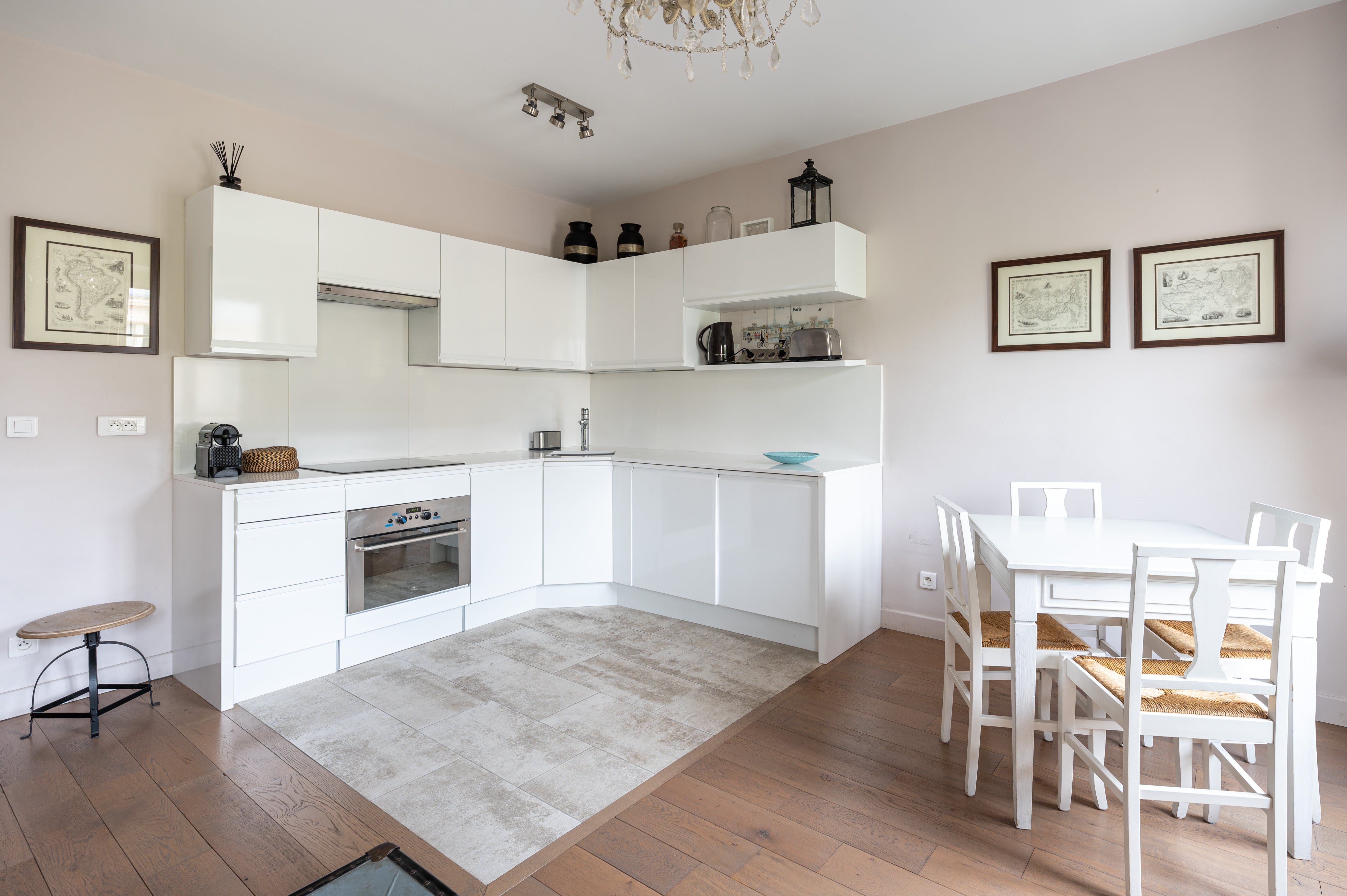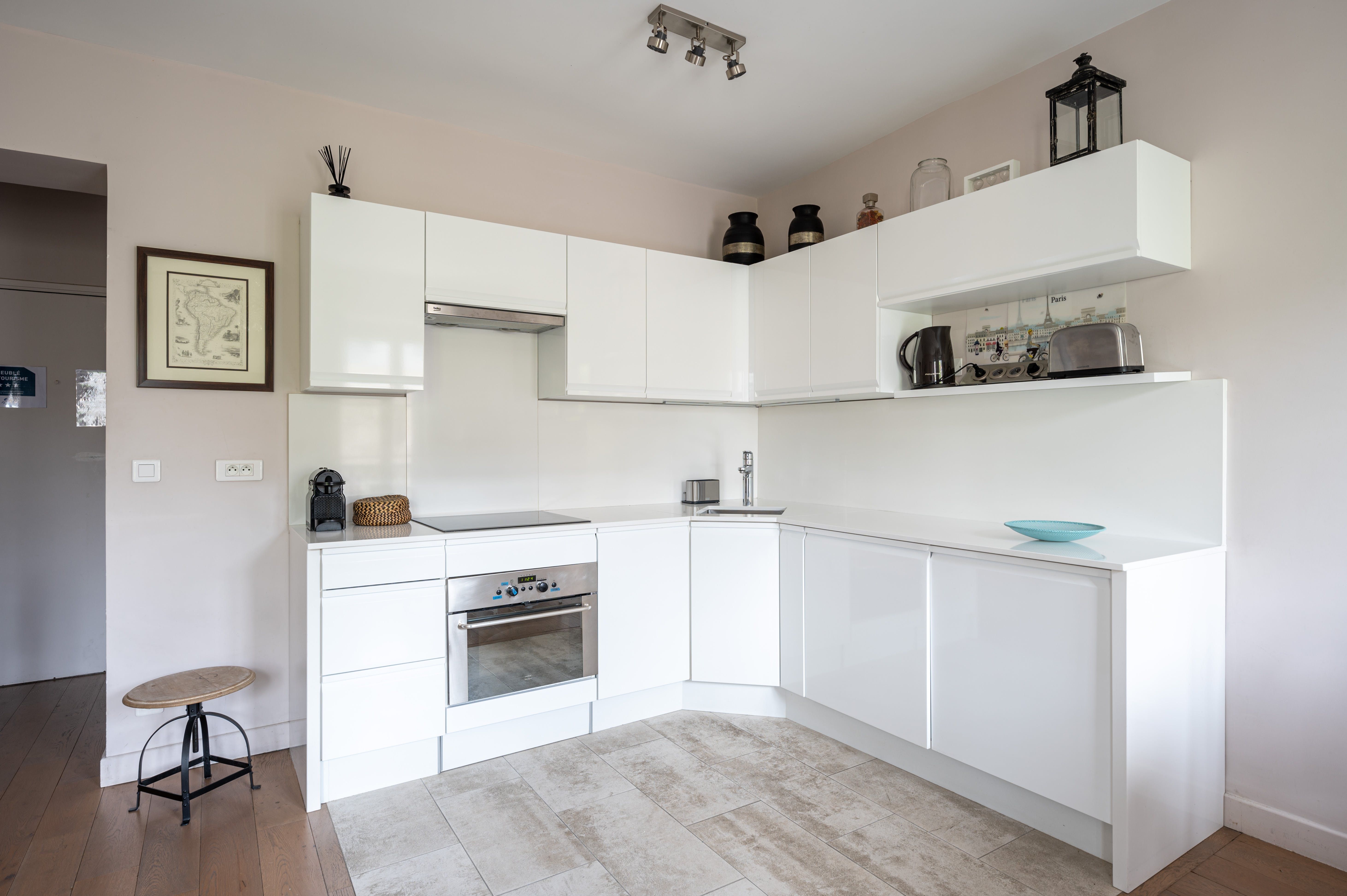 What better way to base yourself in Paris’ artsiest neighbourhood than with a stay in an apartment as stylish as this? Think sparkling chandeliers and sunlight through silken curtains. Hardwood floors, a traveller’s chest coffee table and big French windows add a touch of 19th-century class too. A desk is set up in the corner of the living room, should you need to work remotely and the modern, white kitchen has more than enough to heat up a croissant in the morning.