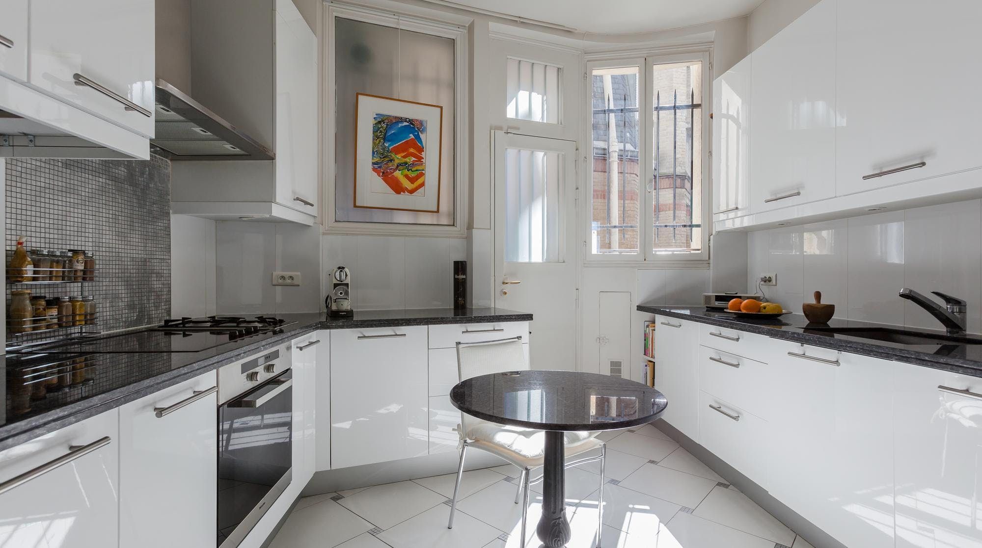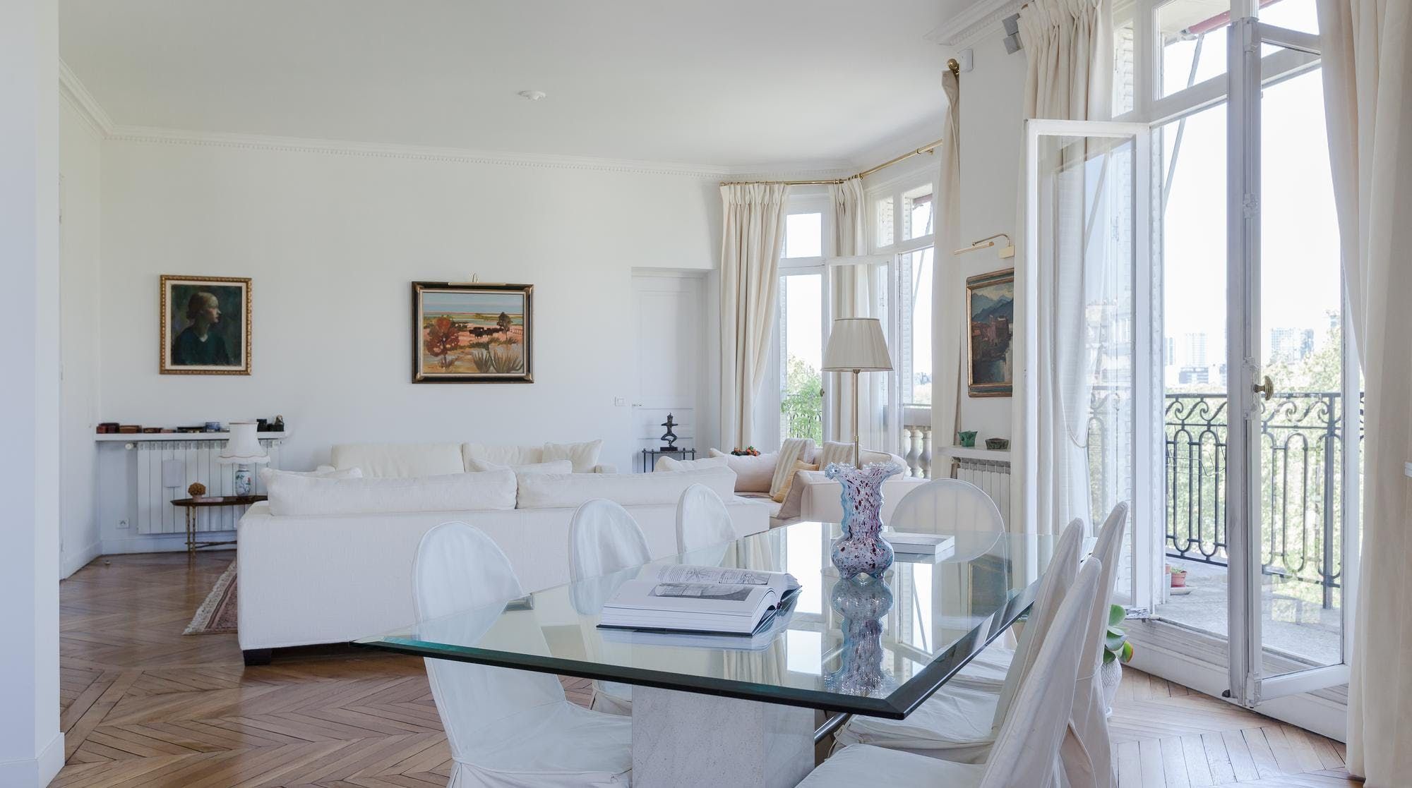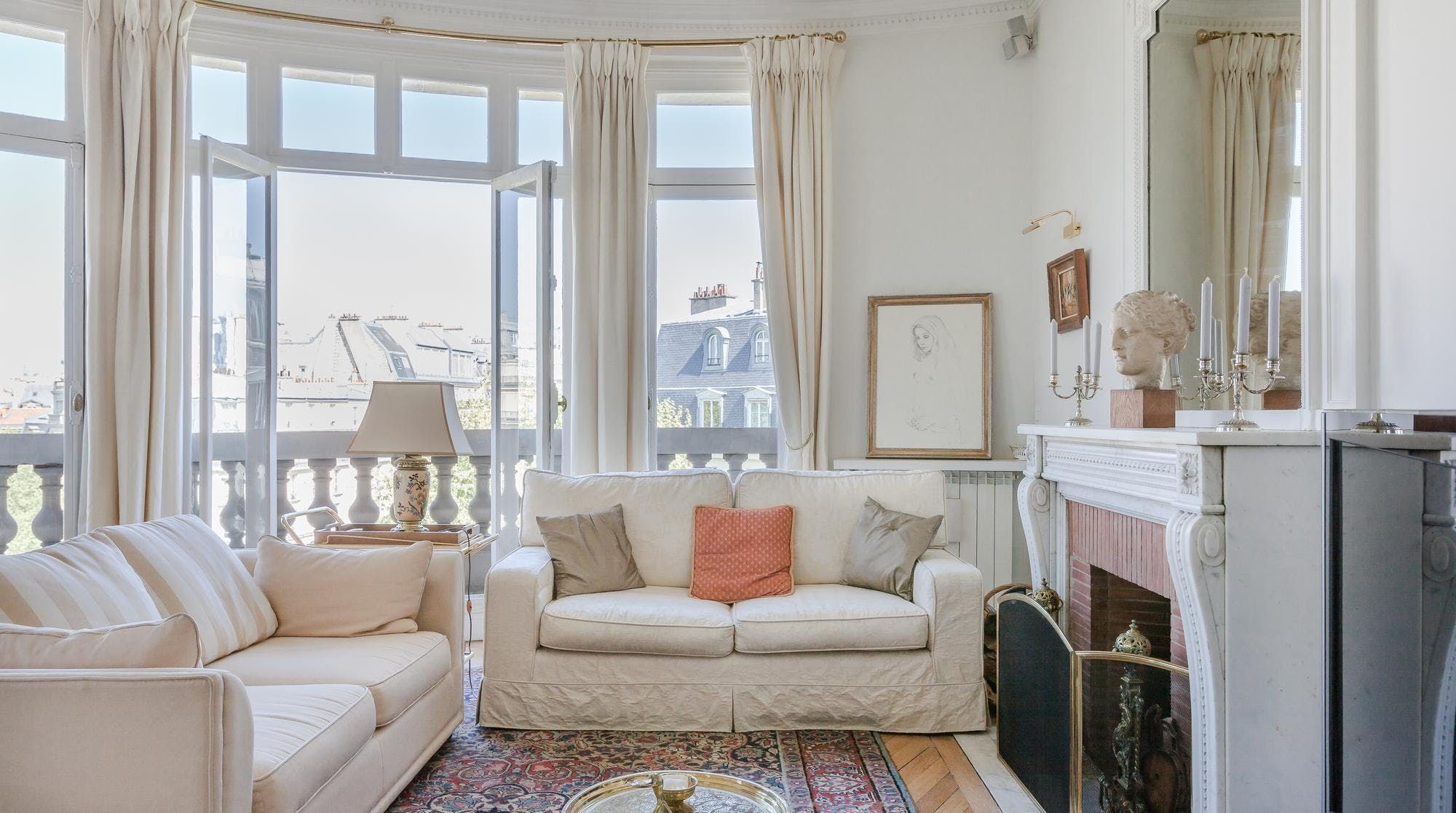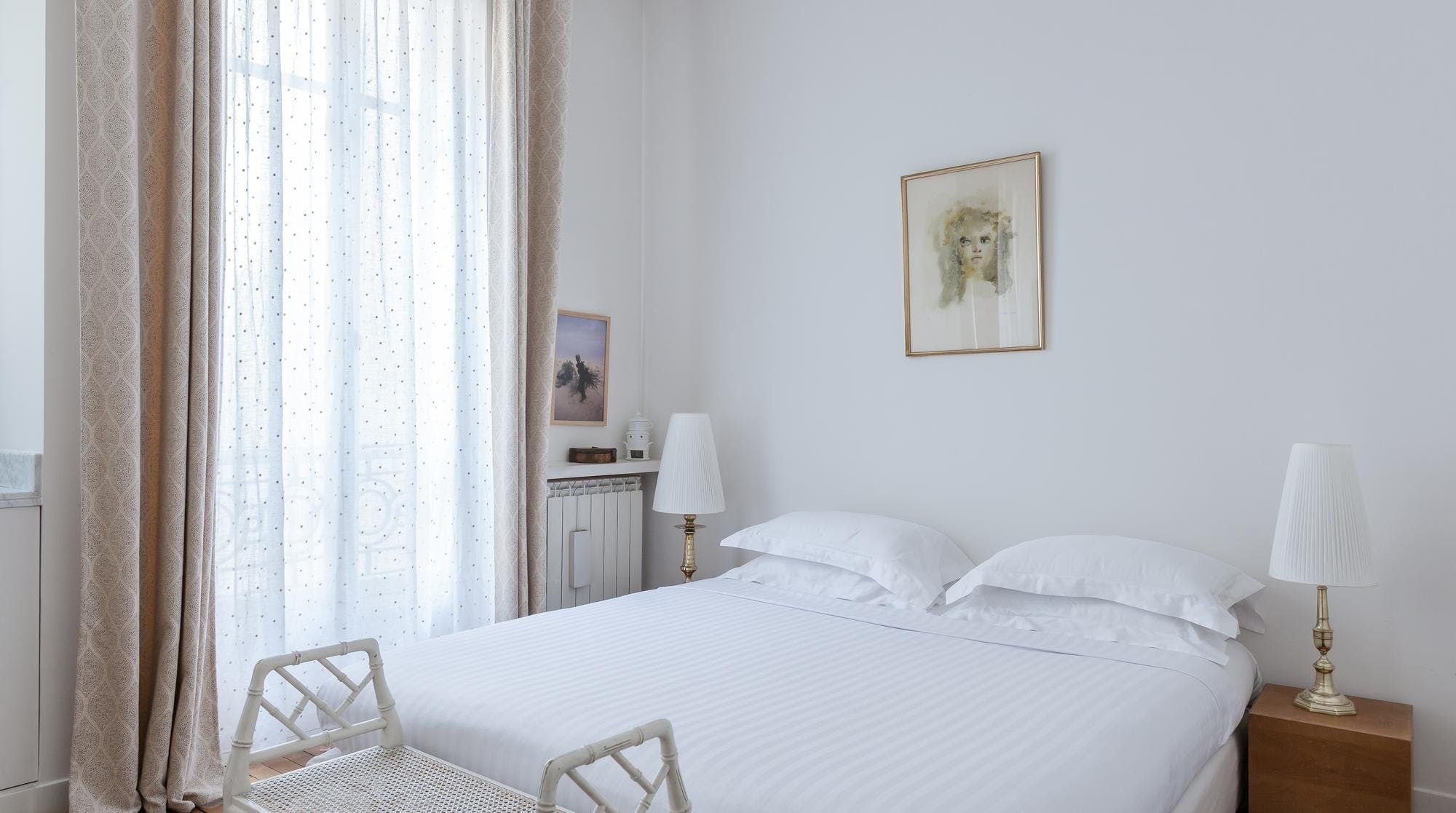 This elegant two-bedroom apartment on the edge of the Champs de Mars gardens boasts some of the most spectacular views of the Eiffel Tower from almost every room. The light flooding in through the large bay windows in the sitting room also make this space perfect for a late afternoon apéritif. In short, it's the ideal home for a group of friends or two couples looking for a quintessential Parisian apartment with romantic charm.
