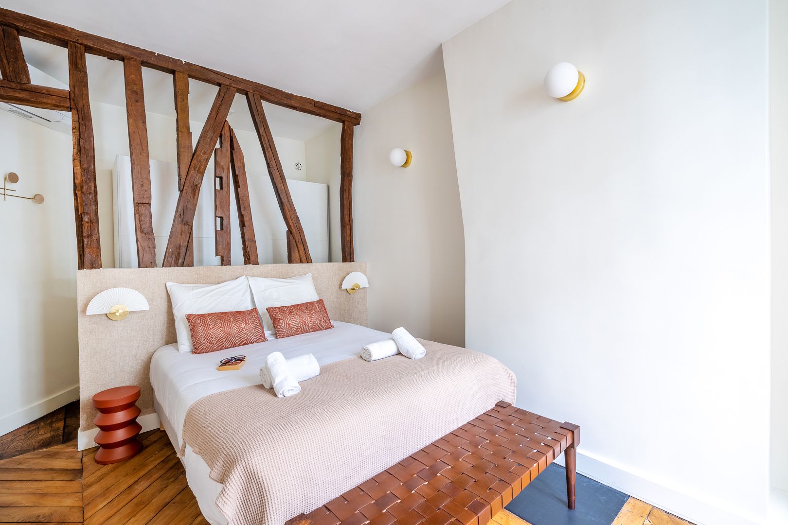 Tucked away on a side street bordering the grand Avenue des Champs-Élysées, this home is in the heart of Paris' luxury shopping neighbourhood. The French doors facing the street let in plenty of light, and the pastel hues throughout the apartment create a cosy atmosphere. The kitchen might not be massive, but there are enough facilities for making quick breakfasts or lunches (and that all-important coffee in the morning). And while there may not be loads of space for your Dior and Louis Vuitton purchases in the bedrooms, they're certainly not cramped. Regardless, the location is unbeatable – just a short walk to the Arc de Triomphe and close to the metro.