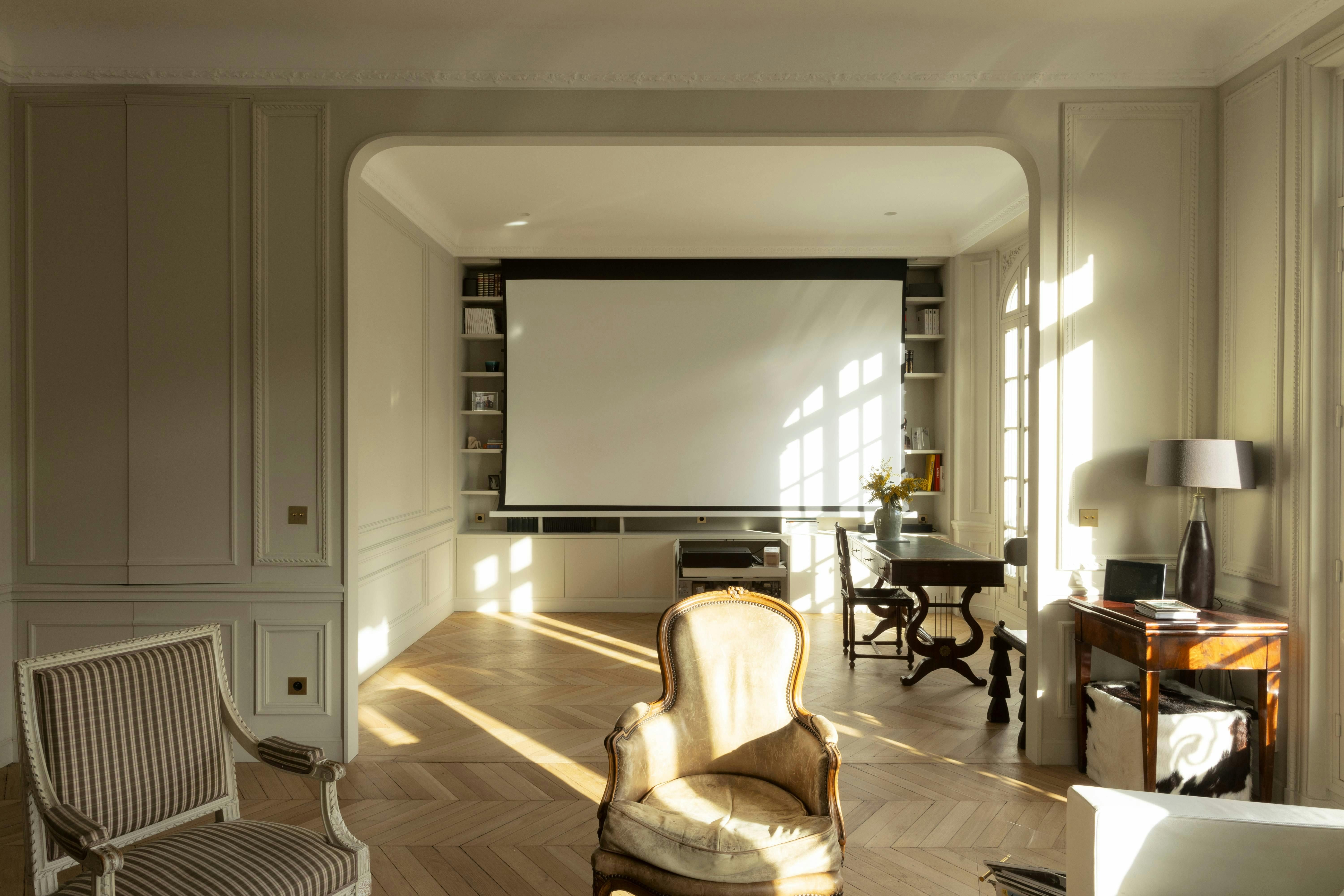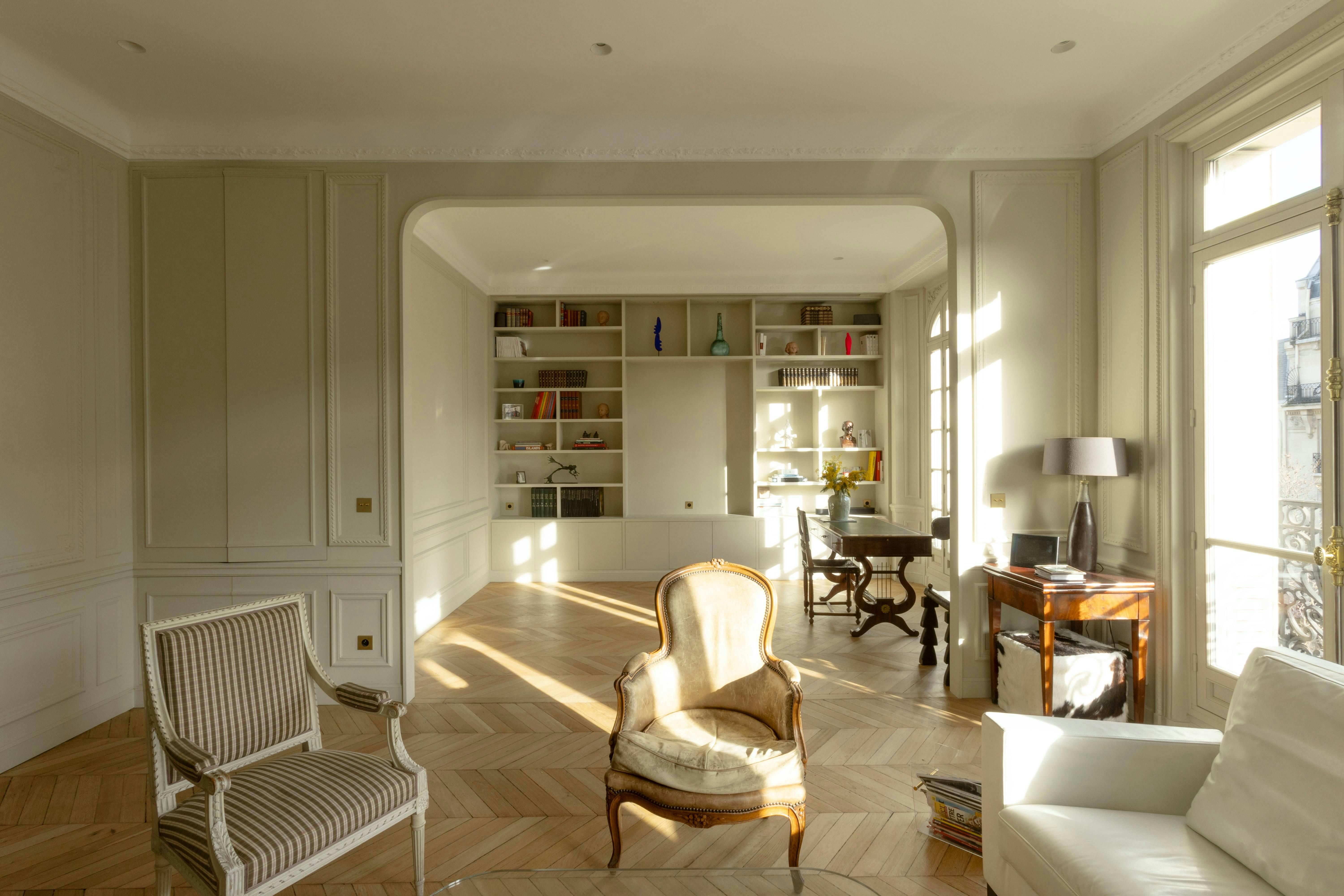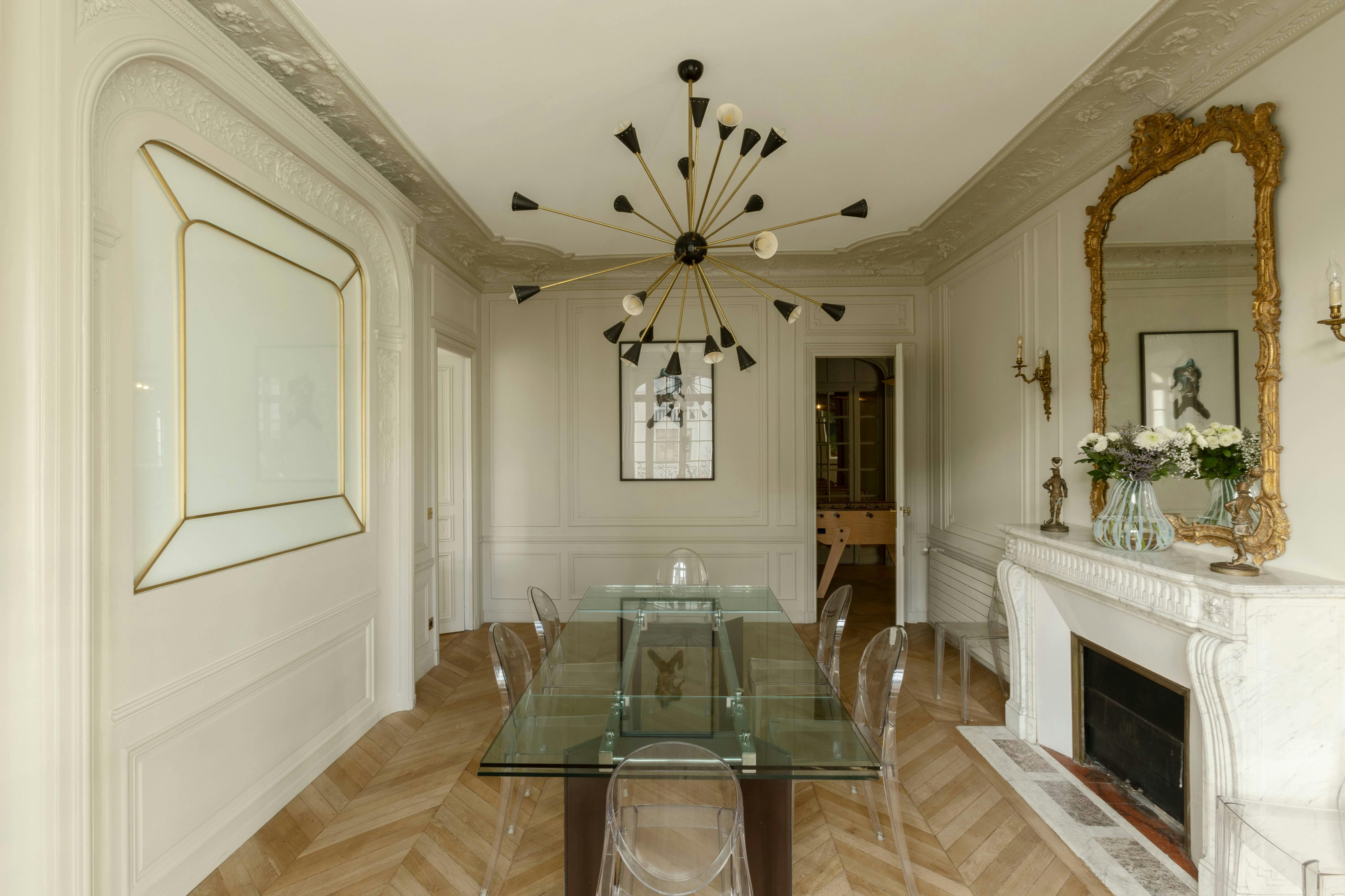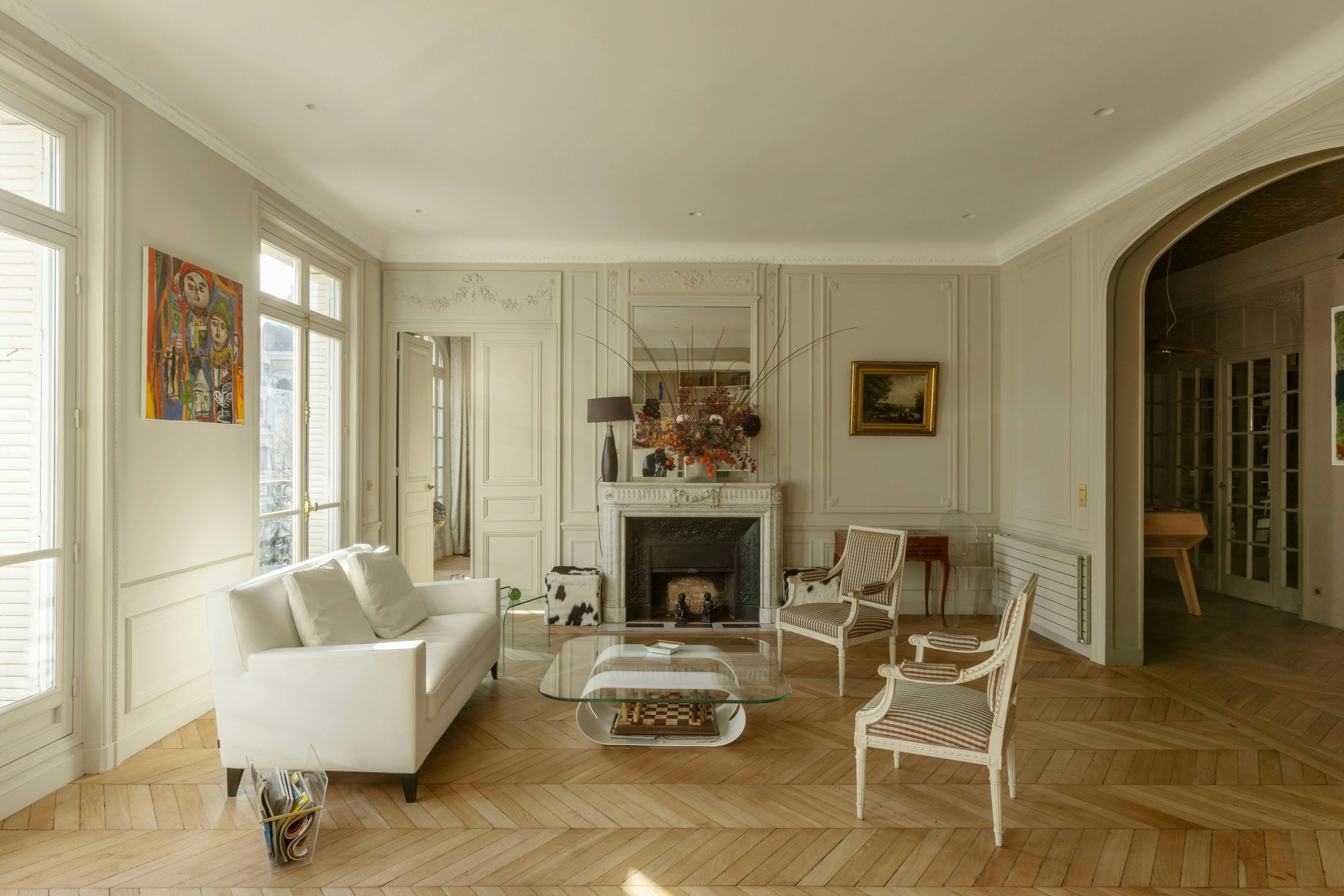 Food and culture lovers will find perfect contentment in the location of this home. From this central spot, it’s just a short stroll to the famous open-air market of Rue Poncelet, while iconic sights like the Arc de Triomphe and the Champs-Élysées are also within easy walking distance. There is no private parking available here, but you will find great public transport links and a range of extra services available – including chauffeurs and grocery deliveries. Inside, the rooms are classic, elegant and family-friendly. The study also transforms into a theatre room – perfect for cosy movie nights.