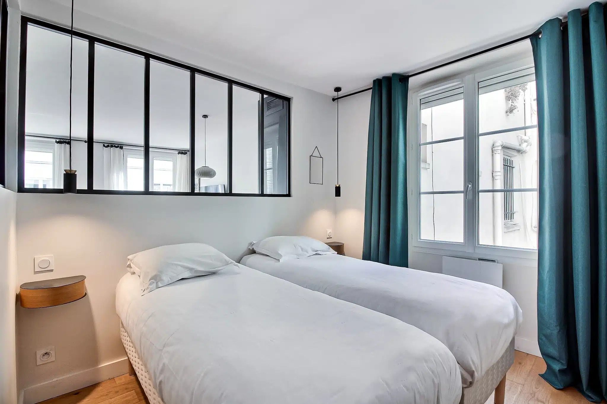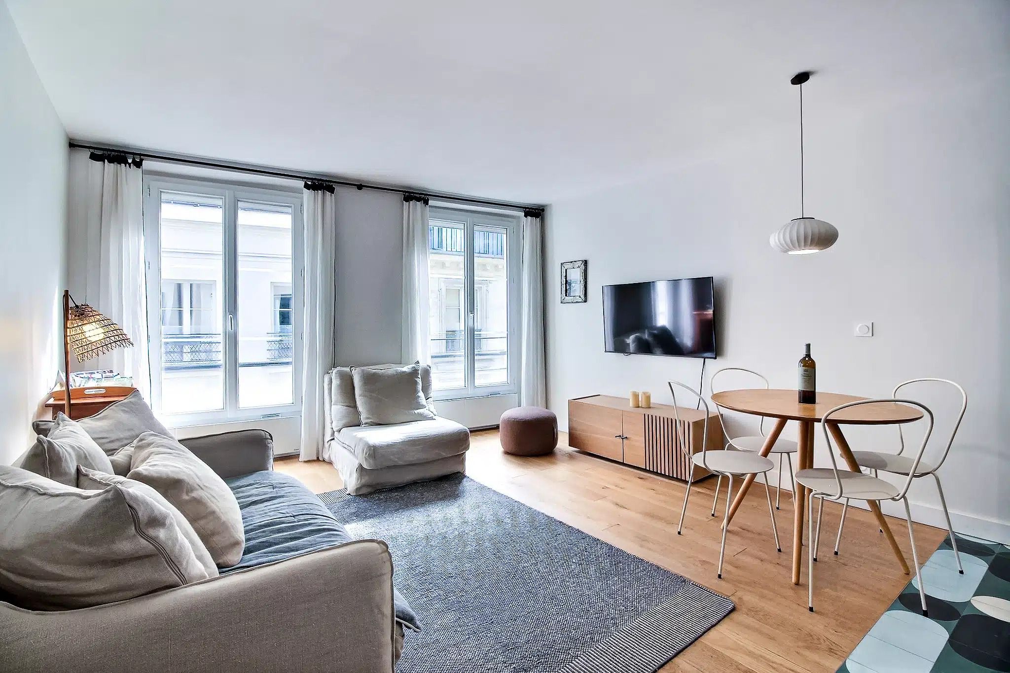 Right in the middle of Paris’s Montorgueil district, this apartment places you amid cobbled streets, lively cafés, and some of the city’s best food shops and boutiques. Step out to browse markets, sip cocktails on Rue Saint-Sauveur, or wander down boho side streets filled with independent stores. Inside, this home feels modern and calm, with two quiet bedrooms tucked at the back and a bright living space overlooking the pedestrian street below. With its comfortable furnishings and stylish fixtures, it’s an ideal spot to experience all the City of Lights has to offer.