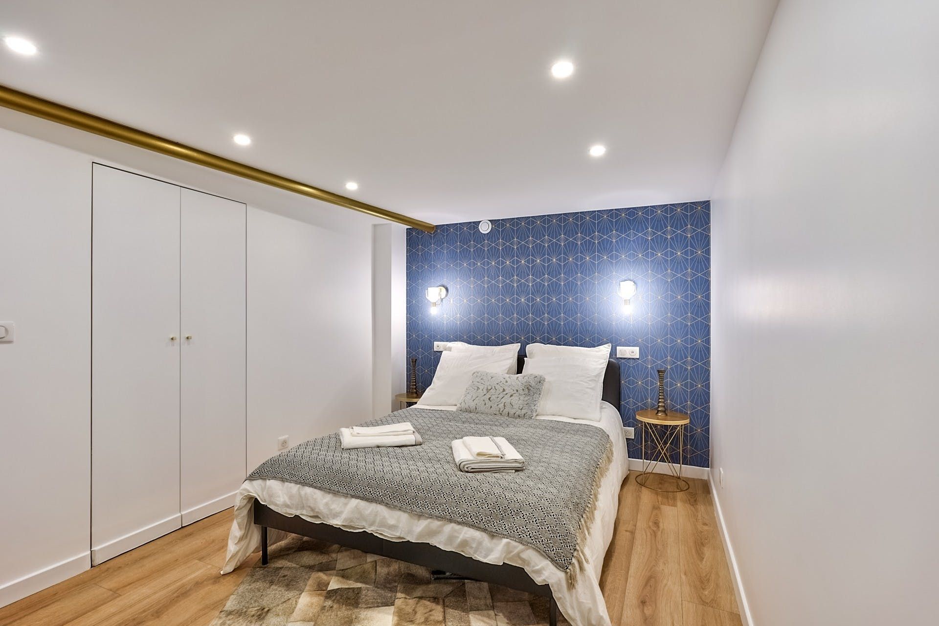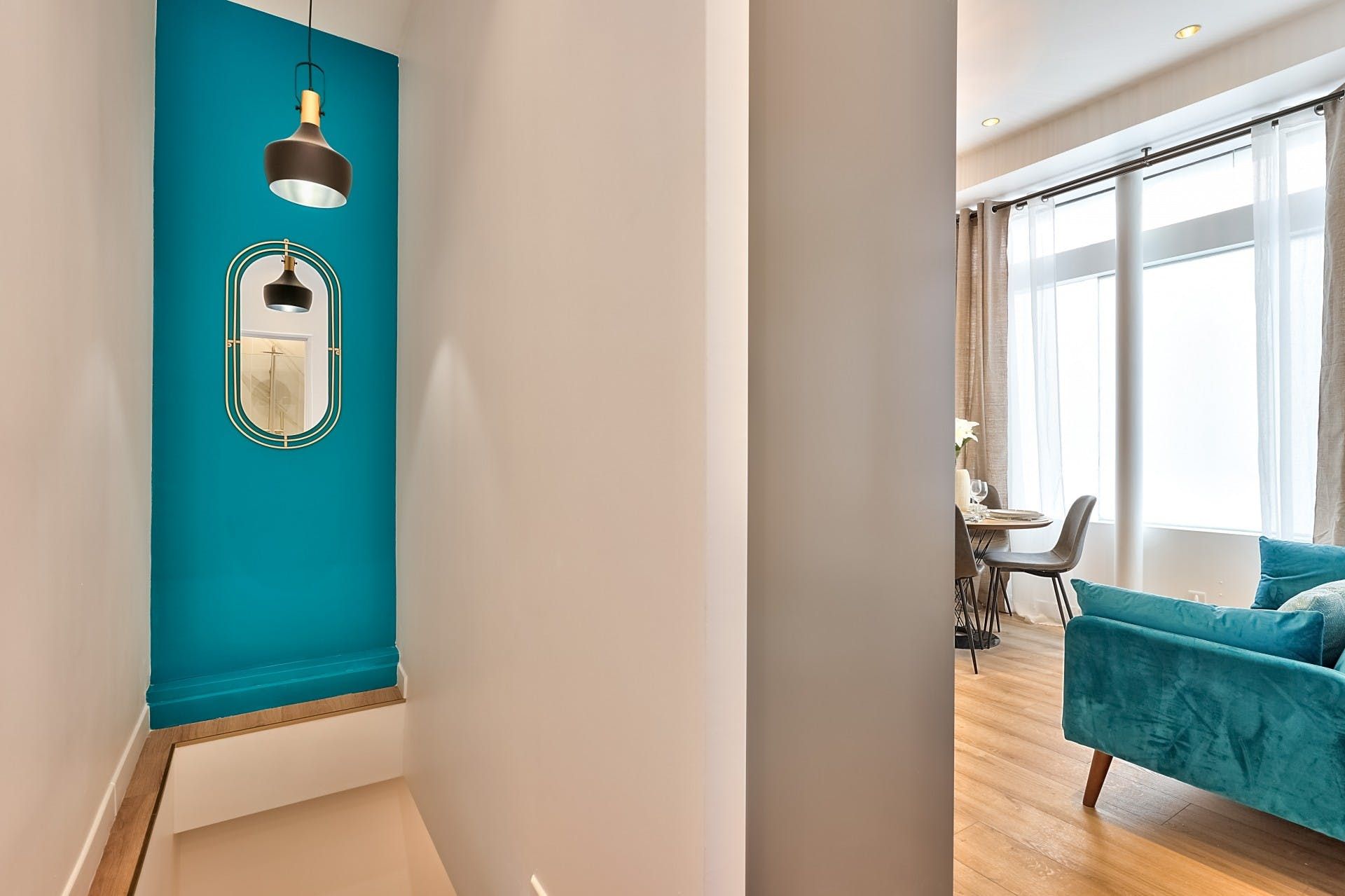 This bijou duplex apartment puts you amidst the leafy boulevards and cobbled streets of Montparnasse. The international train station is a twenty-minute stroll away and in the area to find typical bistros, boulangeries and pavement cafés to sample. Getting into the centre of Paris is easy too, with Plaisance metro station a nine-minute walk. Floor to ceiling windows in the apartment’s living room flood the place with natural light and the decor is a delightful medley of brilliant white and pops of cerulean and brass. If you’re not popping to the bakery for a pain au chocolat, the compact kitchen has everything you need to start the day and you can breakfast in the sunny window spot before hitting the city.