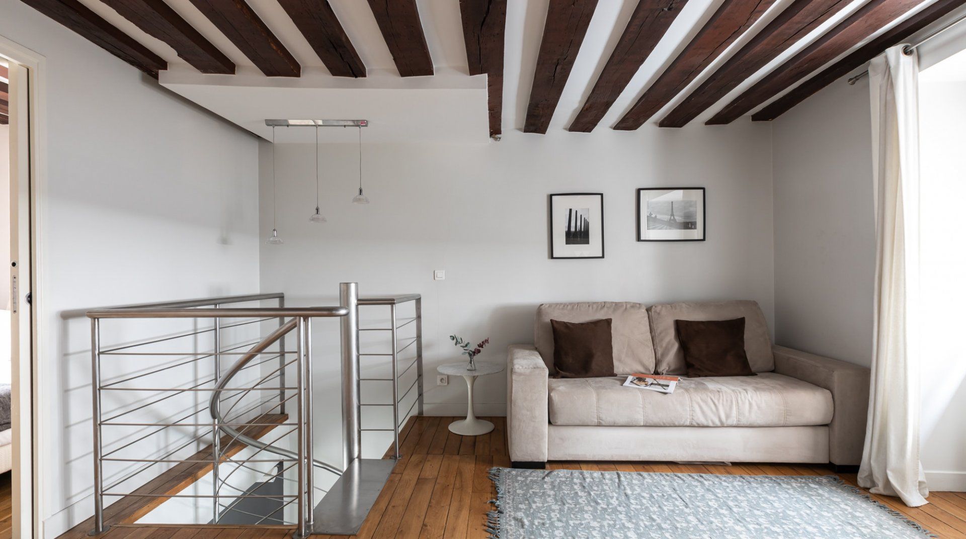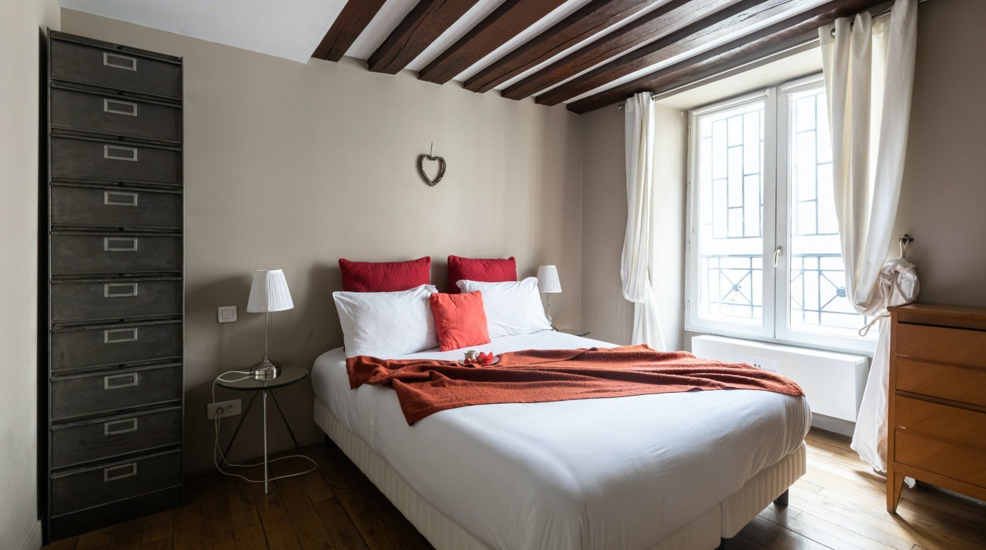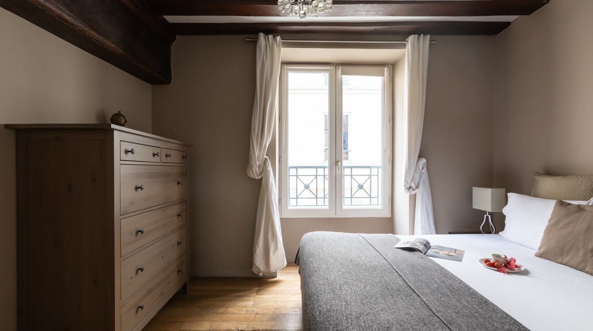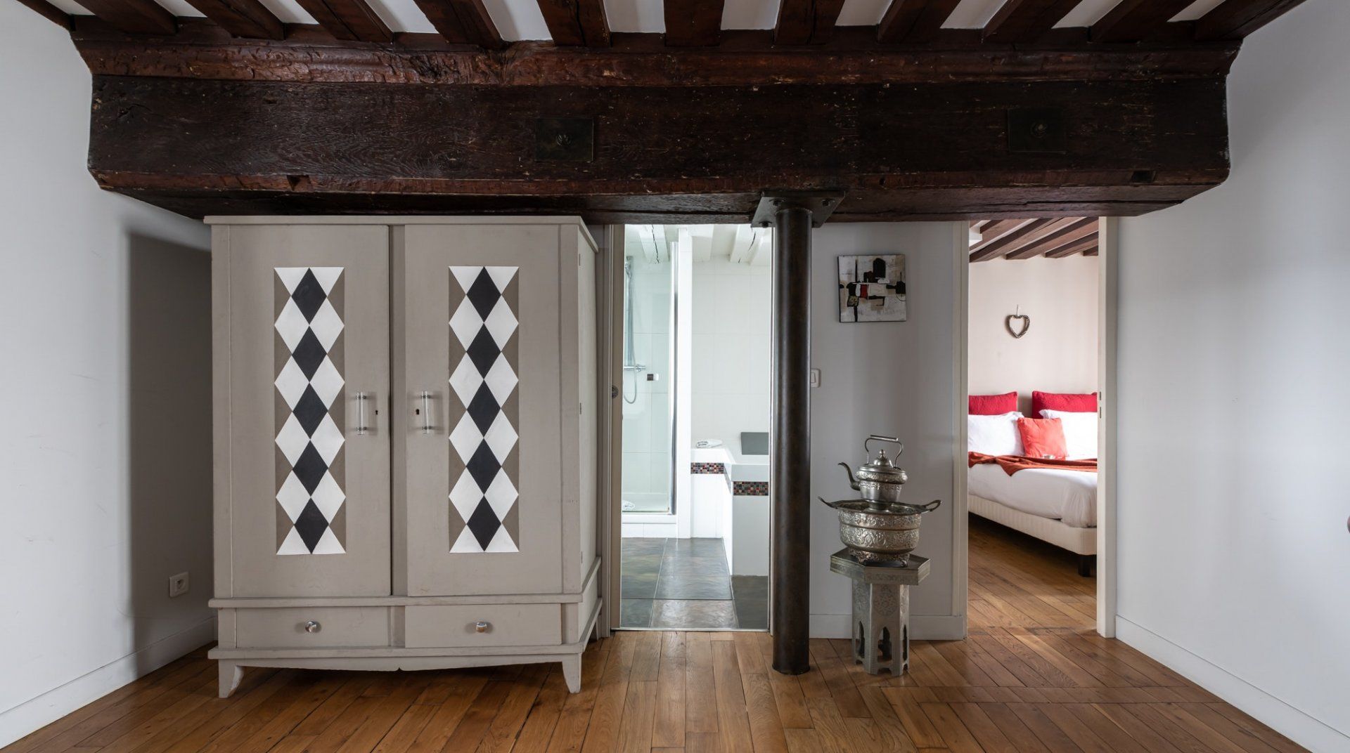 This spacious two-bedroom apartment shines for its centre-of-the-action location, close to the main attractions of the Marais. It's perfectly equipped to keep a two couples comfortable during their Parisian stay, although some may miss a second bathroom for a more agile morning routine. Featuring a modern open-plan living space with a few stylish details and exposed beams in the bedrooms, this home looks simple at first sight but packs a fair amount of character and charm.