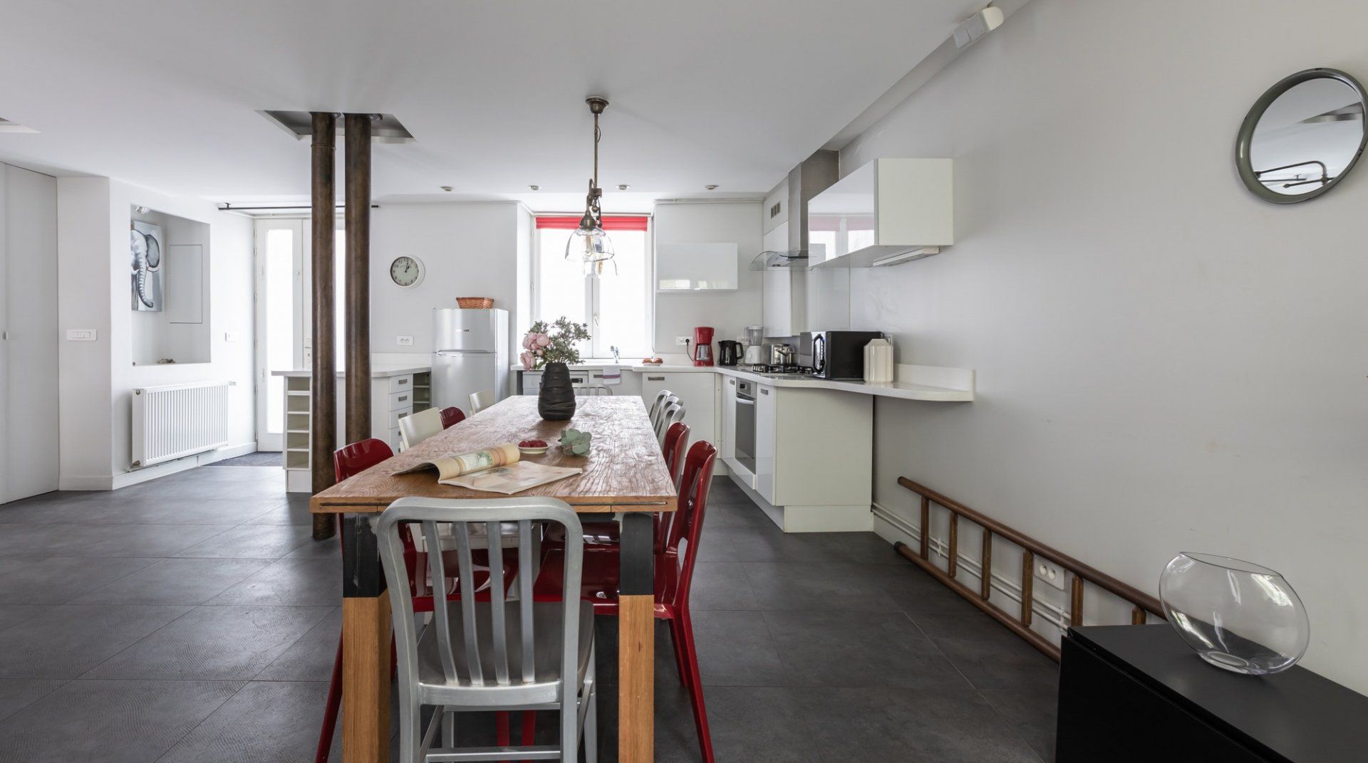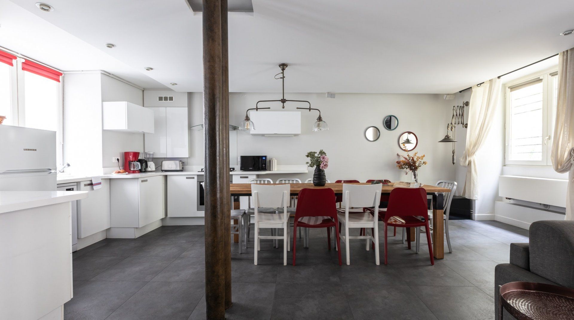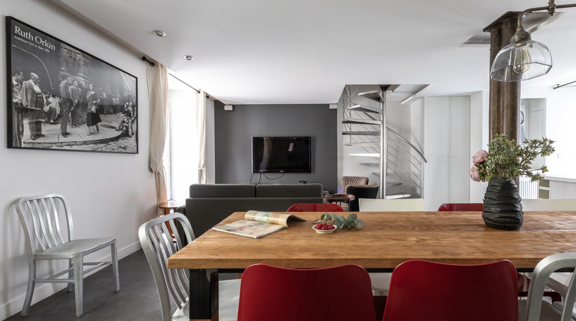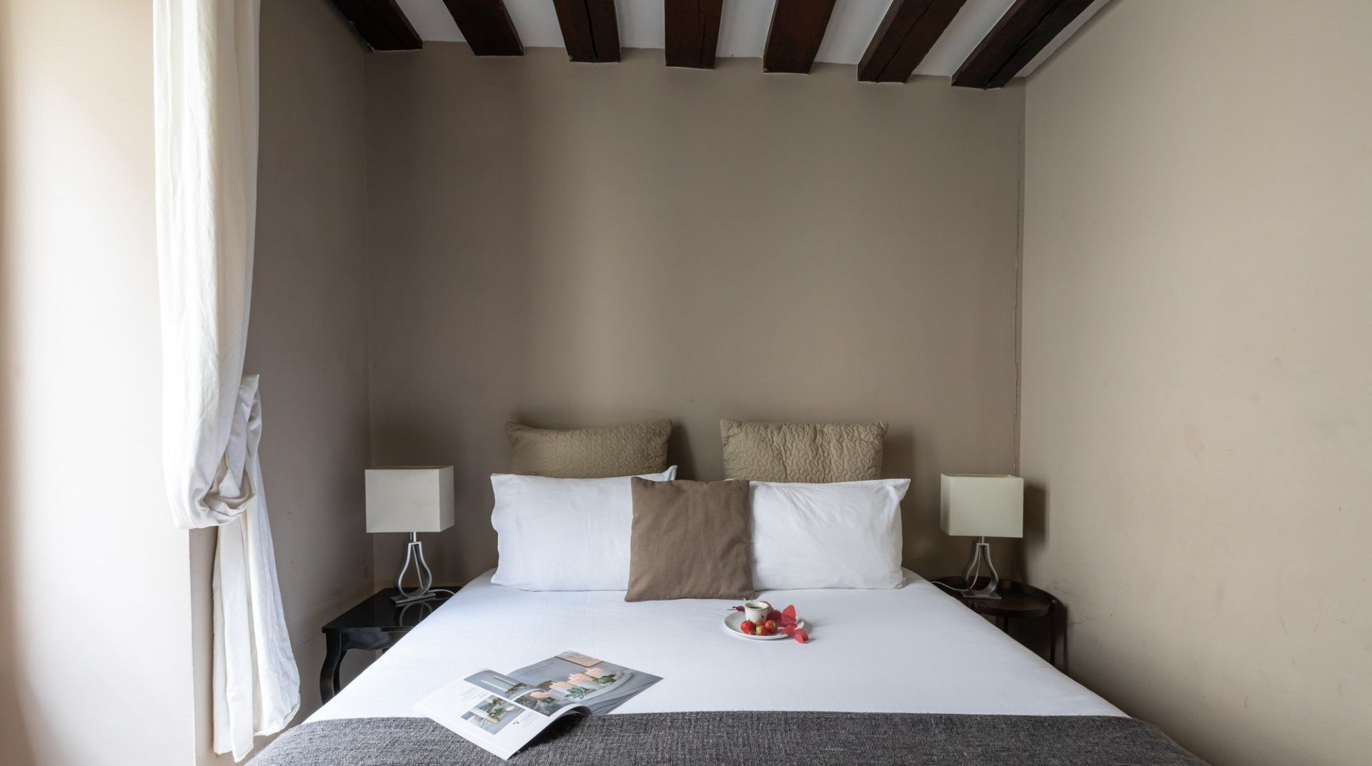 This spacious two-bedroom apartment shines for its centre-of-the-action location, close to the main attractions of the Marais. It's perfectly equipped to keep a two couples comfortable during their Parisian stay, although some may miss a second bathroom for a more agile morning routine. Featuring a modern open-plan living space with a few stylish details and exposed beams in the bedrooms, this home looks simple at first sight but packs a fair amount of character and charm.