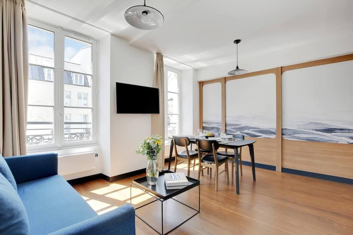 Close to the historic Place de la Bastille, this smart apartment ticks all the right boxes for a great stay in Paris. Its central location means there’s lots to see and do nearby, plus it’s moments from a Metro station, so you can easily explore the rest of the city. The living space features a small kitchen and dining area if you’d like to eat in, and the bathroom has the bonus of a bathtub, which you don’t often find in Paris. There’s a small desk in the bedroom for catching up on emails or calls, plus a sofa bed in the lounge that sleeps two. Stay here while you’re seeing the sights and you’ll have everything you need for a happy holiday.