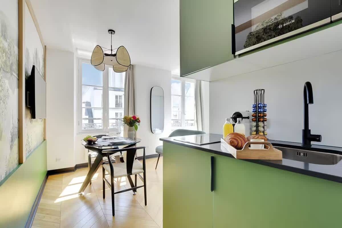 This studio apartment’s location is just a short walk from the iconic Place de la Bastille. Canal Saint-Martin and Place des Vosges are also perfect for an afternoon stroll, and both are reachable on foot. You’ll find a range of cafes and restaurants in the locale too. Back at this compact home, it's a cosy space to relax in and there’s a small kitchenette (there’s no oven but there’s a hob and microwave). This comfy place is a perfect choice for those looking to immerse themselves in the vibrant atmosphere of the City of Light.