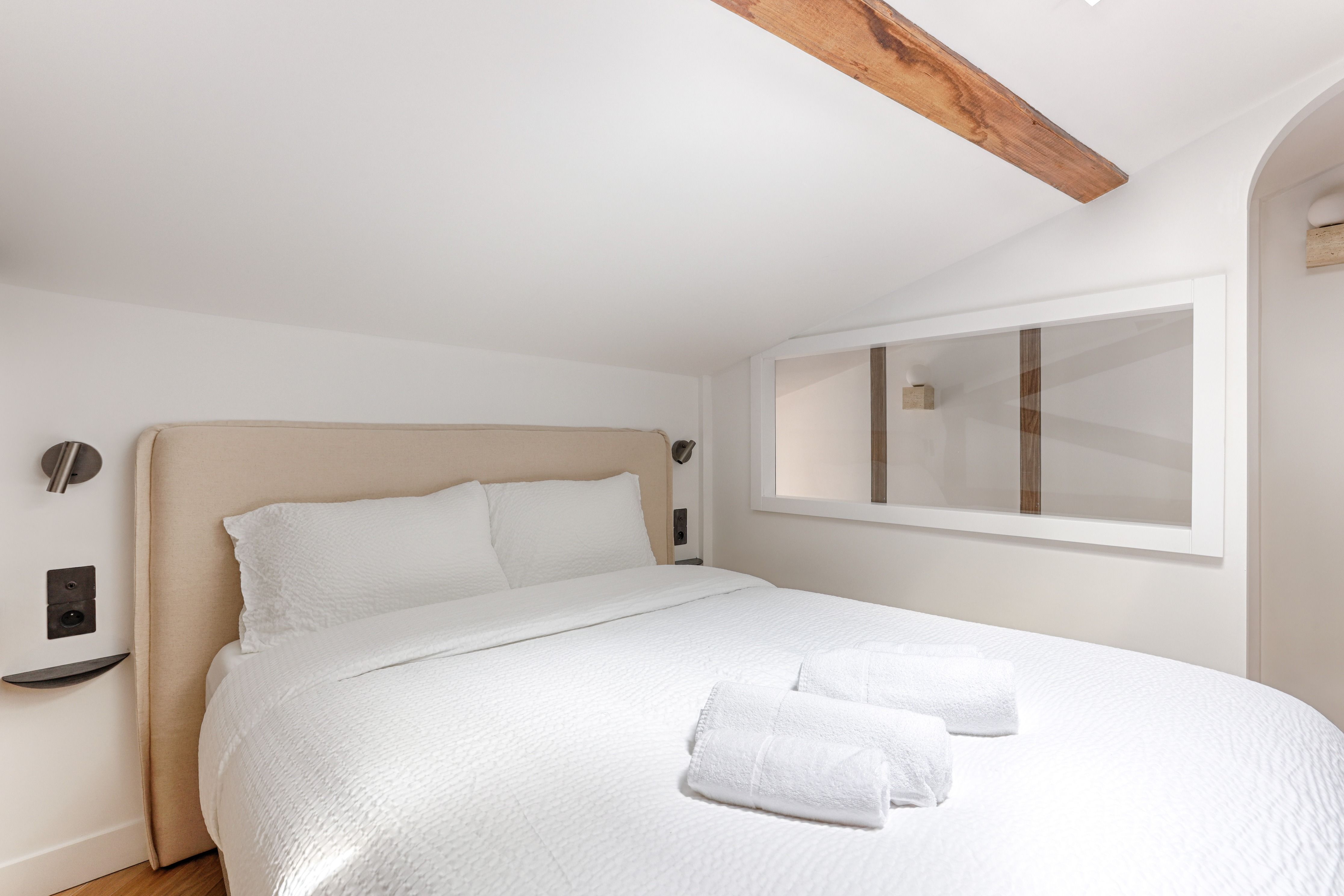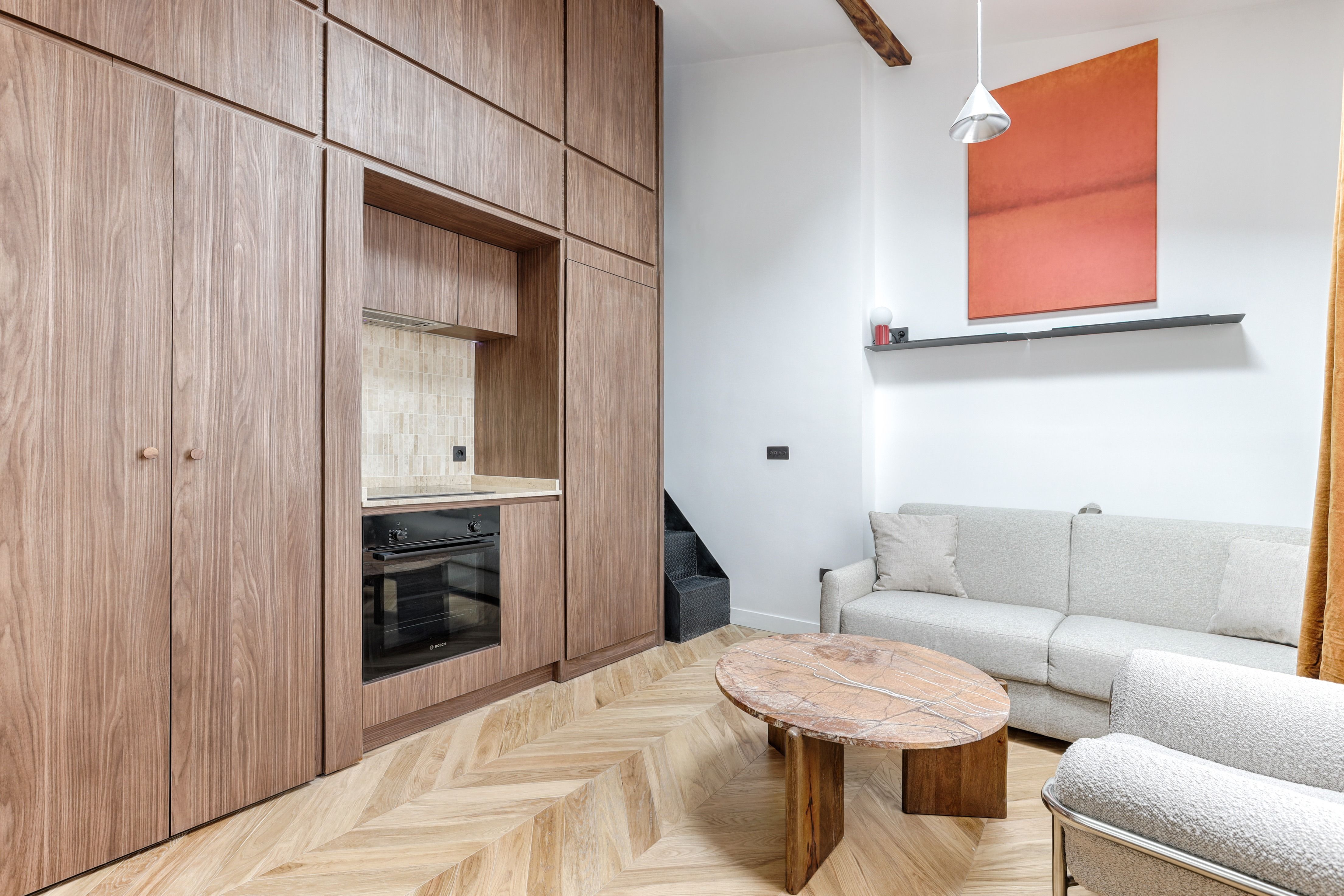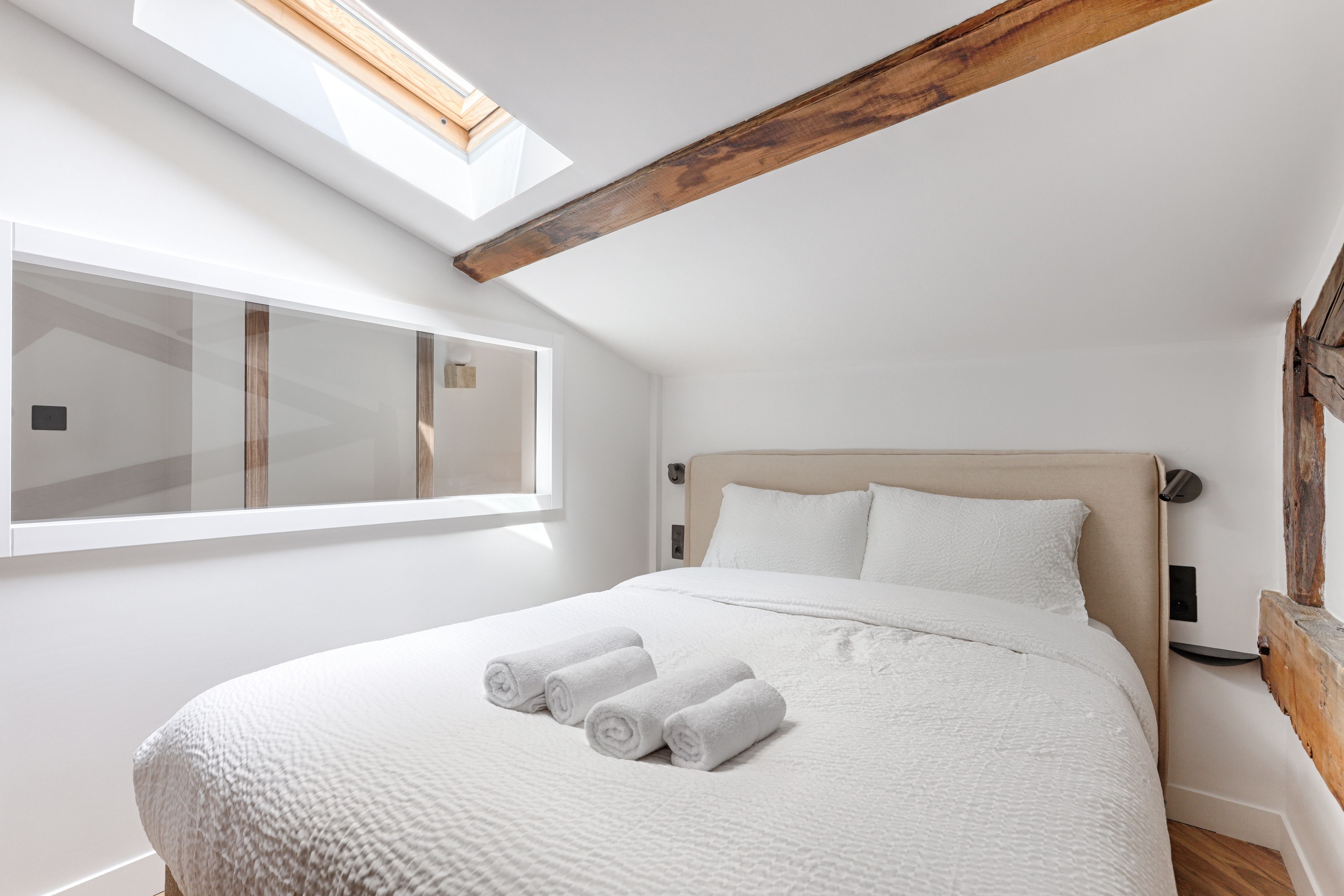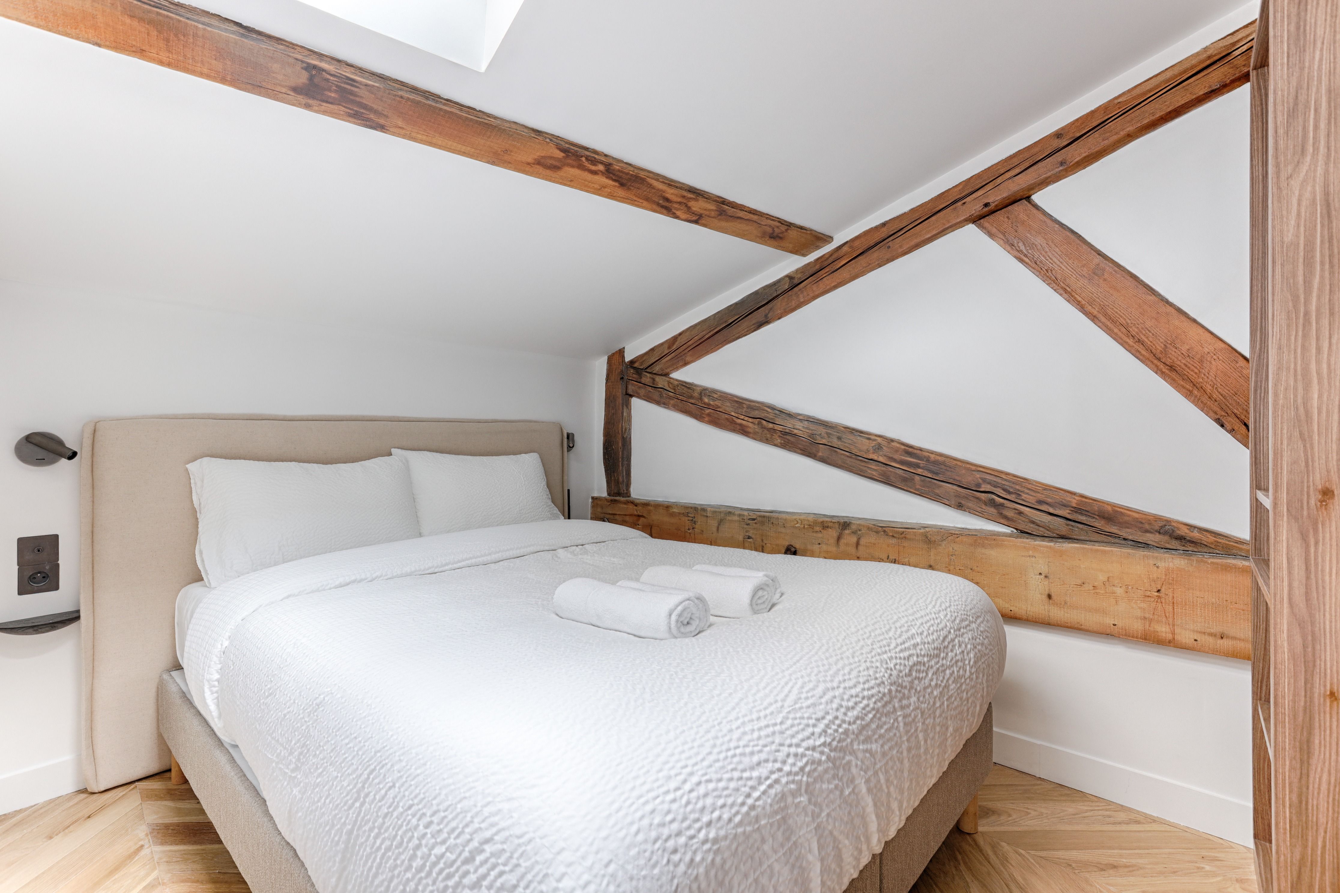 This apartment is well-placed to explore Paris. You'll find it in the lively 11th arrondissement, just a stone's throw from Place de la Bastille. Many eateries, music venues, and shops are in the local area, not to mention metro stations within walking distance that make travel a cinch. Back home, the cosy lounge is where you'll do your unwinding. A small kitchen is ready for you to whip up light bites, while the lofted bedrooms are comfortable – albeit a tad snug. There's also a sofa bed for guests five and six, but we think it'd be a squeeze.