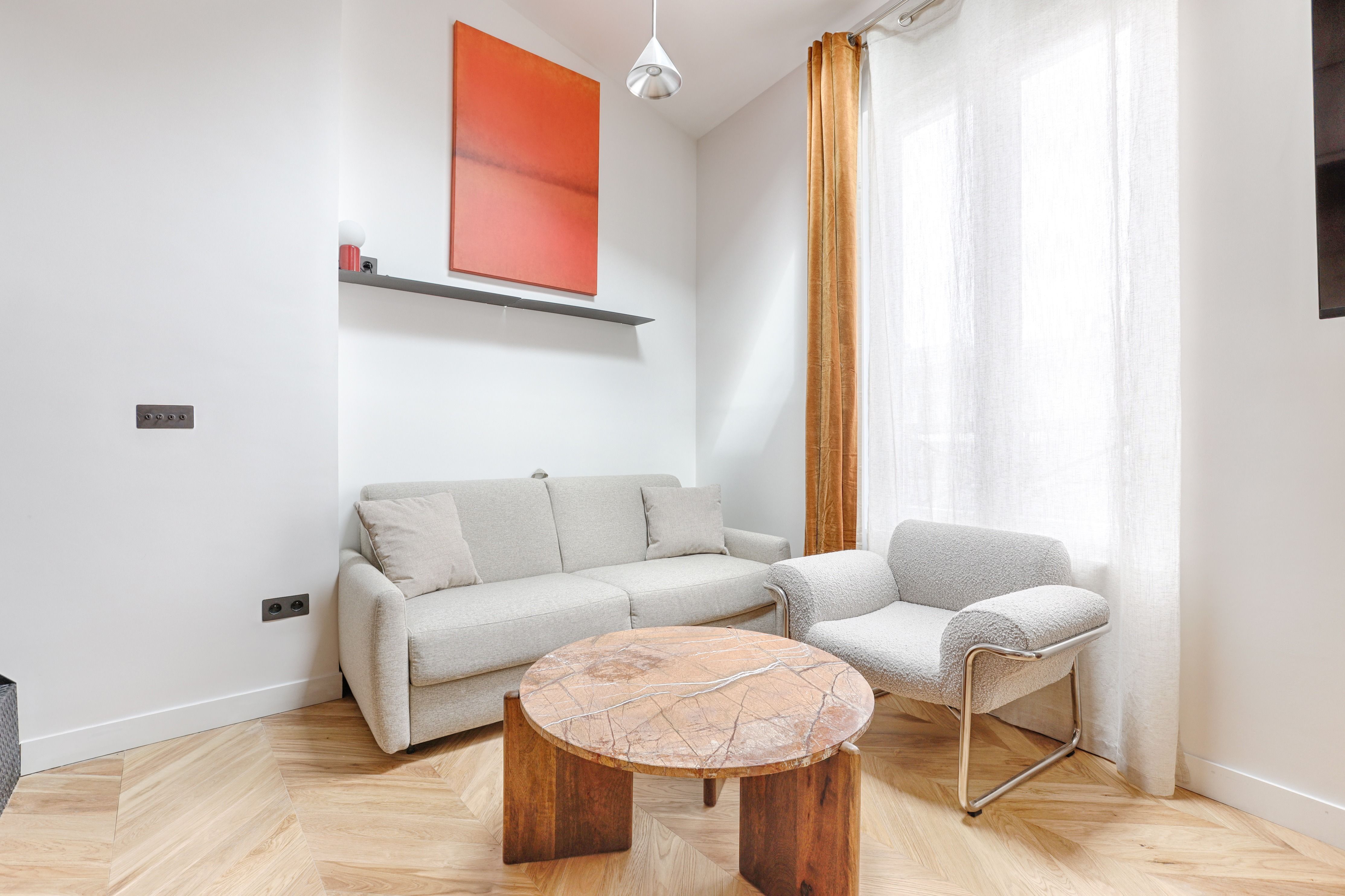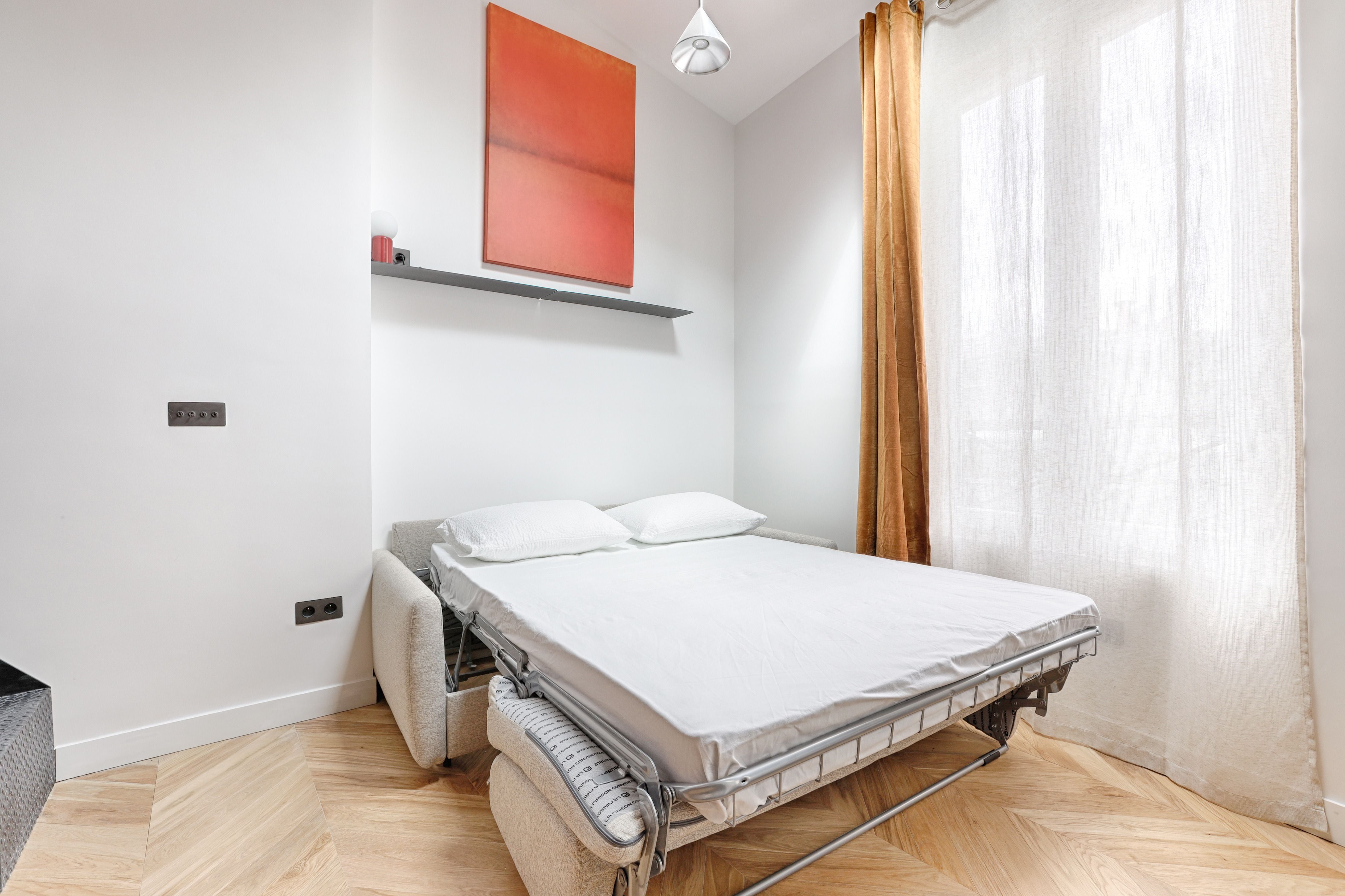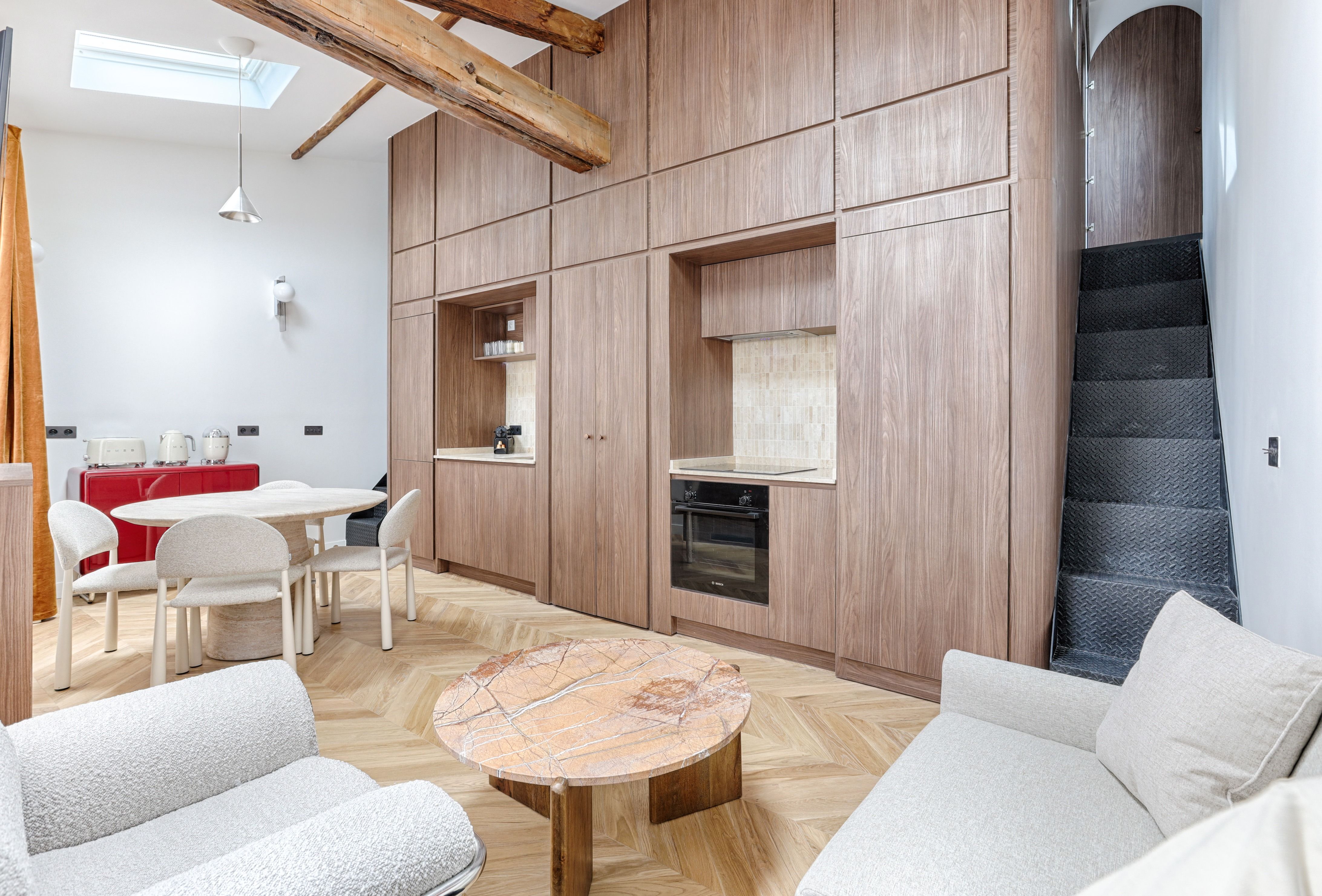 This apartment is well-placed to explore Paris. You'll find it in the lively 11th arrondissement, just a stone's throw from Place de la Bastille. Many eateries, music venues, and shops are in the local area, not to mention metro stations within walking distance that make travel a cinch. Back home, the cosy lounge is where you'll do your unwinding. A small kitchen is ready for you to whip up light bites, while the lofted bedrooms are comfortable – albeit a tad snug. There's also a sofa bed for guests five and six, but we think it'd be a squeeze.