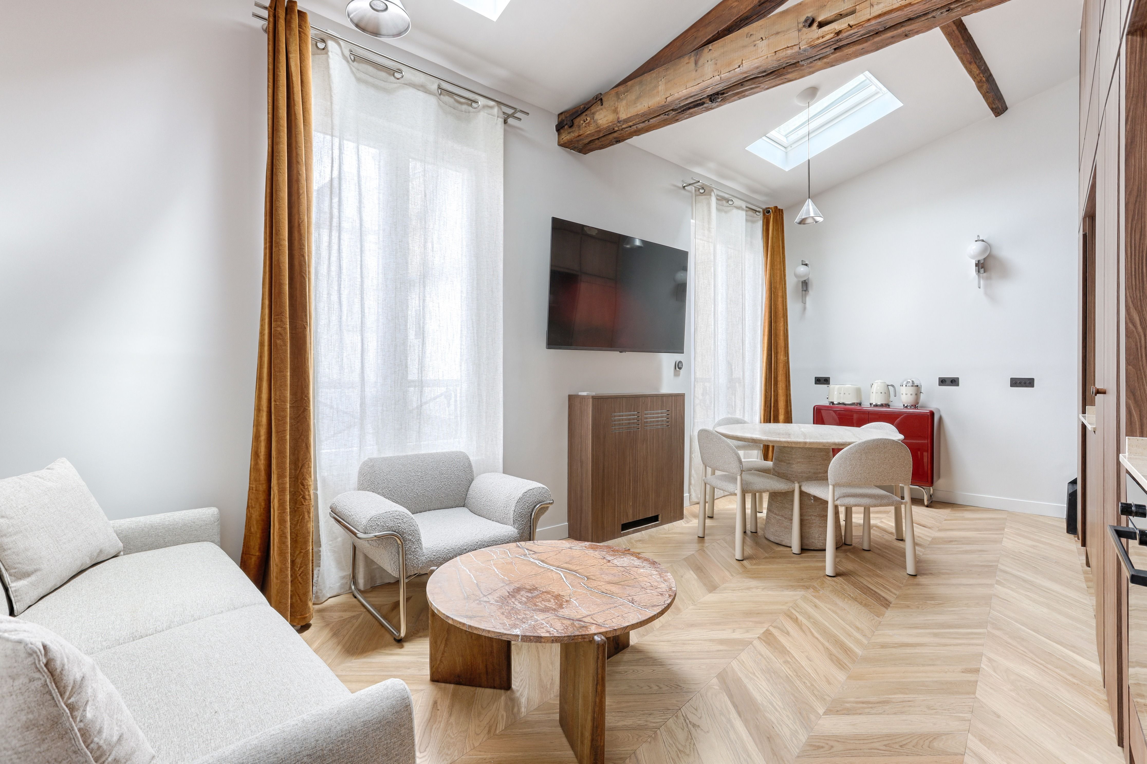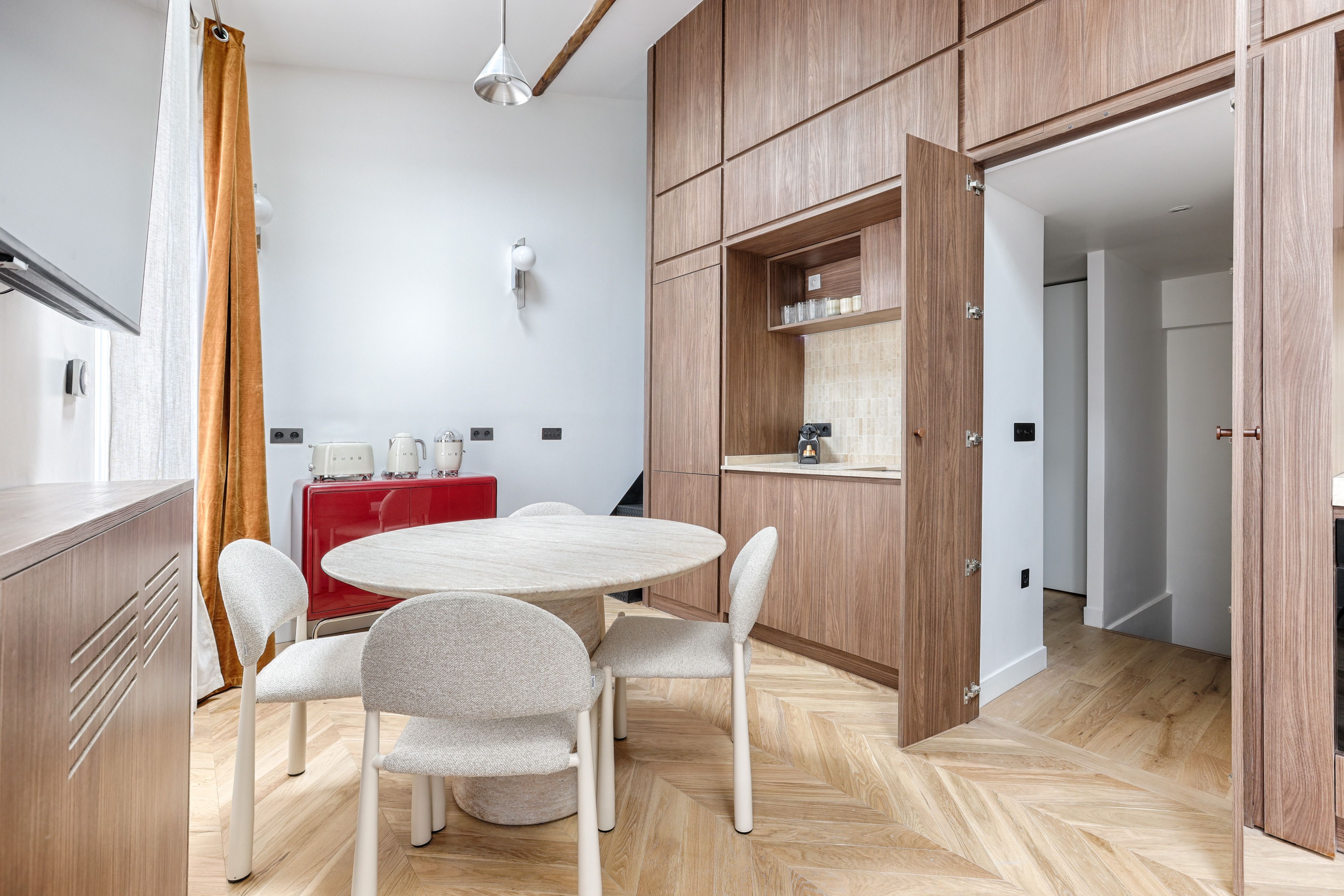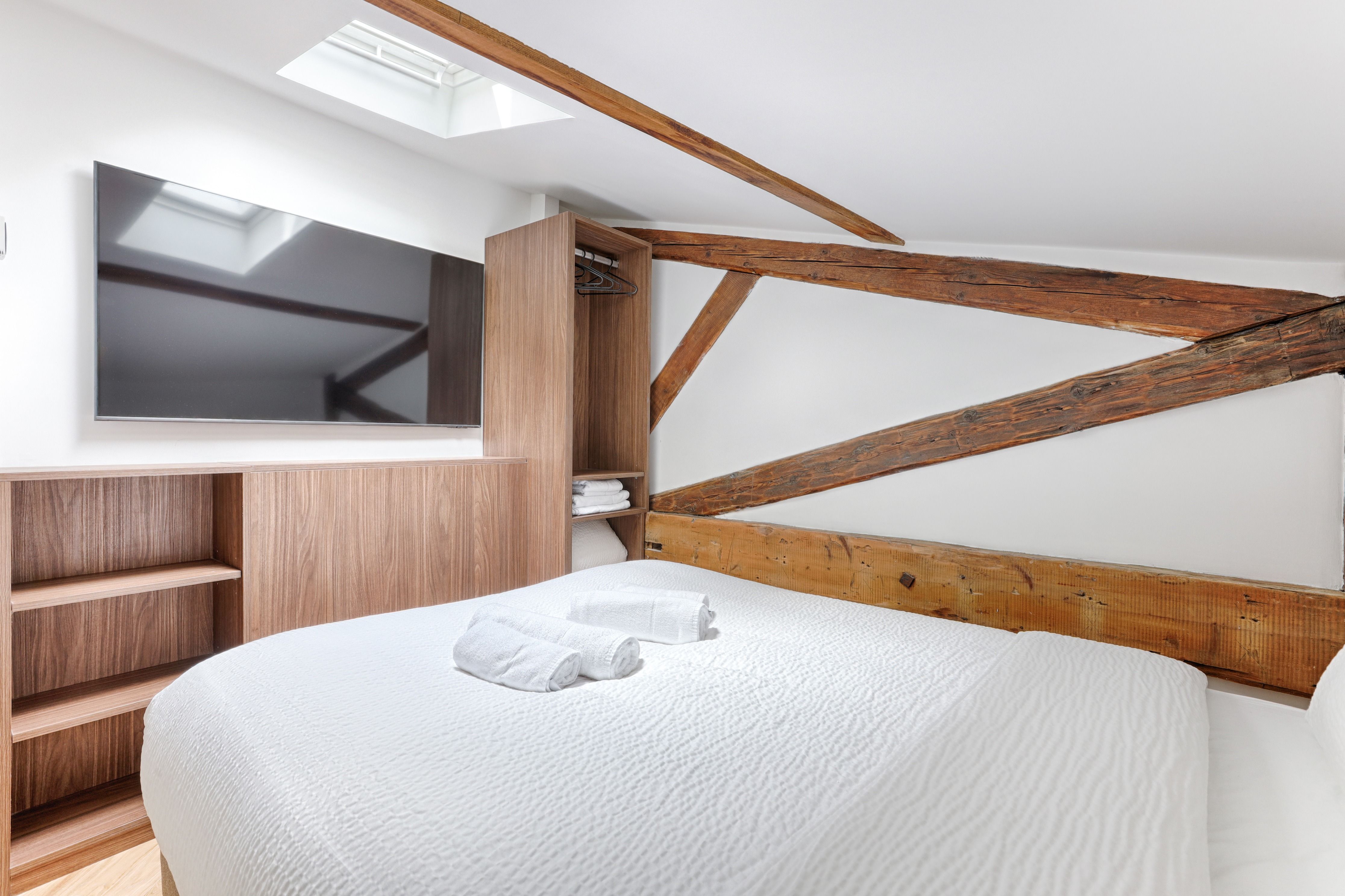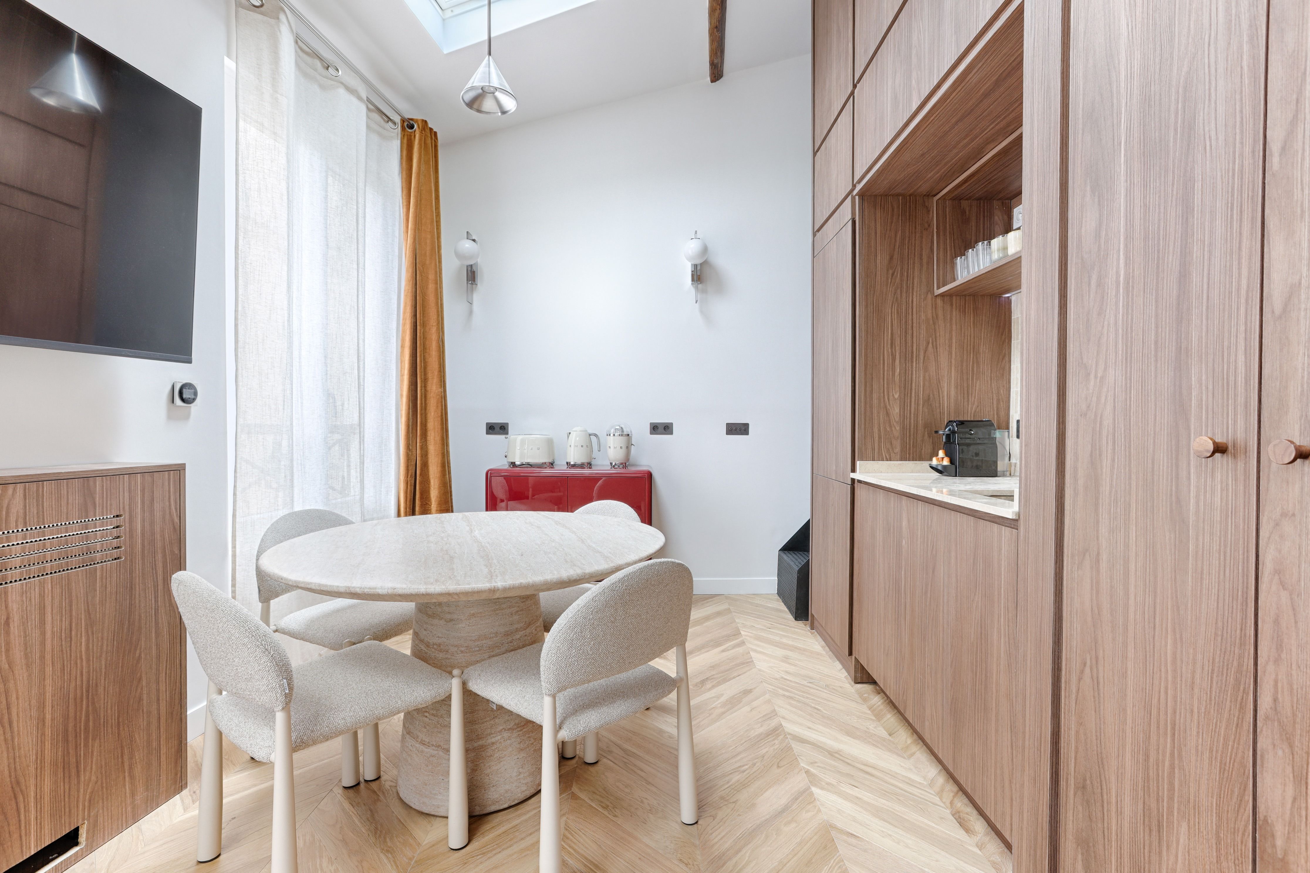 This apartment is well-placed to explore Paris. You'll find it in the lively 11th arrondissement, just a stone's throw from Place de la Bastille. Many eateries, music venues, and shops are in the local area, not to mention metro stations within walking distance that make travel a cinch. Back home, the cosy lounge is where you'll do your unwinding. A small kitchen is ready for you to whip up light bites, while the lofted bedrooms are comfortable – albeit a tad snug. There's also a sofa bed for guests five and six, but we think it'd be a squeeze.