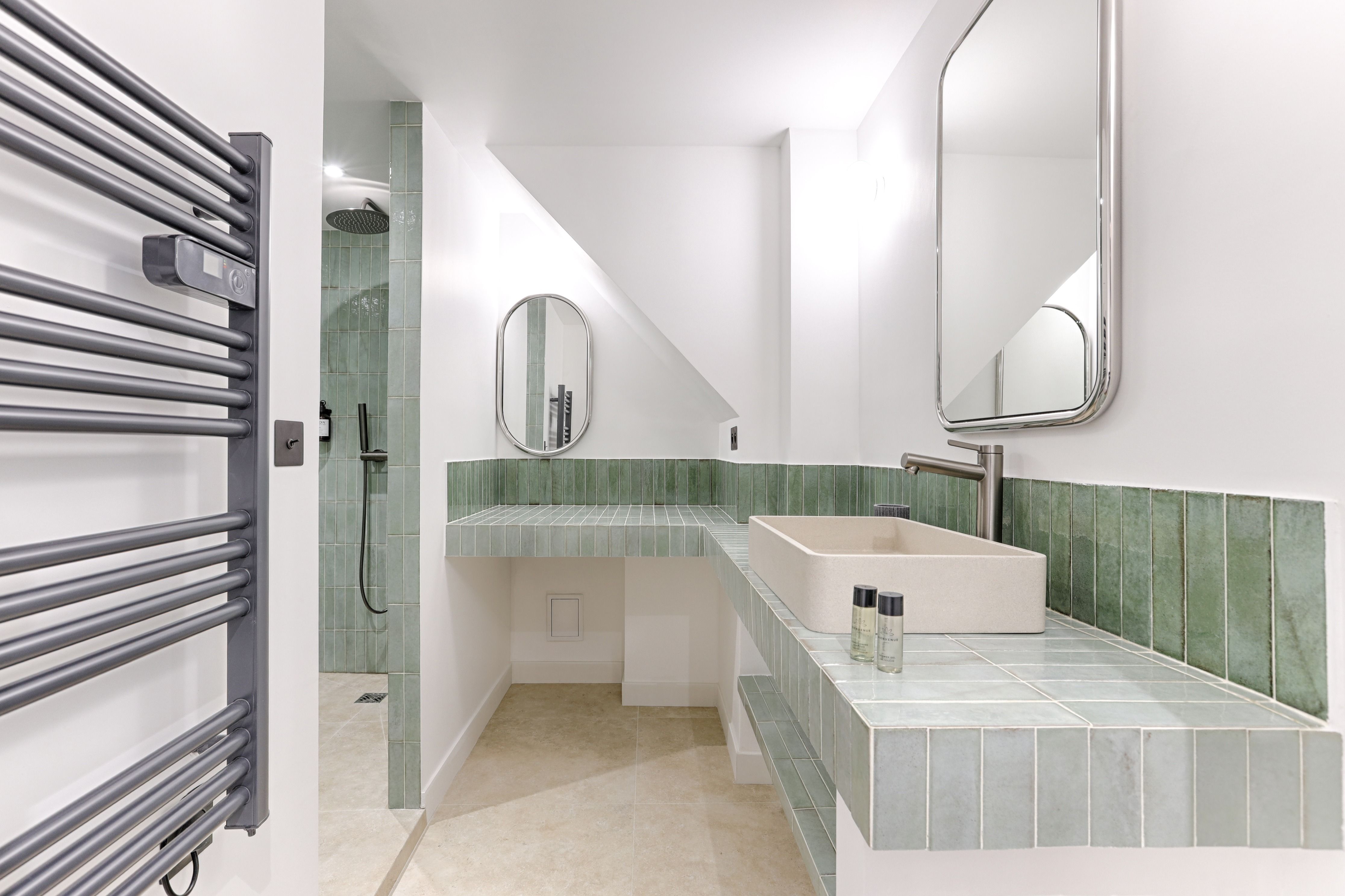 *As is common in France, the bathroom does not have a toilet. It's located in a separate WC.