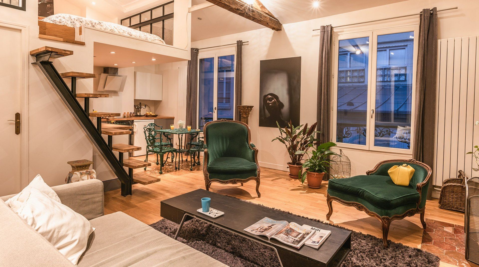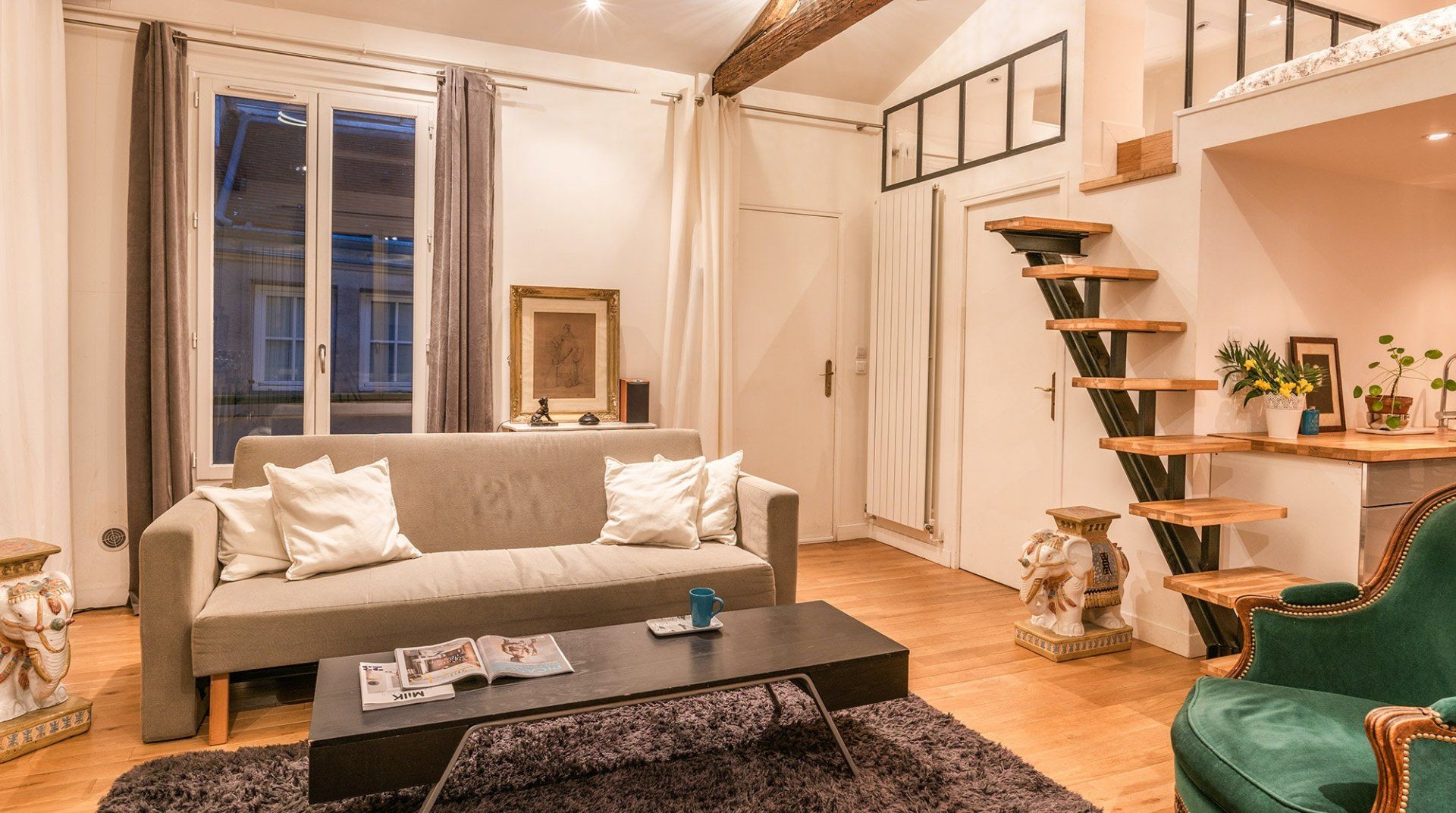 Full of old-world charm with contemporary touches, this home is a celebration of traditional features with a modern flare. The beautiful beams and charming Crittall windows create a cosy and comfortable environment away from the bustle of the city. Located between Republique and the Marais and just a few steps from the very lively street Rue de Bretagne there are plenty of shops, restaurants and cafés on your doorstep. Set in the heart of Paris this is a quiet nest in a buzzing location.
