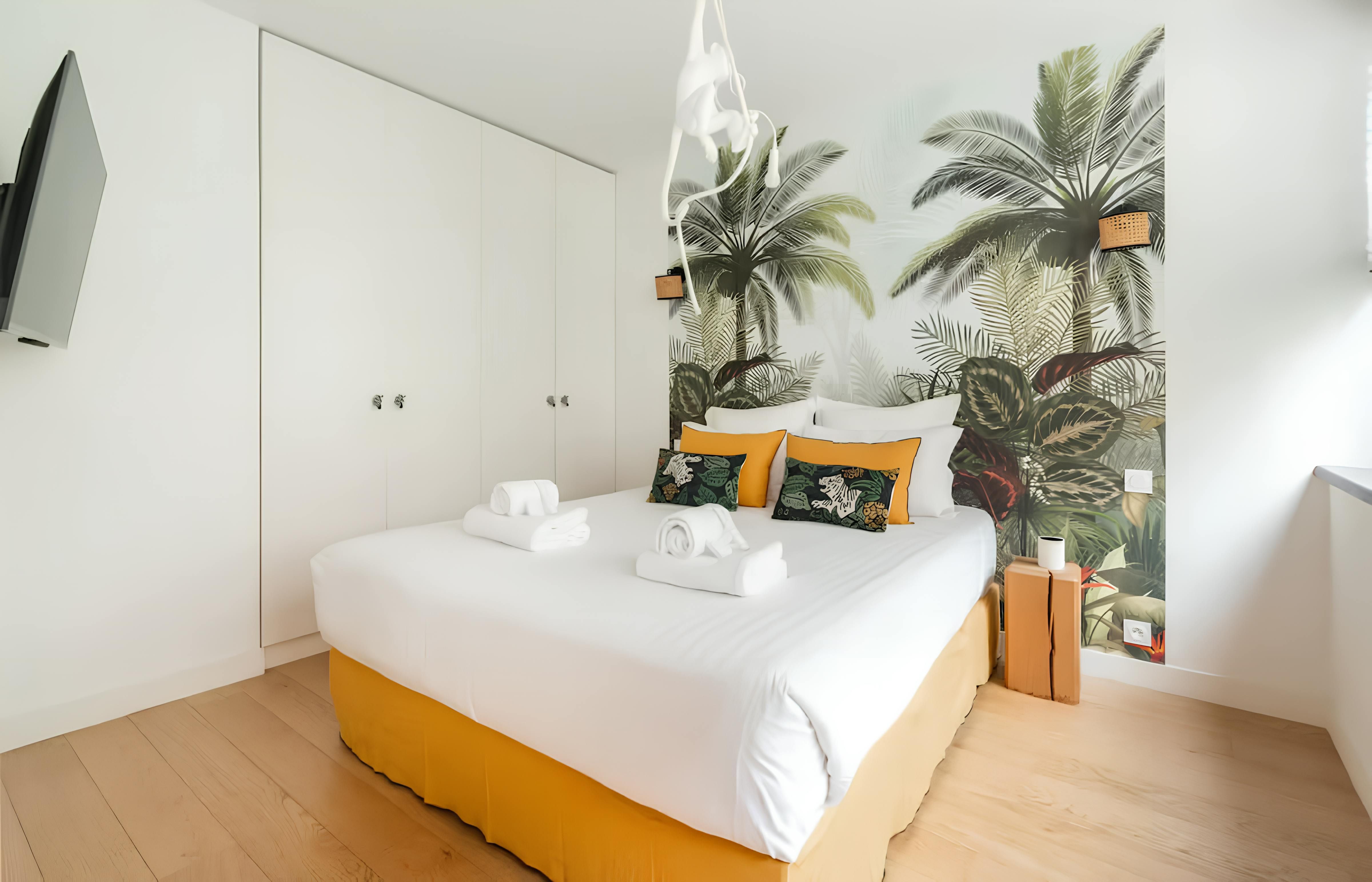 This Parisian home is perfectly placed for exploring the capital. You’ve got must-sees like the Eiffel Tower and the Seine within walking distance, and you’re a stone’s throw from a Metro station for everything else. And if you're in Paris for work, the dedicated desk has got you covered. With tropical murals in the living area and bedroom, this home has more personality than your average city pad. While it may feel a little cosy at full capacity, when guests three and four will be sleeping on a sofa bed, we think the convenient location makes this home a great choice for a fuss-free city break.