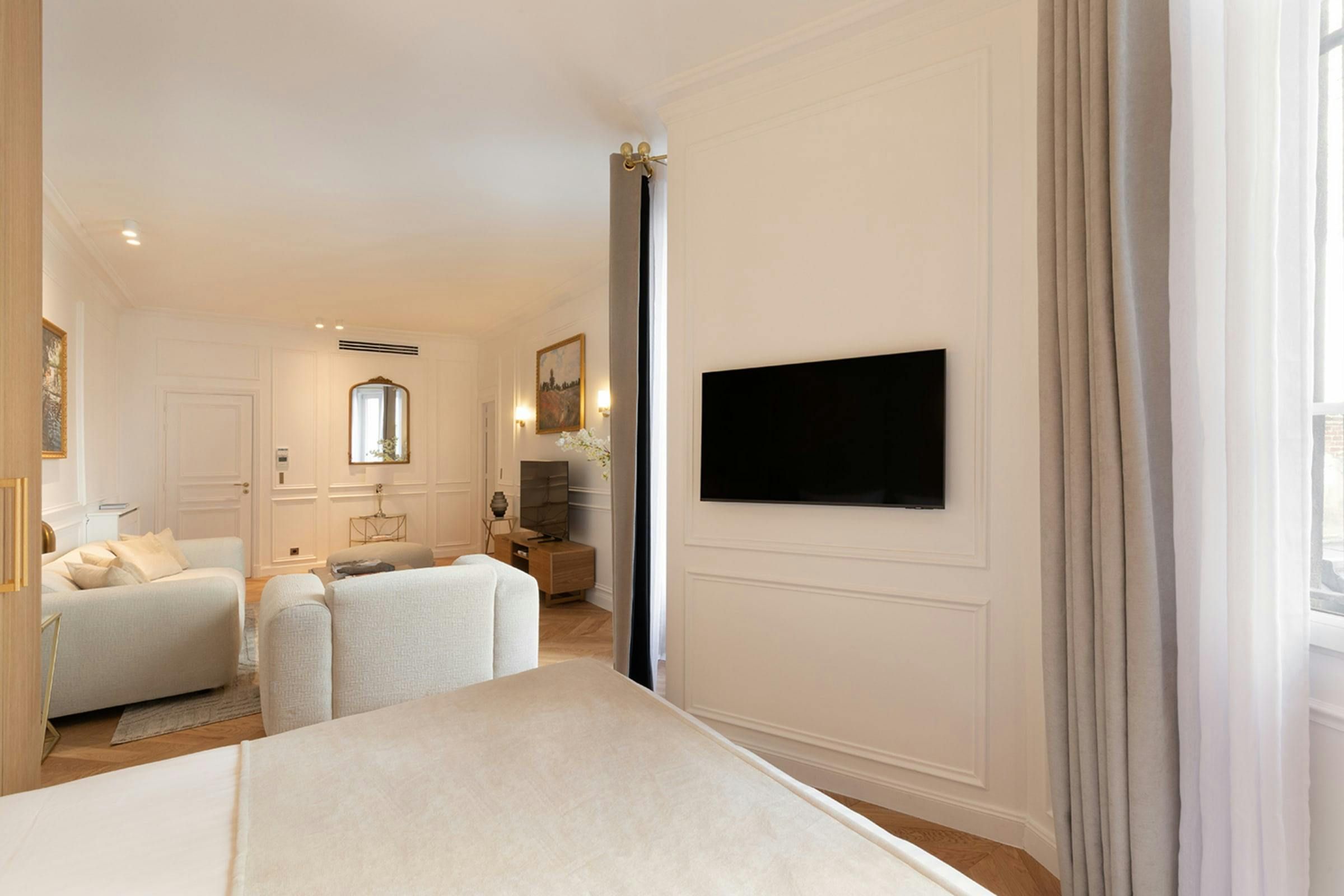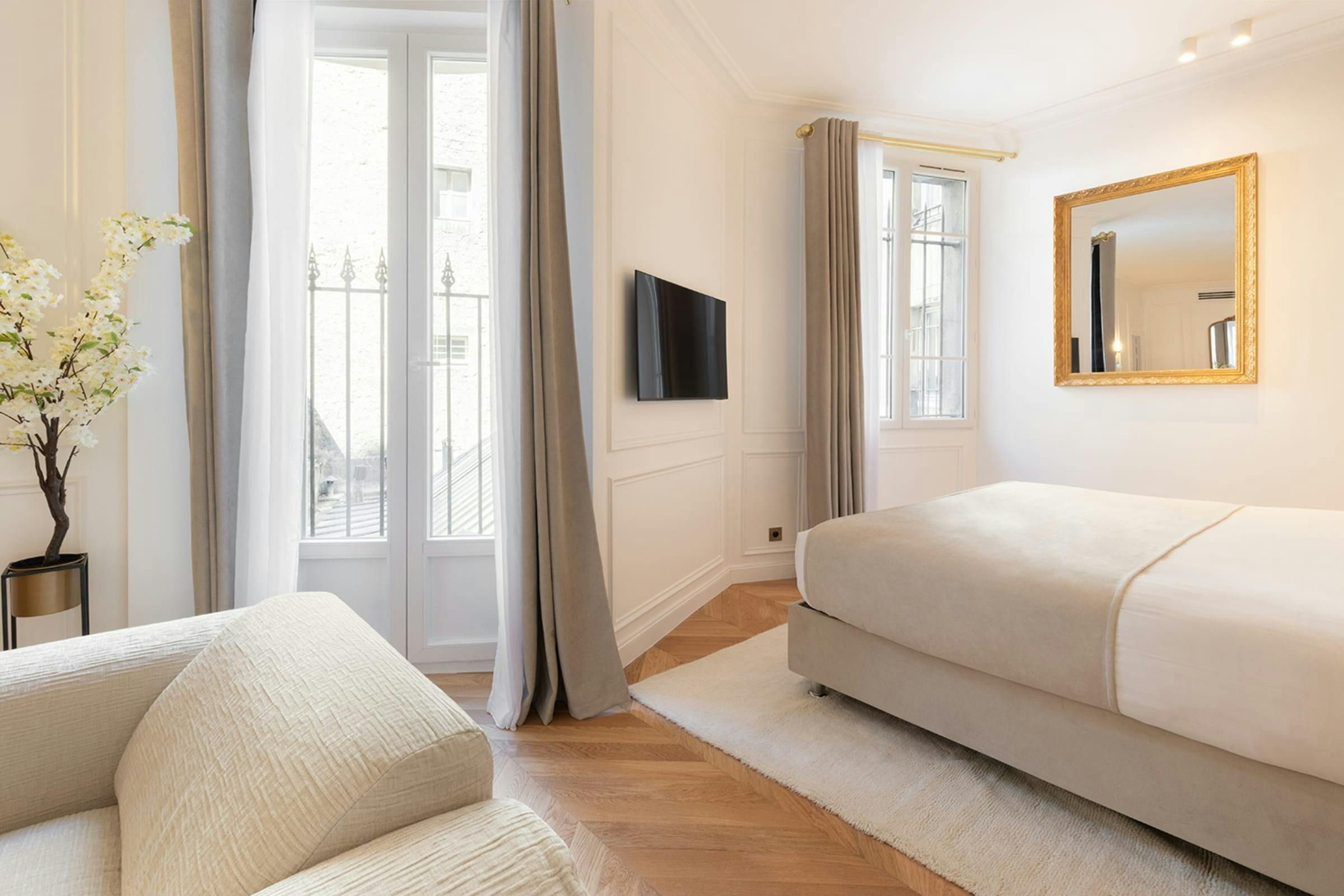 The delights of Paris are right on your doorstep when you stay at this smart apartment. Located in the Opéra district, you’ll be close to high-end department stores, elegant restaurants, and landmarks like the Palais Garnier opera house. Stepping inside the home, you’ll find refined rooms designed with comfort in mind, with plush furnishings, a modern kitchen, and a soft colour scheme that sets the scene for relaxation. There's a sofa bed too – handy for larger groups. And with the nearest Metro station just one minute away, exploring is a breeze when you make this your base.