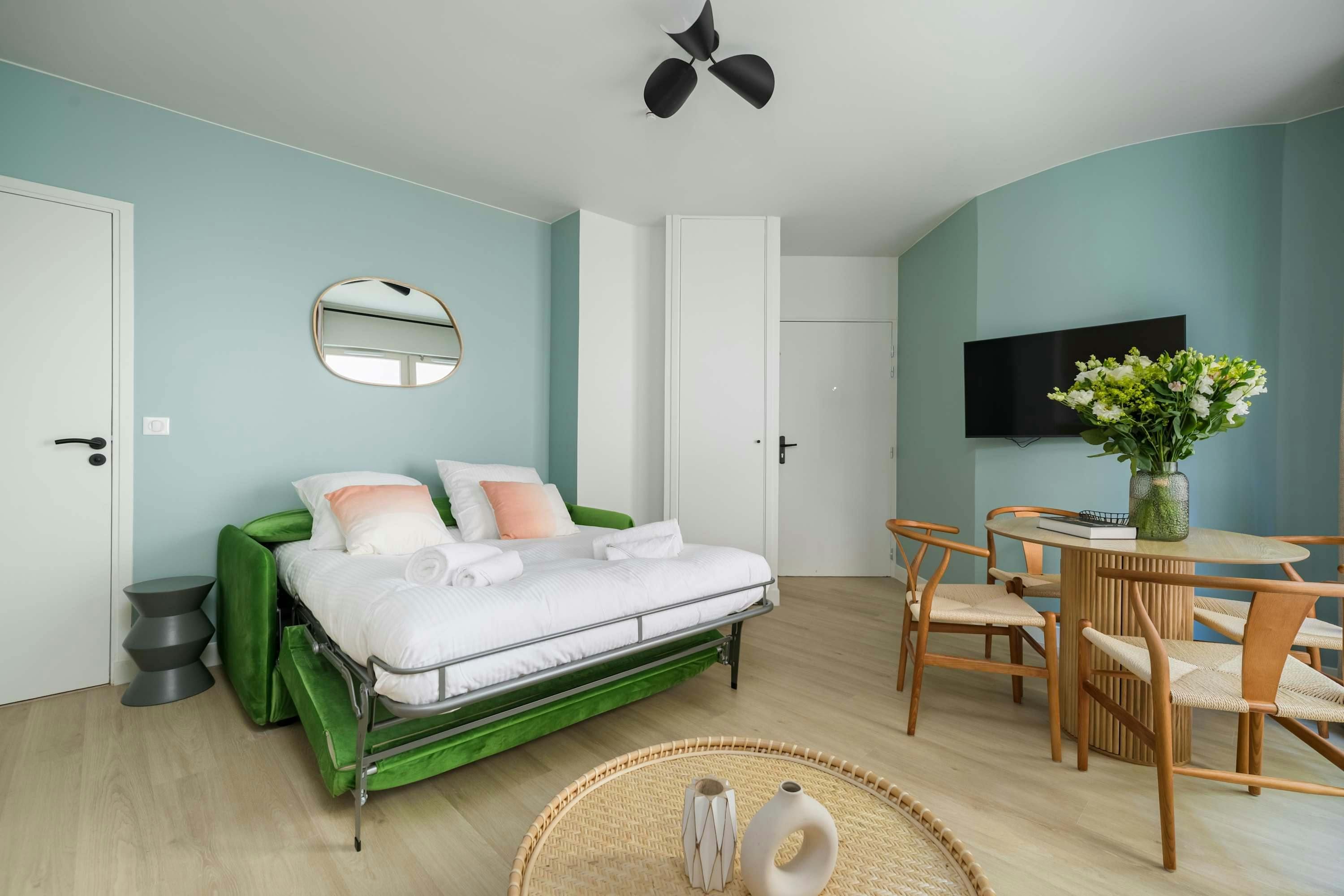 Bold colours, a light-filled interior, big windows – these are some of the things typically used to describe a fabulous Parisian apartment, and this home is no exception. An excellent option for those seeking to see the sights of the City of Lights, it’s ideal for a romantic getaway or a group of friends with a passion for some of the world’s best cultural attractions. When you’re ready to explore, it’s just a short walk to the idyllic neighbourhood of Montmartre, with its iconic basilica on the hill and its charming hilly landscape.