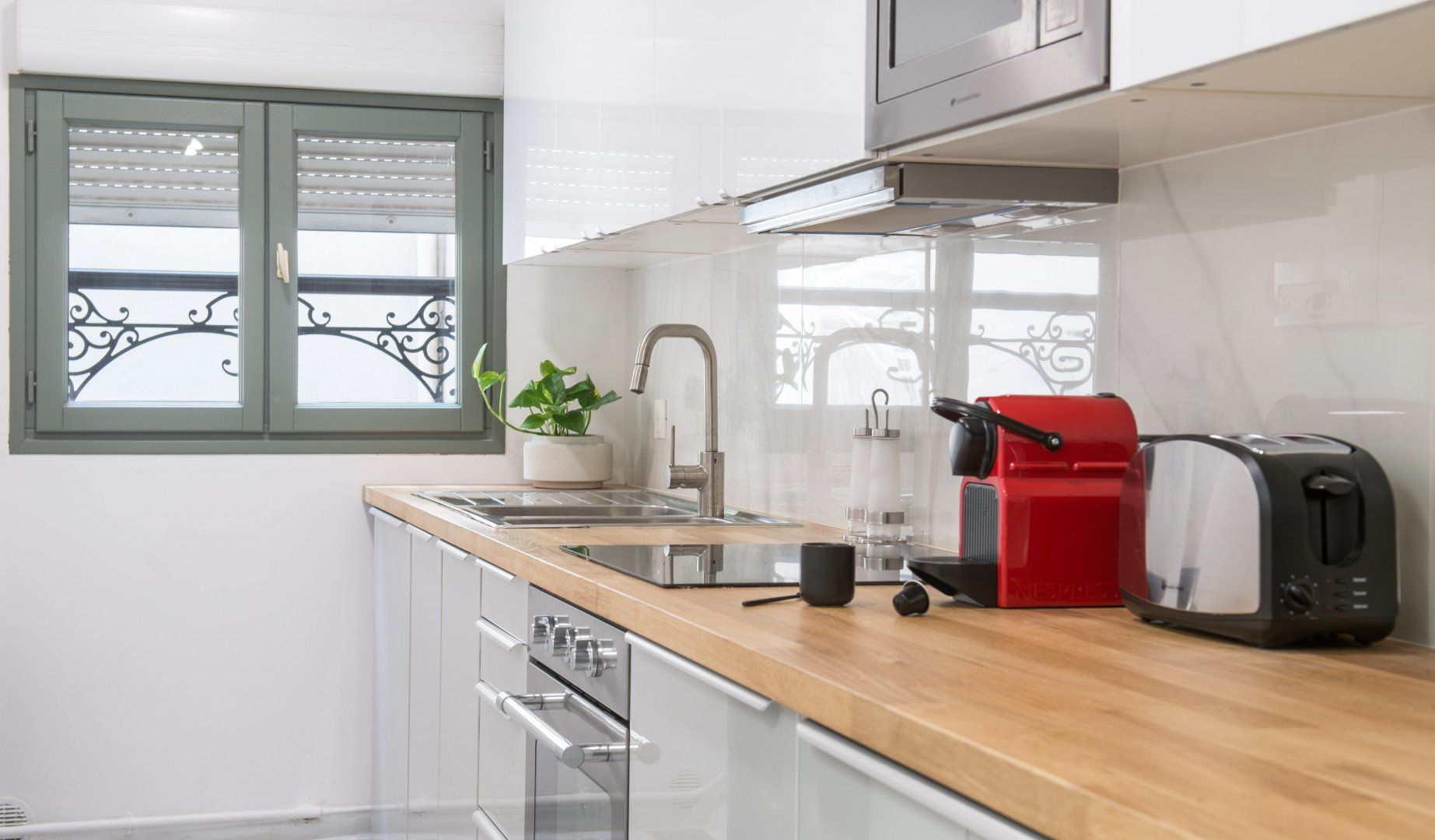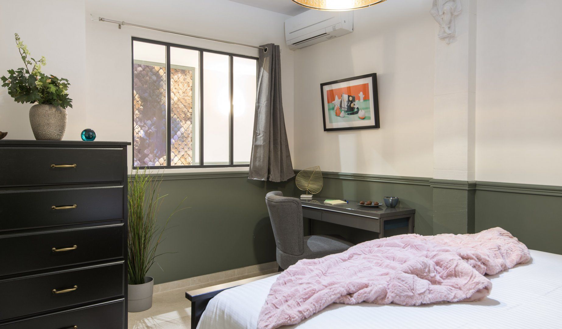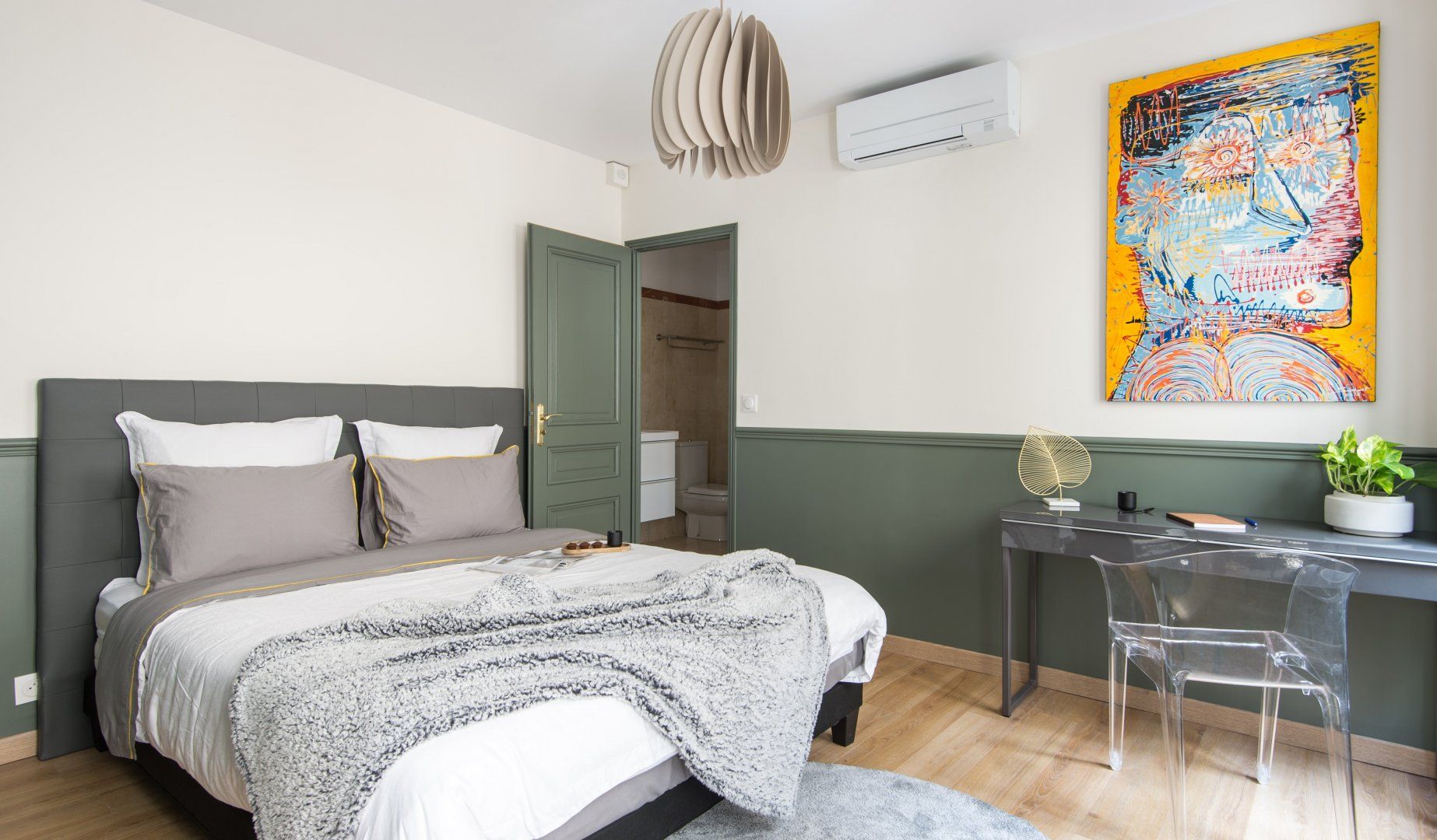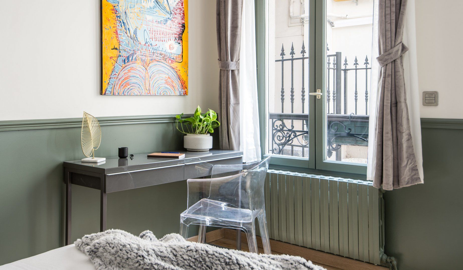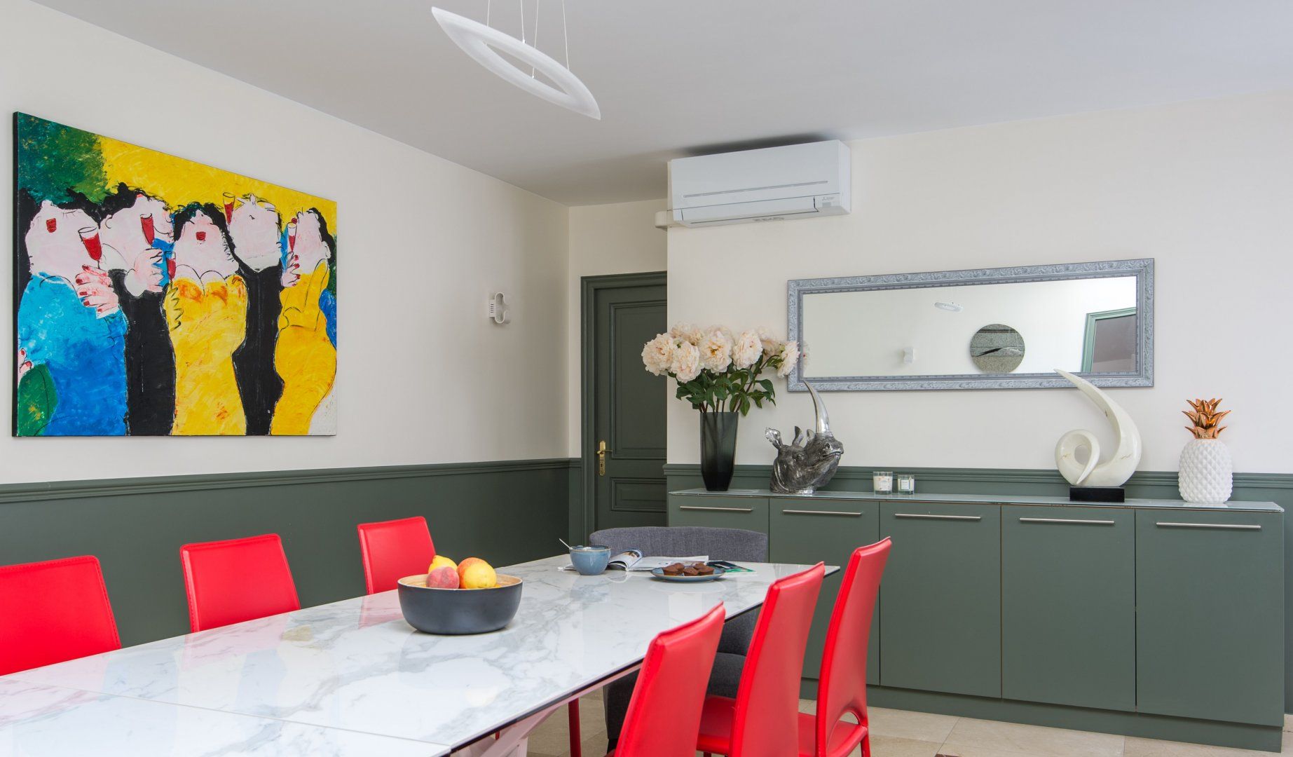 This modern family home is located in one of the most sought after areas of Paris. It's a five-minute stroll to the Champs-Elysées with its luxury boutiques, while several Michelin-starred restaurants are within a ten-minute walk. If you want to take some shots of one of the city's most famous monuments, then the Arc de Triomphe is a four-minute saunter. Or if you're seeking some tranquillity, Bois de Boulogne is around a twenty-five minute wander. Back at this home – we were surprised how quiet it is, given its location. Its striking wall art, such as the dazzling blue feathers, add an exotic flavour to the living space. Shoot some pool here, relax with a glass of fizz, get some fresh air in the courtyard garden or gather in the smart dining space for a special meal. There's plenty of space for a larger group to stretch out and not feel cramped. This place is perfect for entertaining family and friends in style.