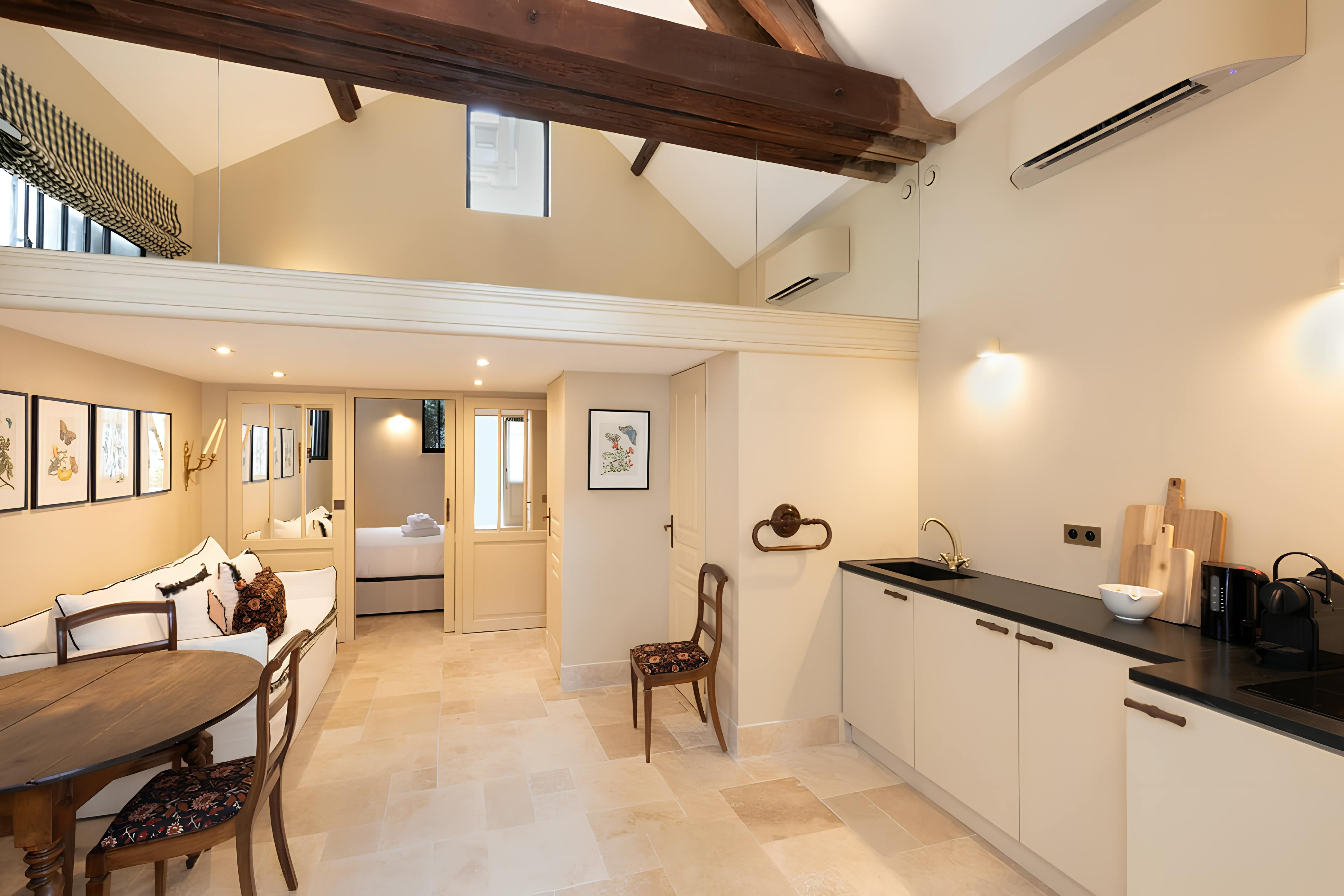 This city pad caught our eye for its central location. Situated in the heart of the Saint-Germain-des-Prés district, you’re surrounded by boutiques and gourmet restaurants. And you’ve got some of Paris’s most famous landmarks, including the Eiffel Tower, the Louvre, and the Panthéon, within a thirty-minute stroll. Back home, the kitchenette is ideal for preparing breakfast and snacks, and when dinner calls, you can head out to one of the local eateries. It’s worth noting that while the home sleeps four, there’s only room for two on the sofa – although there are dining chairs as well. If that’s not a deal-breaker, we think this place is a great choice for two couples wanting easy access to the capital’s must-sees.