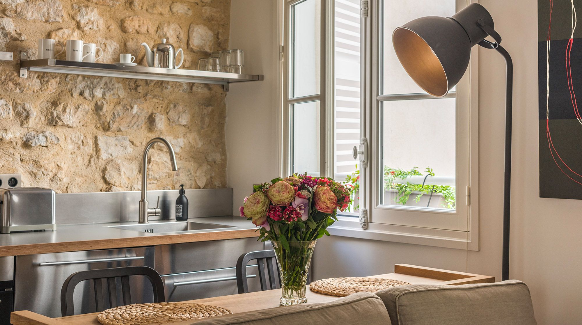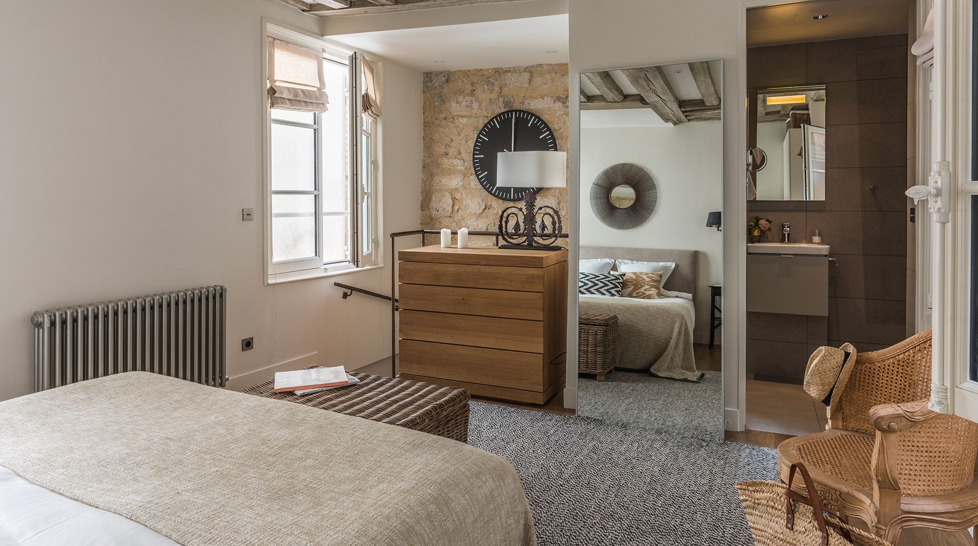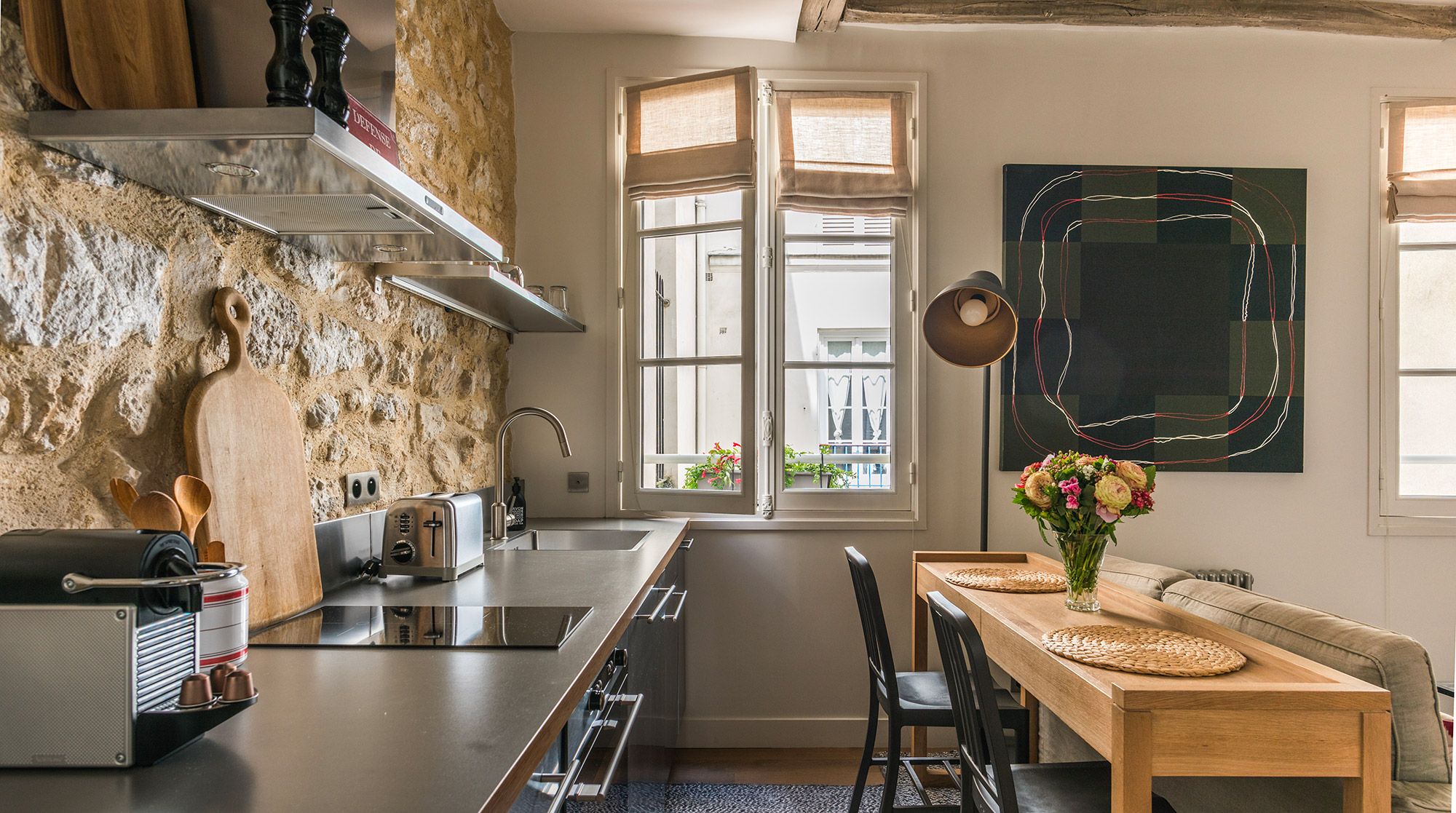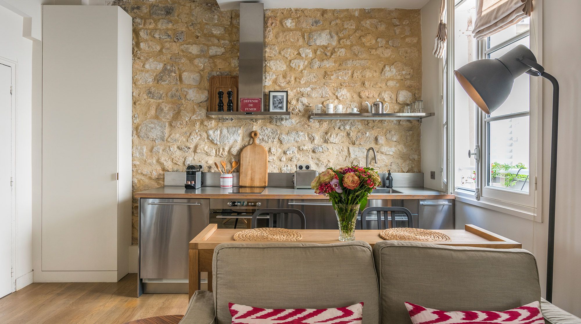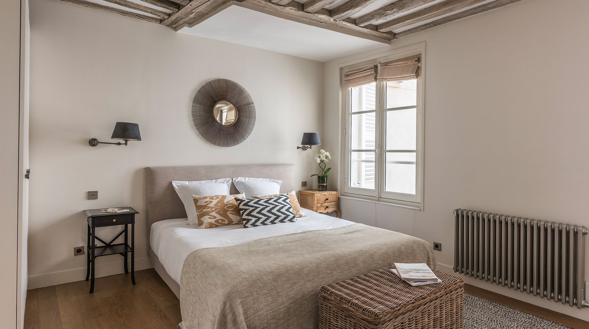 This well-presented apartment is ideal for a couple who wants to enjoy the exciting area of Rue Du Bac - famous for its many galleries, restaurants and cafes. The flat has been fully renovated and the exposed wooden beams and stone walls help bring a character and a bit of heritage to the space. While the area is is buzzing with cafes, the flat remains nonetheless very quiet and would suit a couple that appreciates the high-end galleries and furniture shops that line the streets.