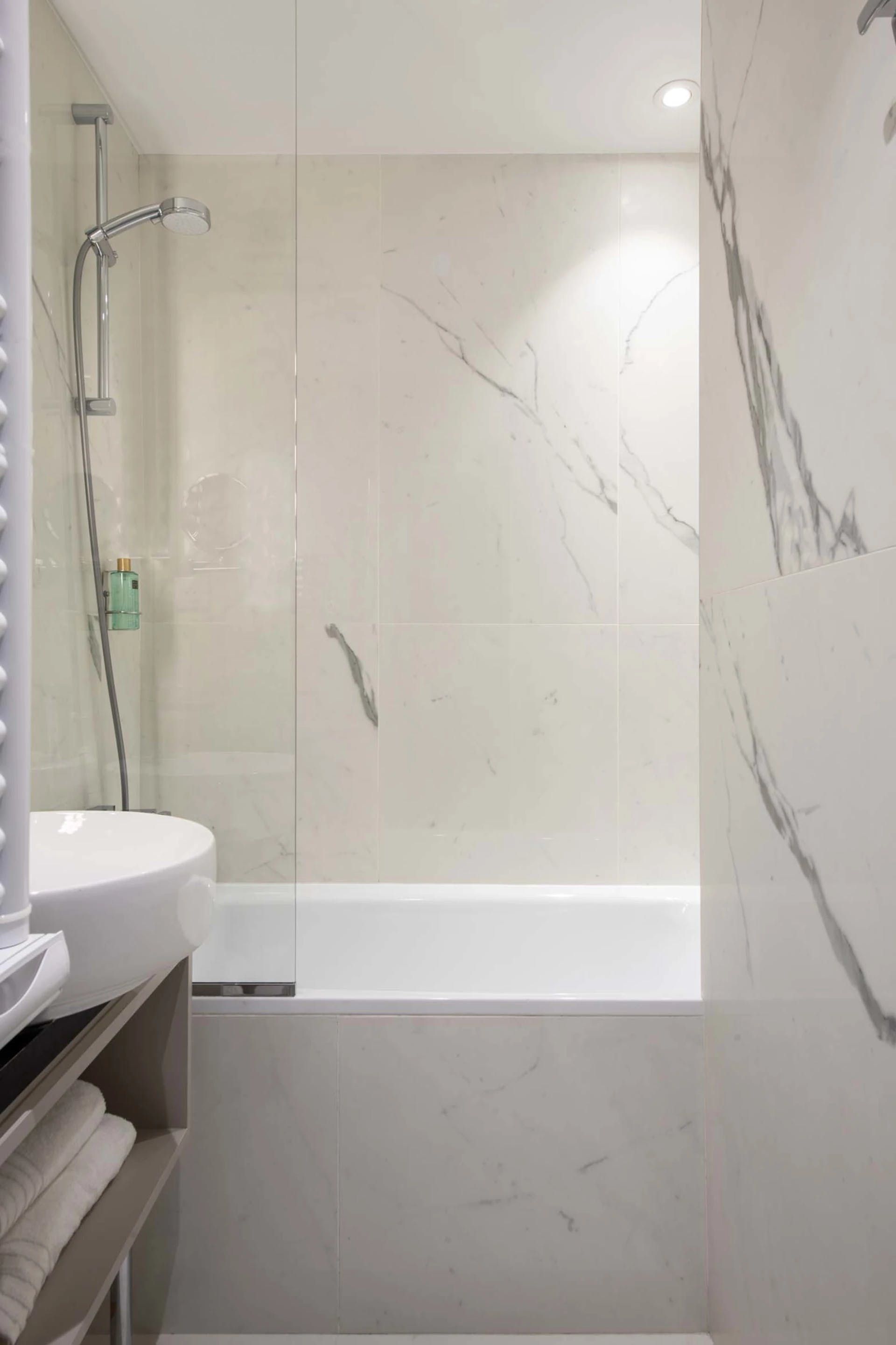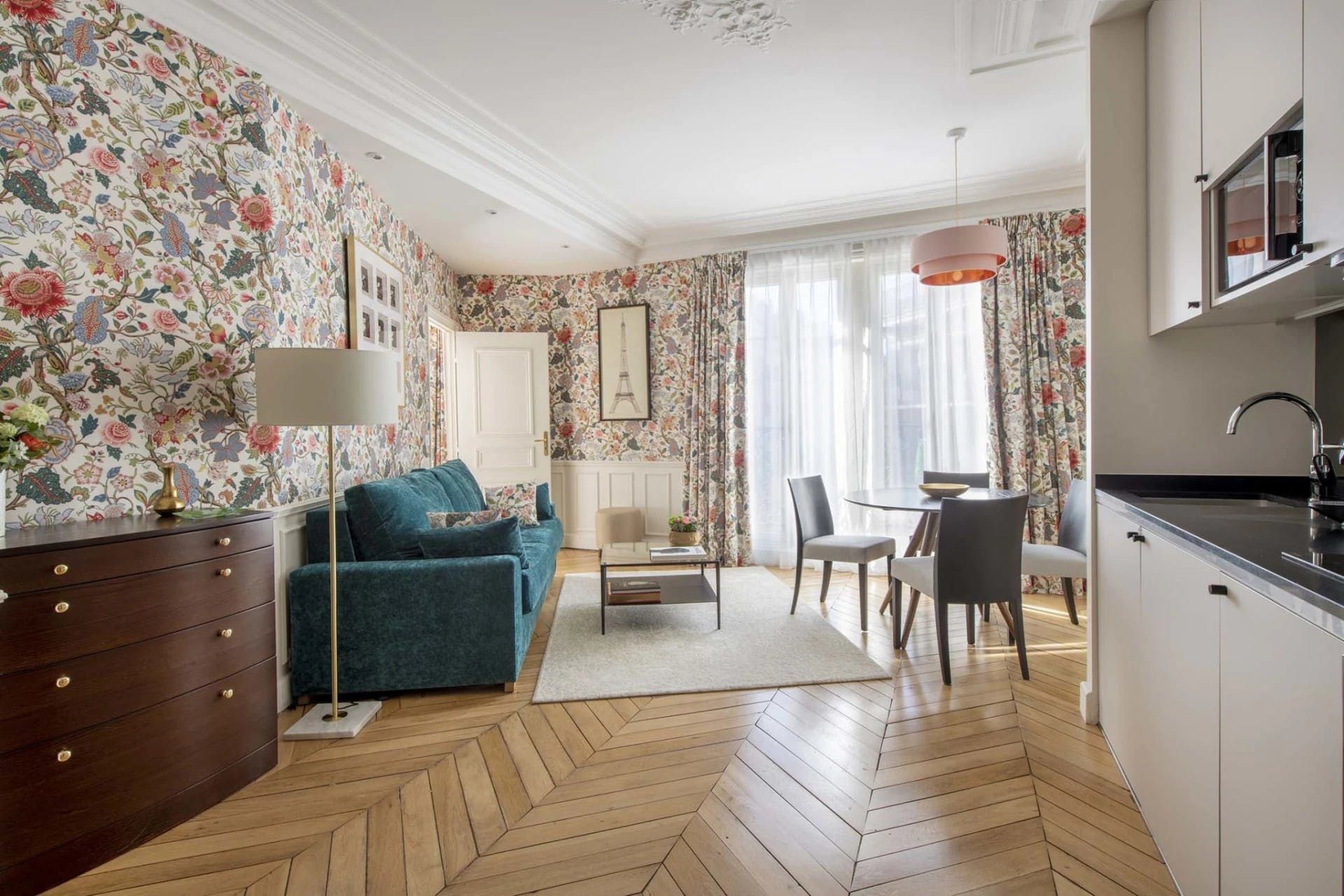 Inside, it's a calming canvas of high ceilings and oak parquet floors adorned with stylish decor. Huge windows beckon sunlight to flood the space while offering scenic views of the street below. After a restful slumber, admire your surroundings from the dining table, tucking into coffee and croissants, before slipping out for a day of adventure.