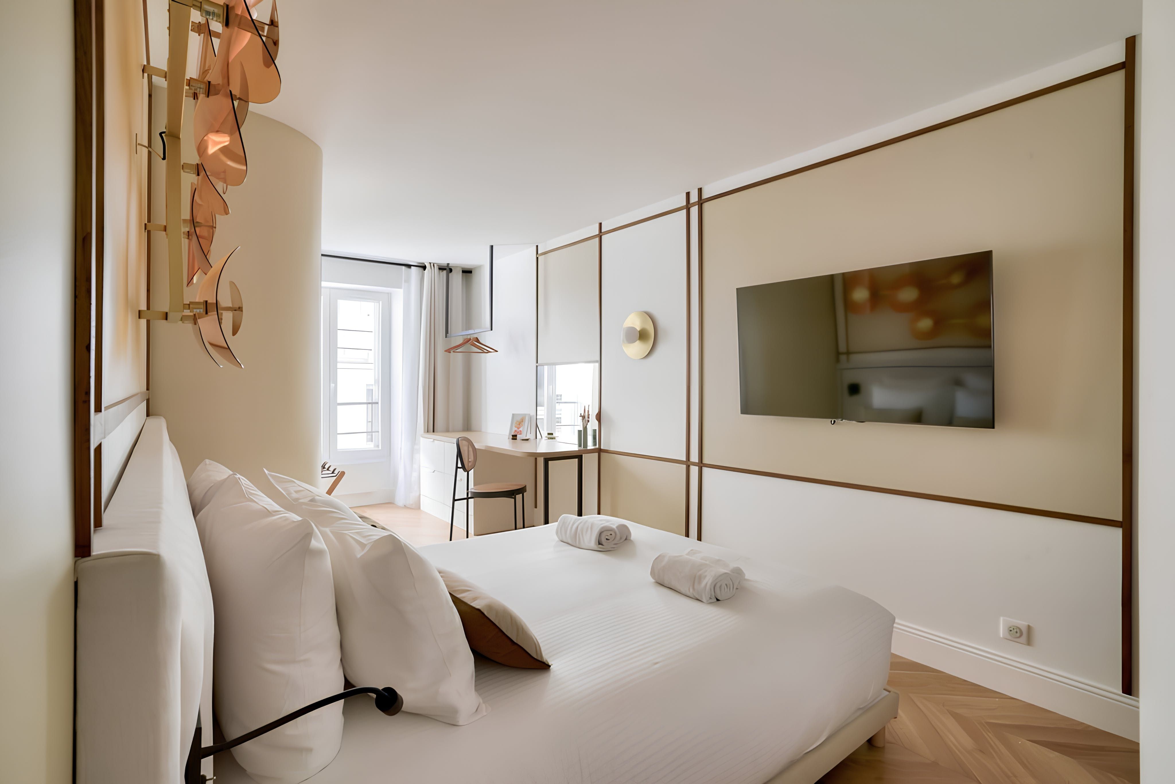 Interiors are as stylish as they come at this light-filled apartment – but we’d expect nothing less for a home perched in the chic Bonne-Nouvelle district. An excellent option for those looking to work in Paris, both bedrooms have a dedicated desk space to keep on top of emails and the Metro is just a three-minute walk away should you need to blaze a trail to another corner of the city for a meeting. Here for the sightseeing? Head for the thriving pedestrian cobbled street of Rue Montorgueil – a food lover’s delight. Or wander over to Le Marais or Le Louvre – both within easy walking distance.