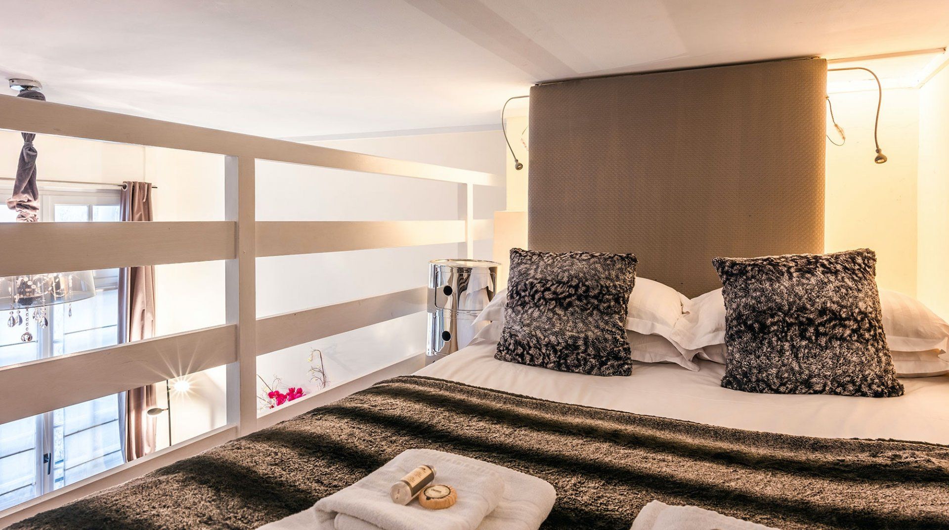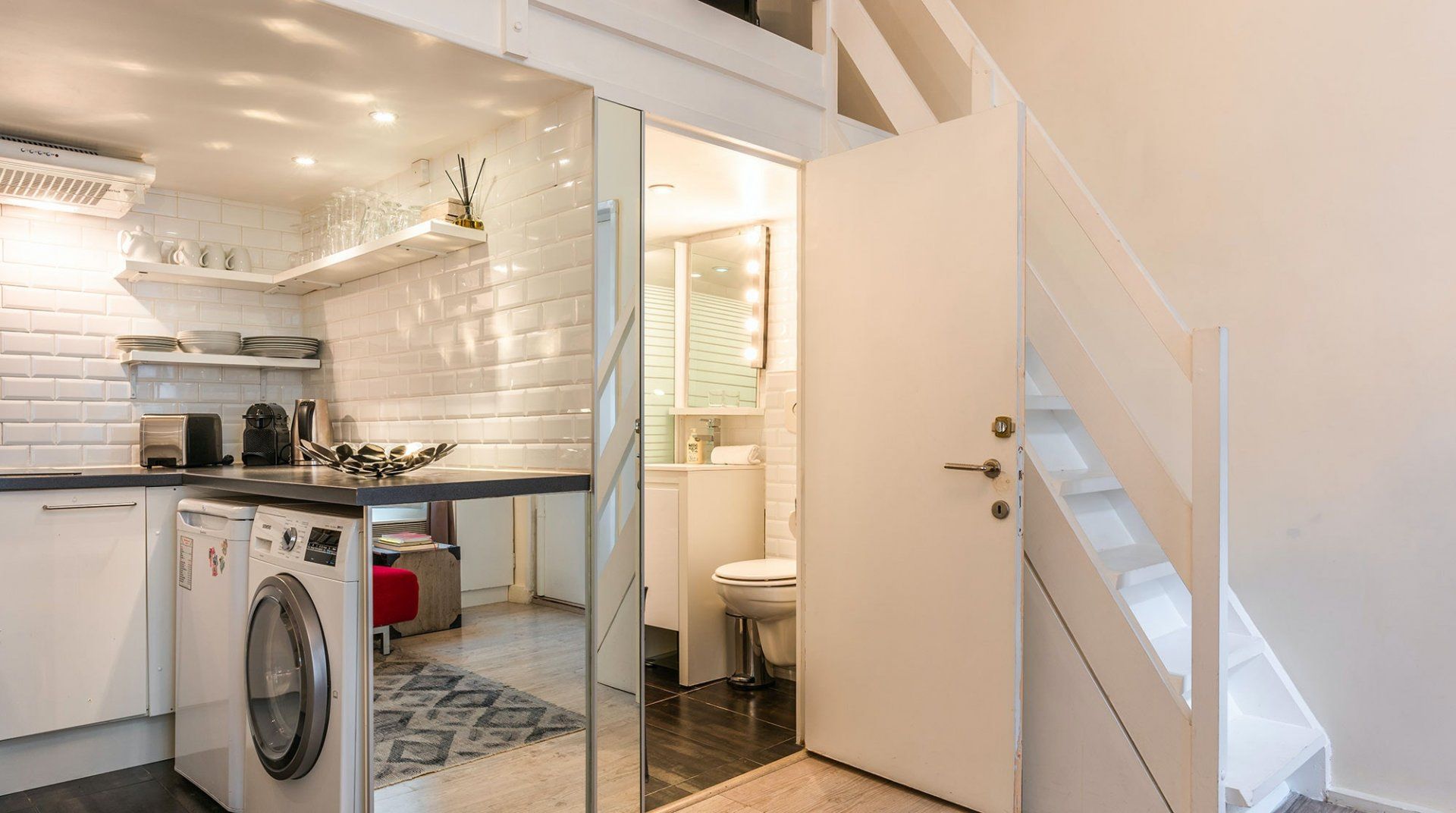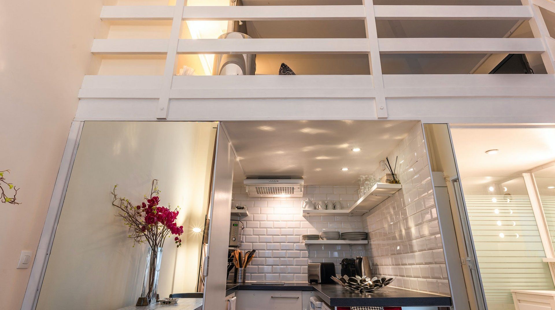 On a quiet street between the modern shopping hub of Les Halles and the colourful lanes of Le Marais, this home offers the best of both worlds. Only three minutes from the Rambuteau metro, this charming studio space feels like the perfect combination of its surrounding neighbourhoods. For the contemporary city feel, you’ve got modern furniture, mirrored sliding doors, and white walls. Then quirkiness comes from bright red pops of colour, houndstooth cushions, a mezzanine bedroom, and a drop-crystal lampshade. As the entire space is illuminated by two huge French windows, it feels airy, bright, and spacious, despite its compact size. Head out to see neighbouring attractions like the Centre Pompidou. You can stroll here in just four minutes to witness the unique, inside-out architecture of this iconic building. For something slightly more antique, take a fifteen-minute wander to the Louvre. Foodies will need to visit the Marché des Enfants Rouges (in addition to all the local restaurants and bars). This is the oldest food market in Paris, just a kilometre from your door, where you can pick up fresh produce or gorge on street food.