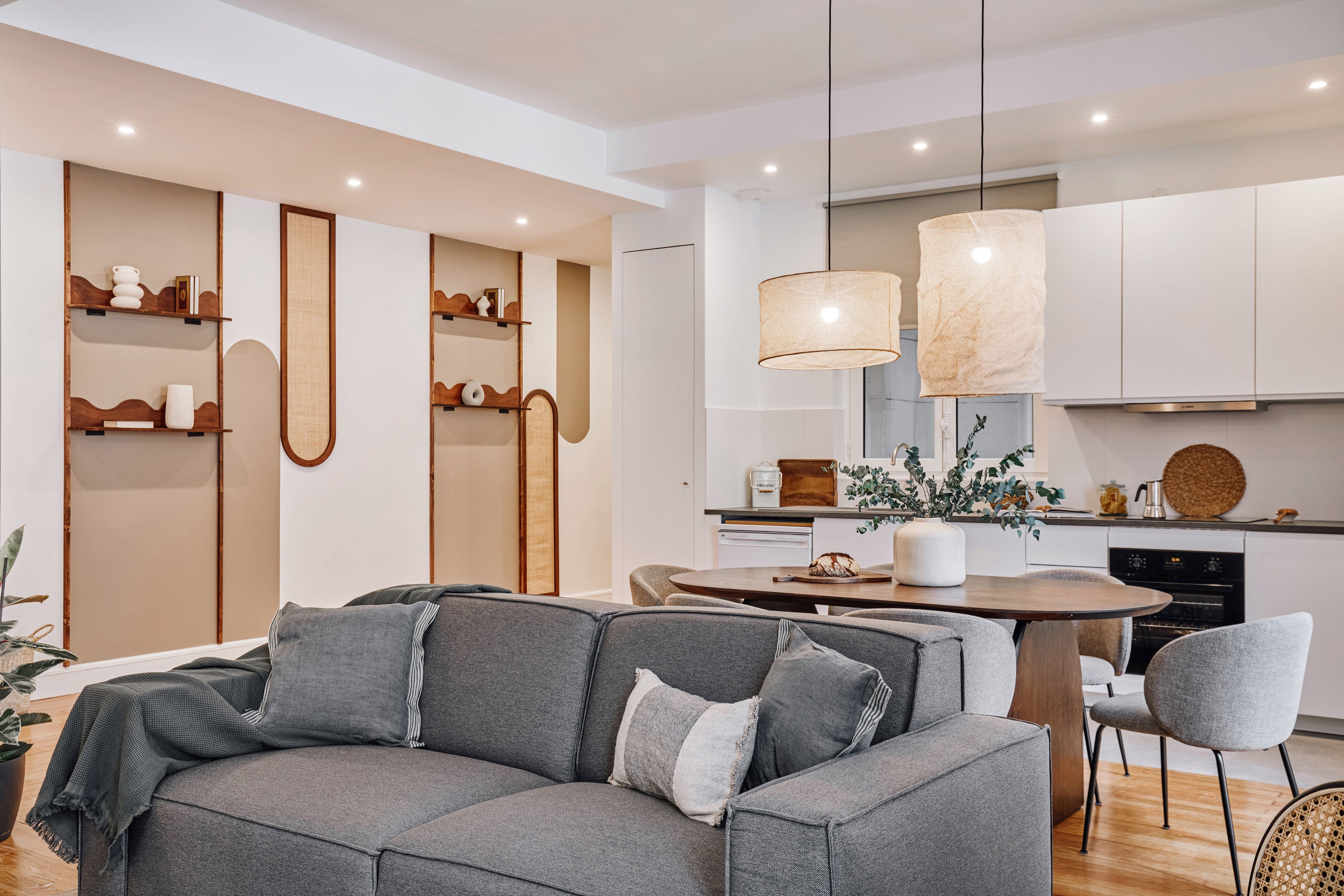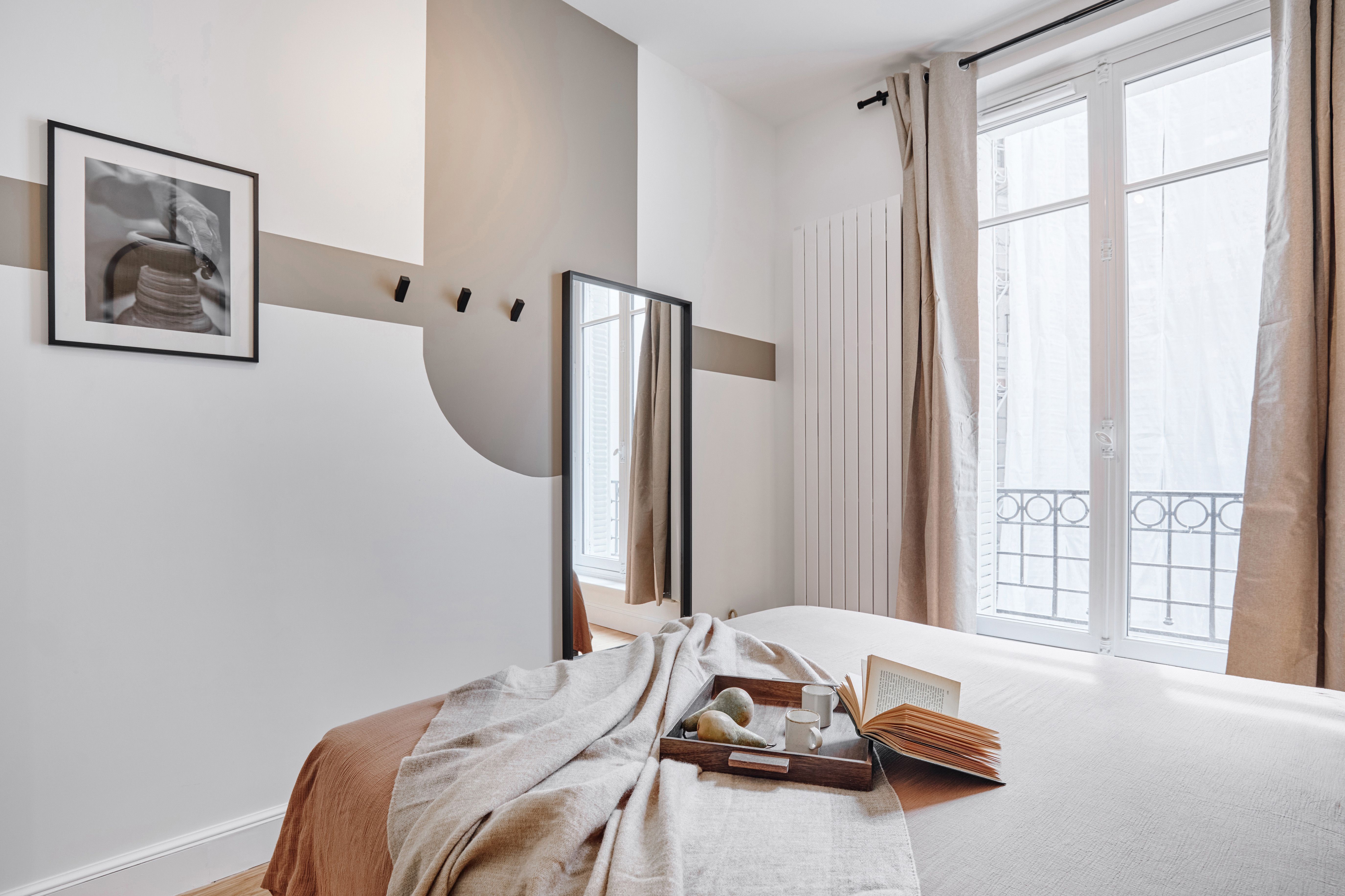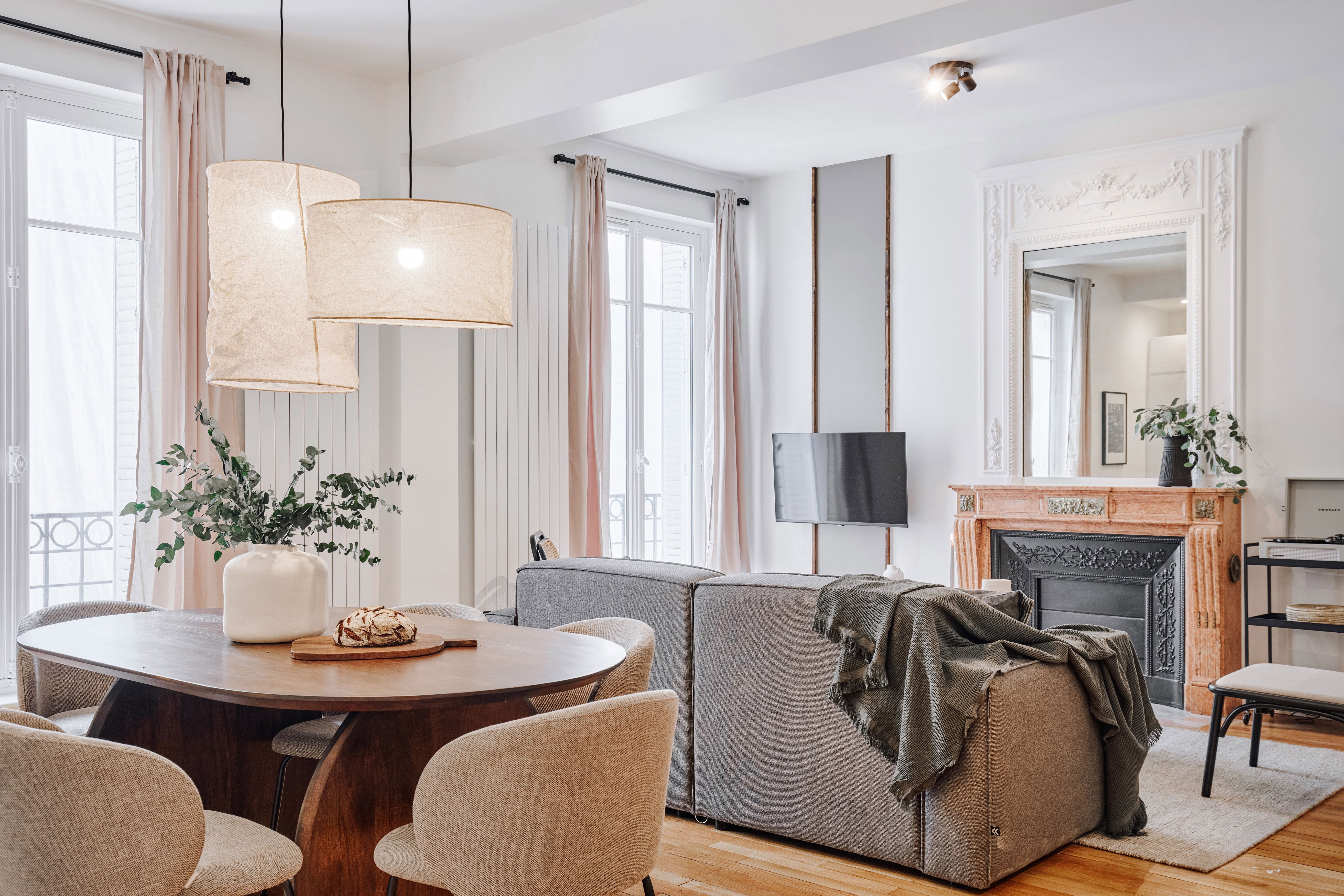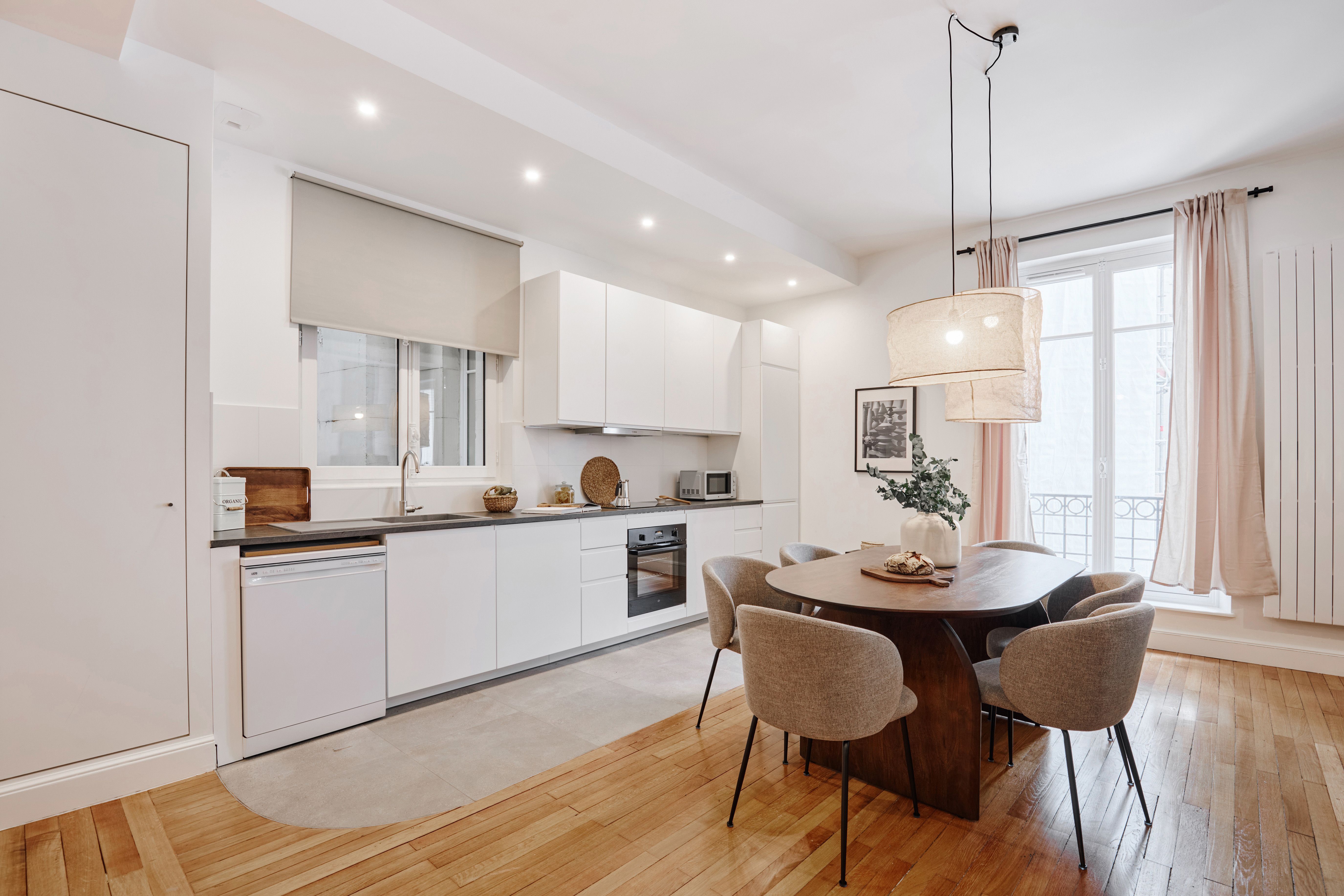 Staying here, sandwiched between the 3rd and the 11th arrondissements, you’ll experience an undeniably cool part of Paris. Le Marais, with its pretty squares like Place des Vosges and its boutiques, is in one direction, and Bastille’s nightlife – including Bataclan – is a short walk the other way. You’ll have restaurants and transport links to make your stay in Paris a breeze, and a comfortable, chic place to call home. The bedrooms are peaceful and attractive, and the open-plan living, dining, and kitchen is an ideal spot for relaxing in between seeing the sights.
