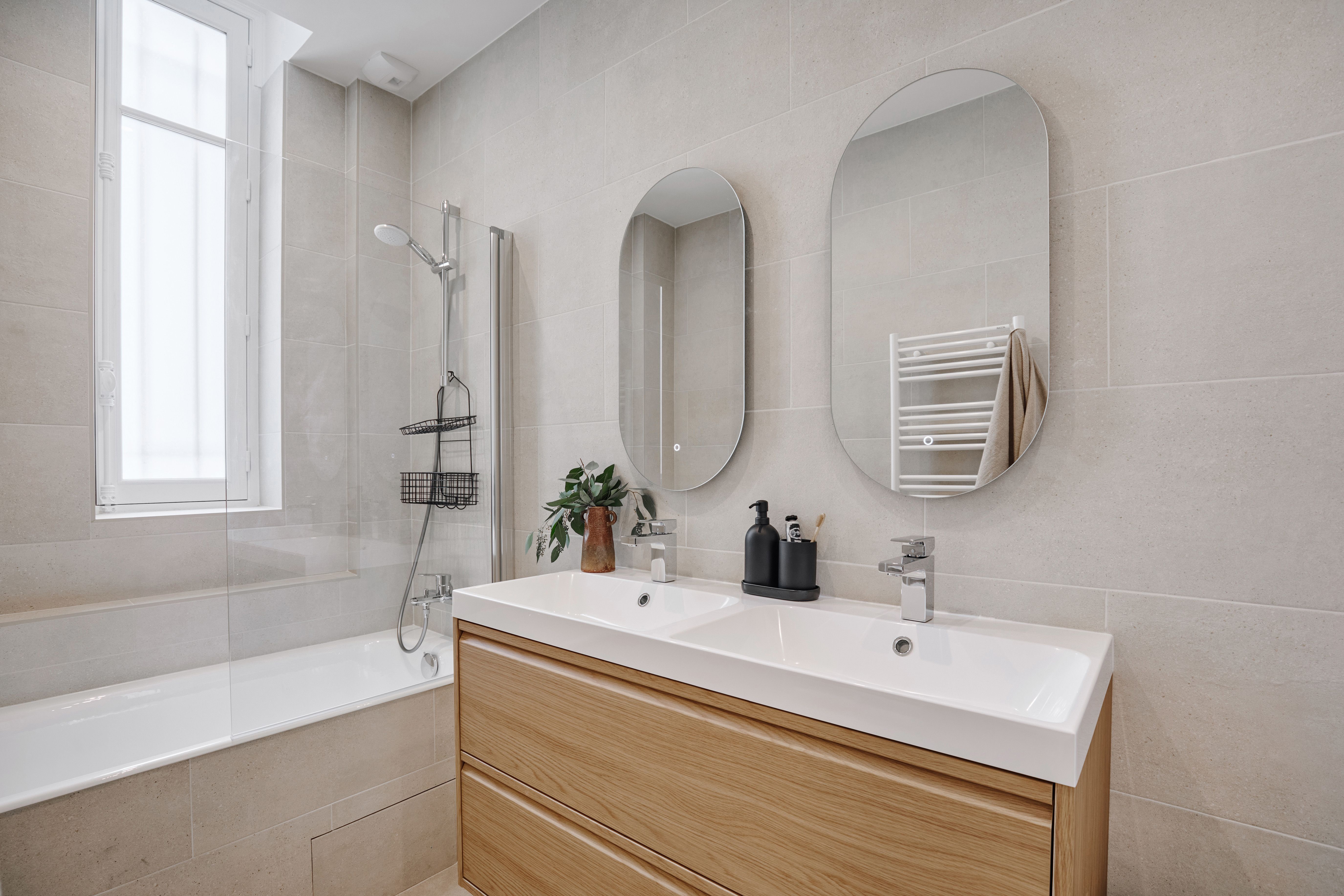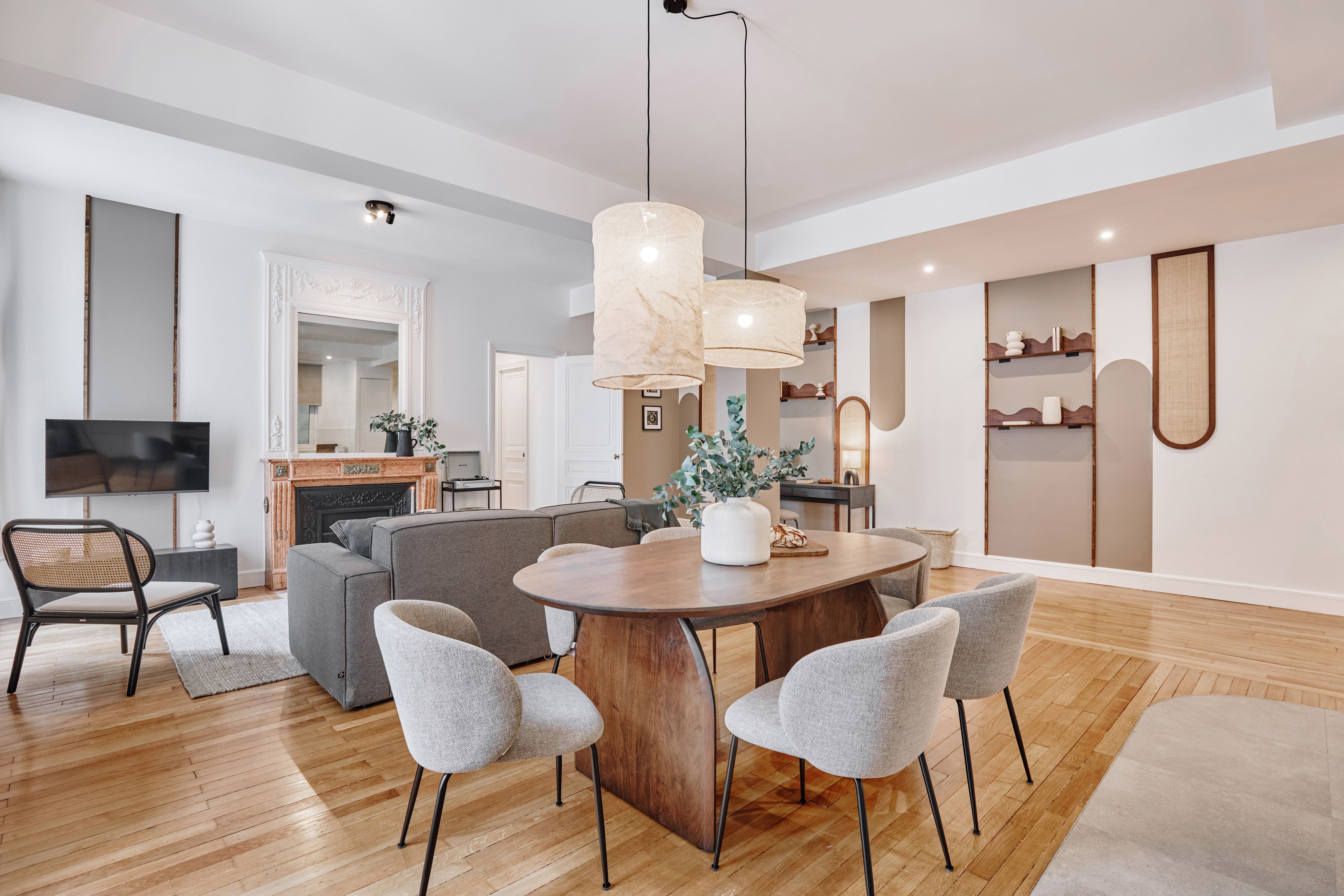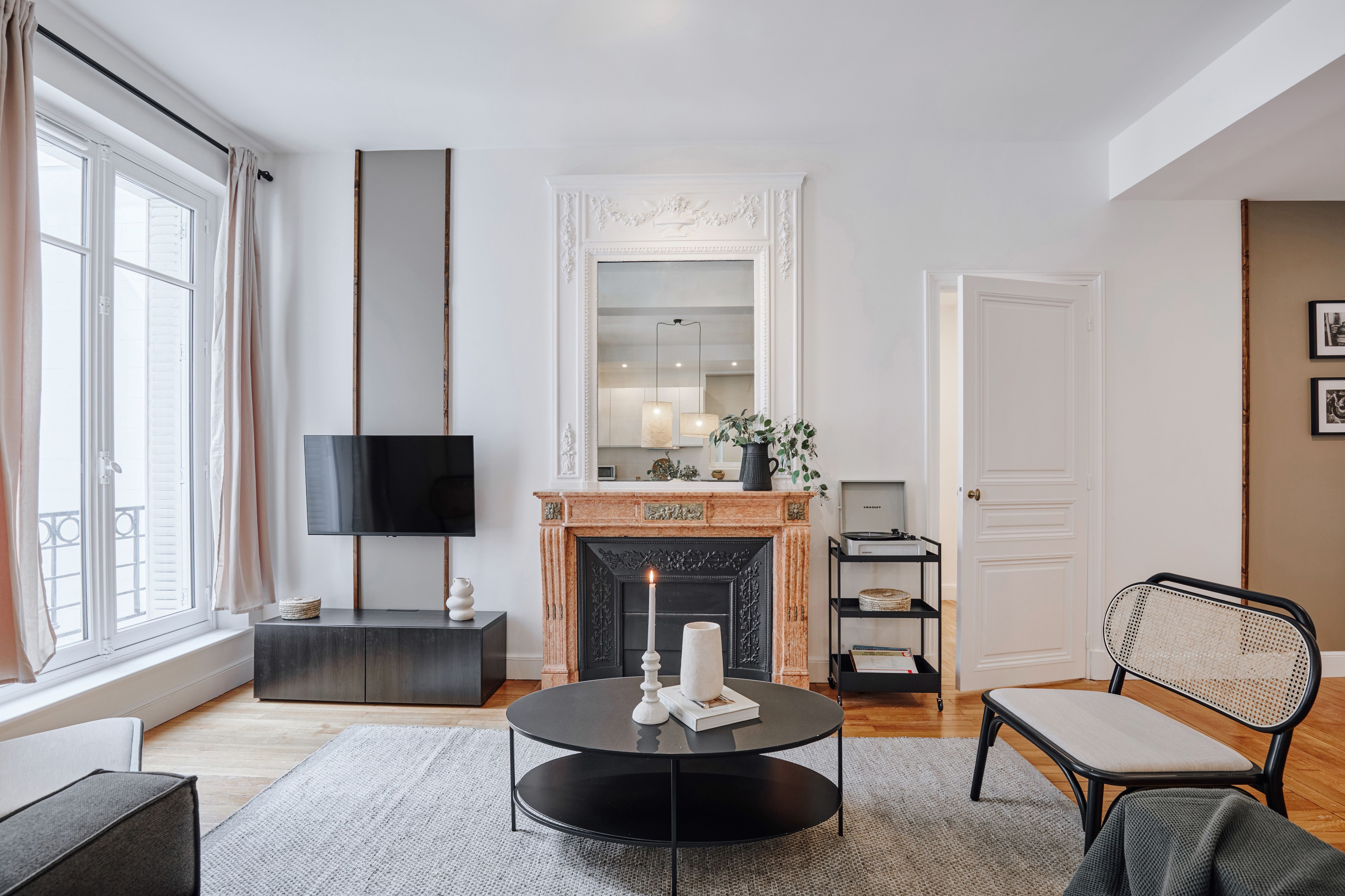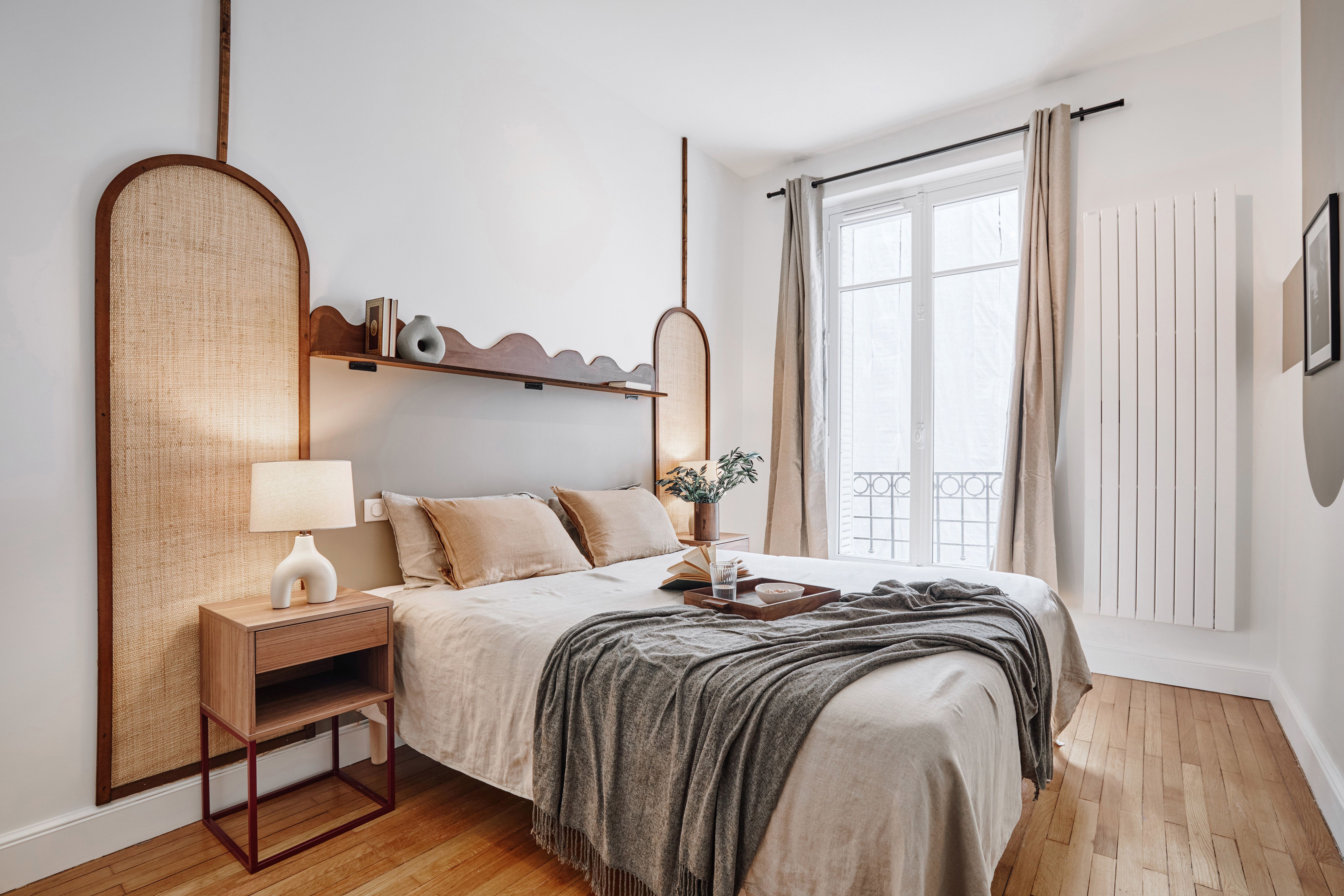 Staying here, sandwiched between the 3rd and the 11th arrondissements, you’ll experience an undeniably cool part of Paris. Le Marais, with its pretty squares like Place des Vosges and its boutiques, is in one direction, and Bastille’s nightlife – including Bataclan – is a short walk the other way. You’ll have restaurants and transport links to make your stay in Paris a breeze, and a comfortable, chic place to call home. The bedrooms are peaceful and attractive, and the open-plan living, dining, and kitchen is an ideal spot for relaxing in between seeing the sights.