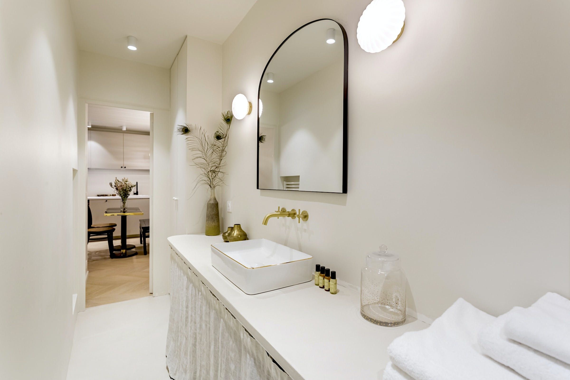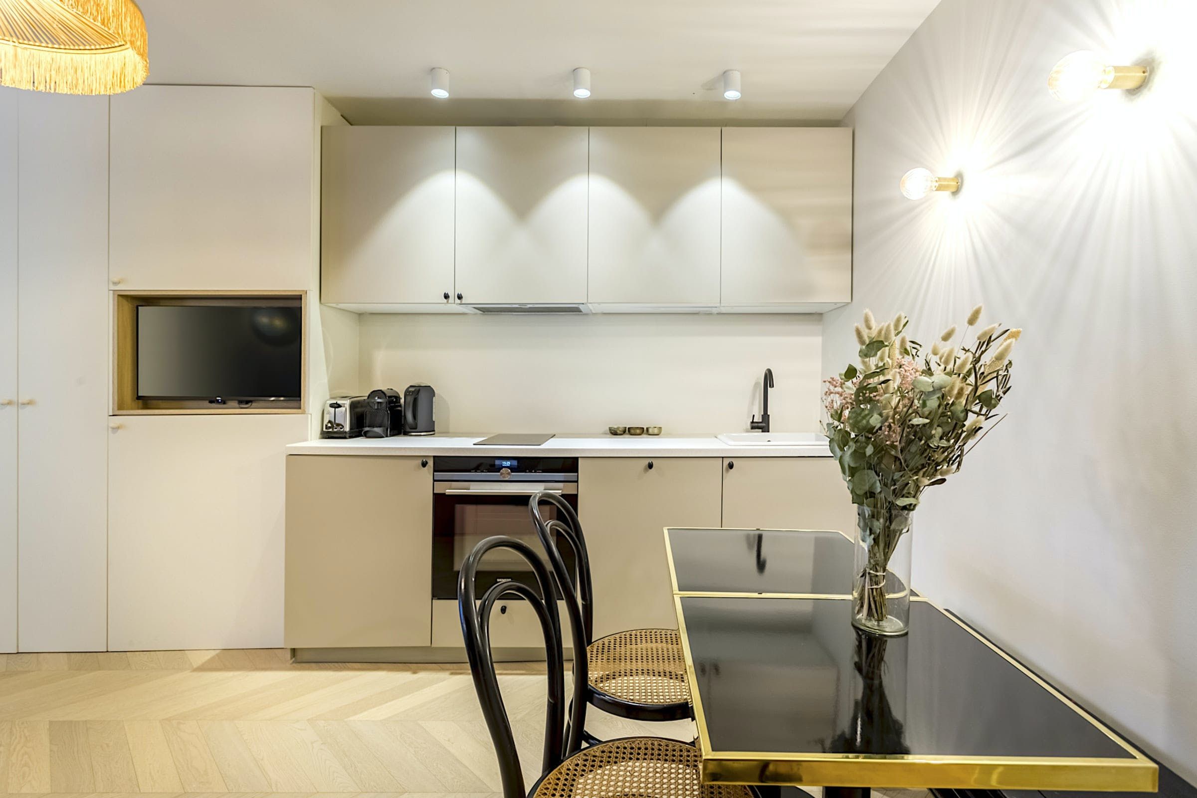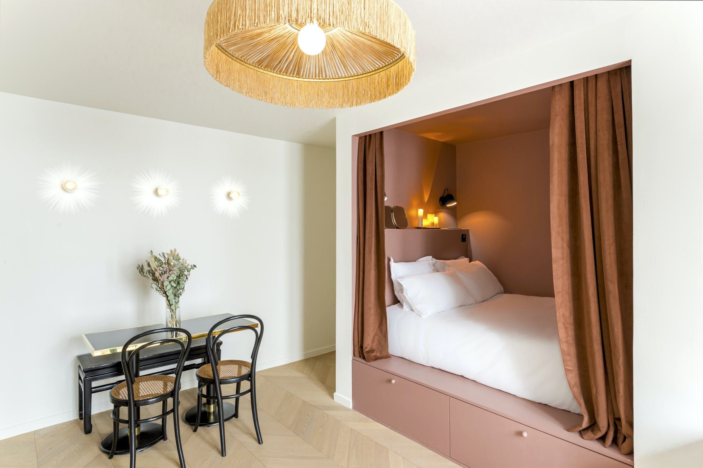 Romantic and refined, this studio apartment is quite the little love nest. It's set in a typical Haussmannian building with a lift – rare in these parts – and has all the contemporary touches you'll need. Although the blush-coloured bedroom alcove is snug (with the bed accessed from one side), we think it's cosy enough for cuddles after a day spent exploring. And speaking of sightseeing, you'll be well-placed for it. Boulevard Montmartre is on your doorstep, with the Louvre, Palais Garnier, and Galeries Lafayette all within walking distance. You can't get more central than that.