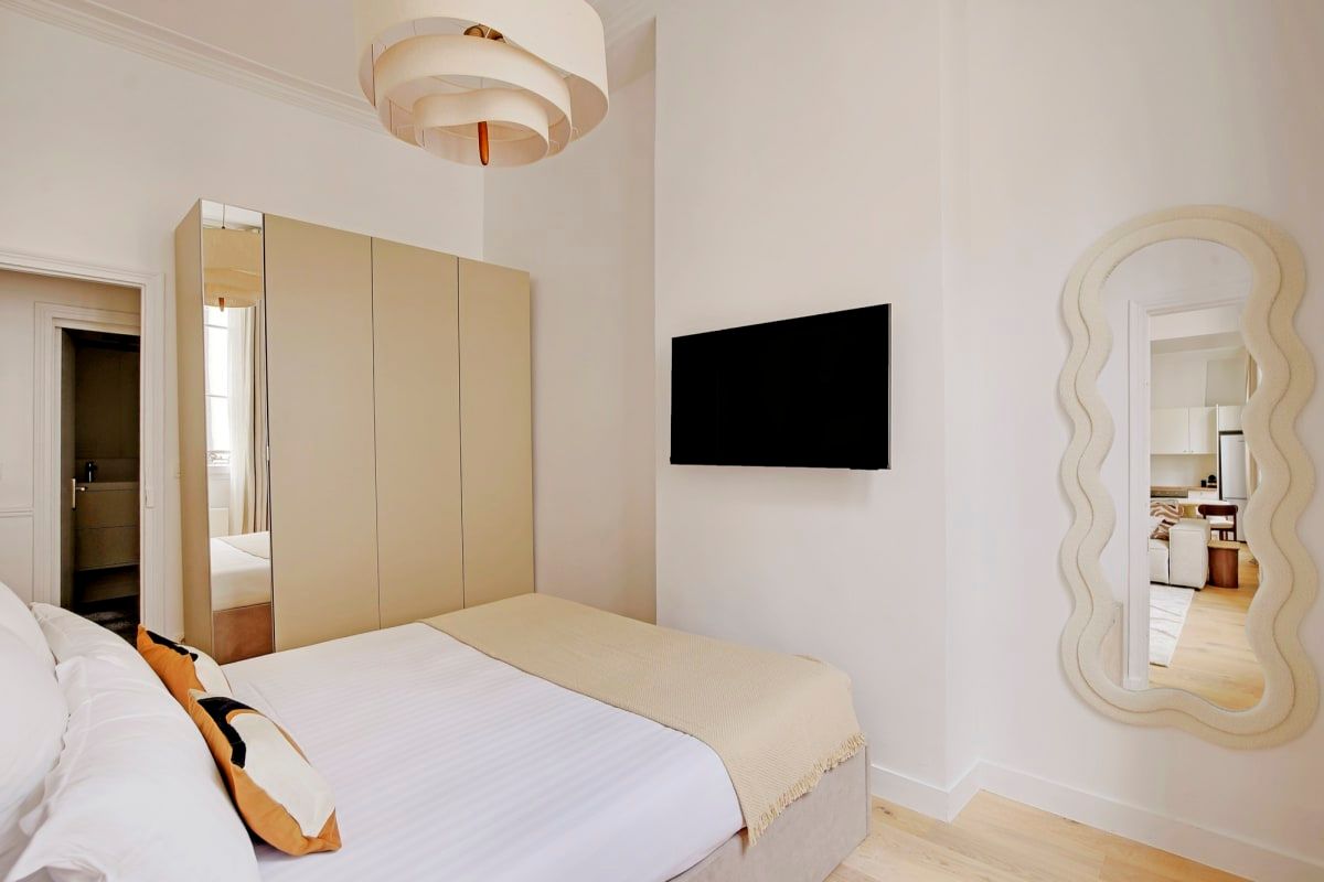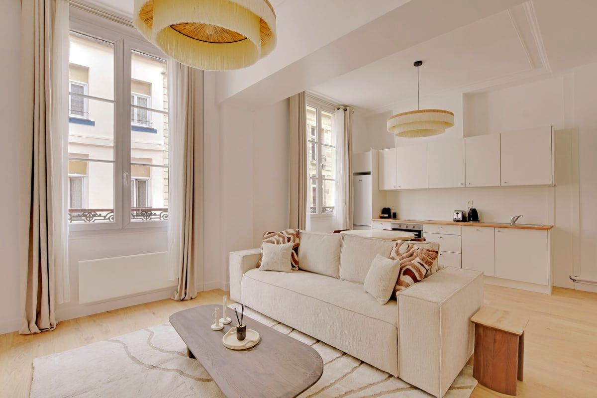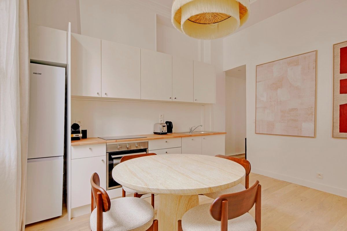 Situated on Rue du Roule, this apartment is just a short walk from the Louvre Museum. Within walking distance, you’ll also find iconic attractions such as Domaine National du Palais-Royal, the Centre Pompidou and Notre-Dame. There are plenty of cafes, restaurants, and shops on your doorstep too. The apartment itself has an open-plan living room, which also sleeps two guests on a comfortable sofa at full occupancy. This home is a great place to stay if you want to be close to many of the City of Light’s cultural treasures.