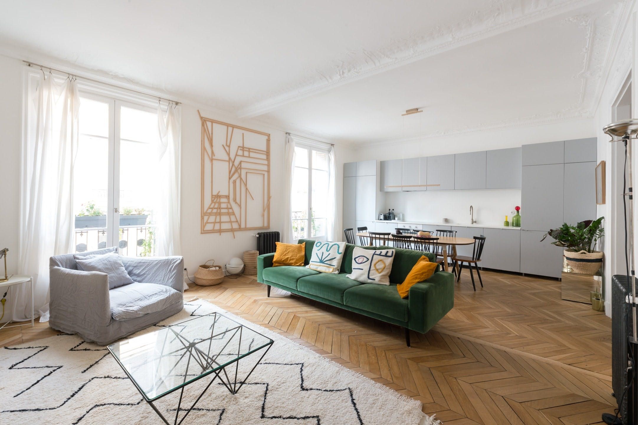 This apartment strikes the perfect balance between classic Parisian charm and contemporary comfort. Located on the second floor without a lift, you’ll be welcomed by a wonderful sense of warmth and artistic flare. It’s also family-friendly with a children’s room and plenty of socialising space across the open-plan living room. It’s just a short walk to Canal Saint-Martin and the nearest amenities.