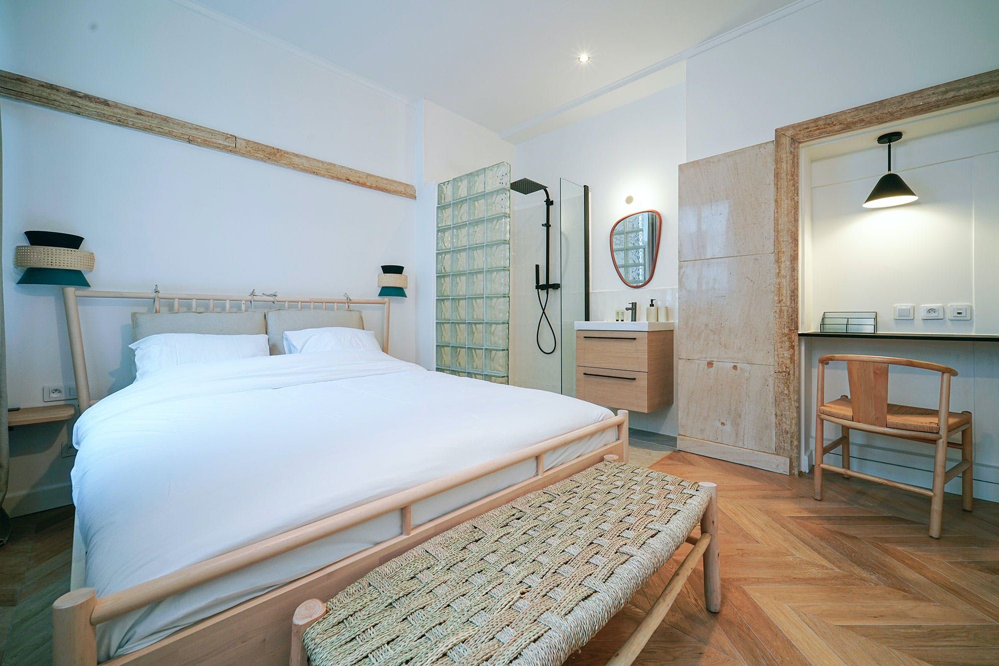 This traditional Parisian building has a glamorous history – it was once owned by a diamond dealer before being renovated into the chic collection of apartments it is today. Take the elevator up to this first-floor home, and you'll find a charming space that's dripping with expensive fabrics and elegant design details. Open up a bottle of pinot noir and stretch out on the pink velvet sofa to leaf through the coffee table books, or take your relaxation to another level with a session in the private sauna – we guarantee your stresses will melt away in minutes. You don't have to go far from your front door to experience a true taste of Paris – the surrounding streets of the vibrant Grands Boulevards neighbourhood are packed with cosy coffee spots and cute bistros. And, when it comes to seeing the sights, you're in an excellent position to explore the city on foot – a twenty-minute walk south will bring you to the Louvre, and you can head north to arrive at the Sacré-Cœur in the same amount of time.