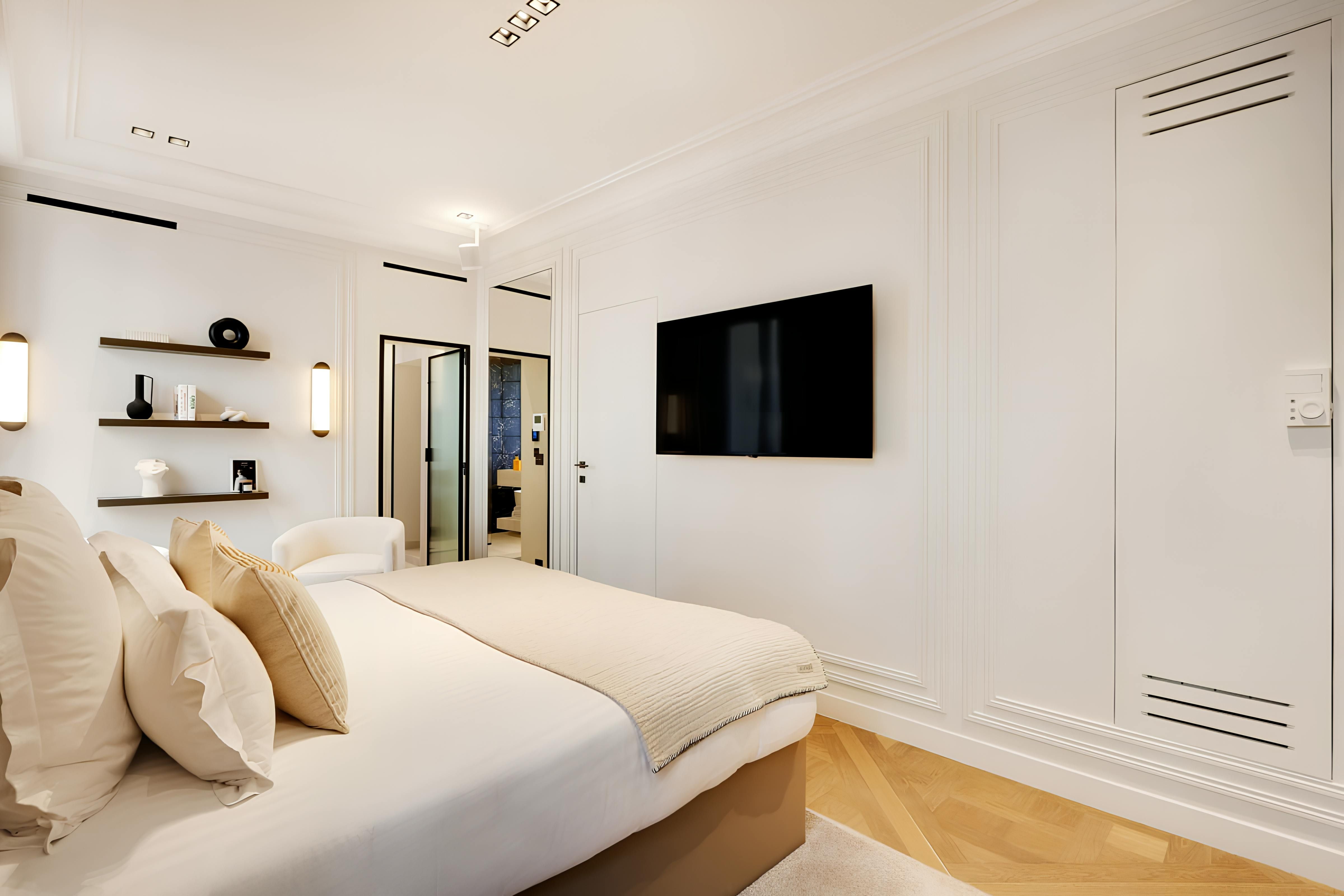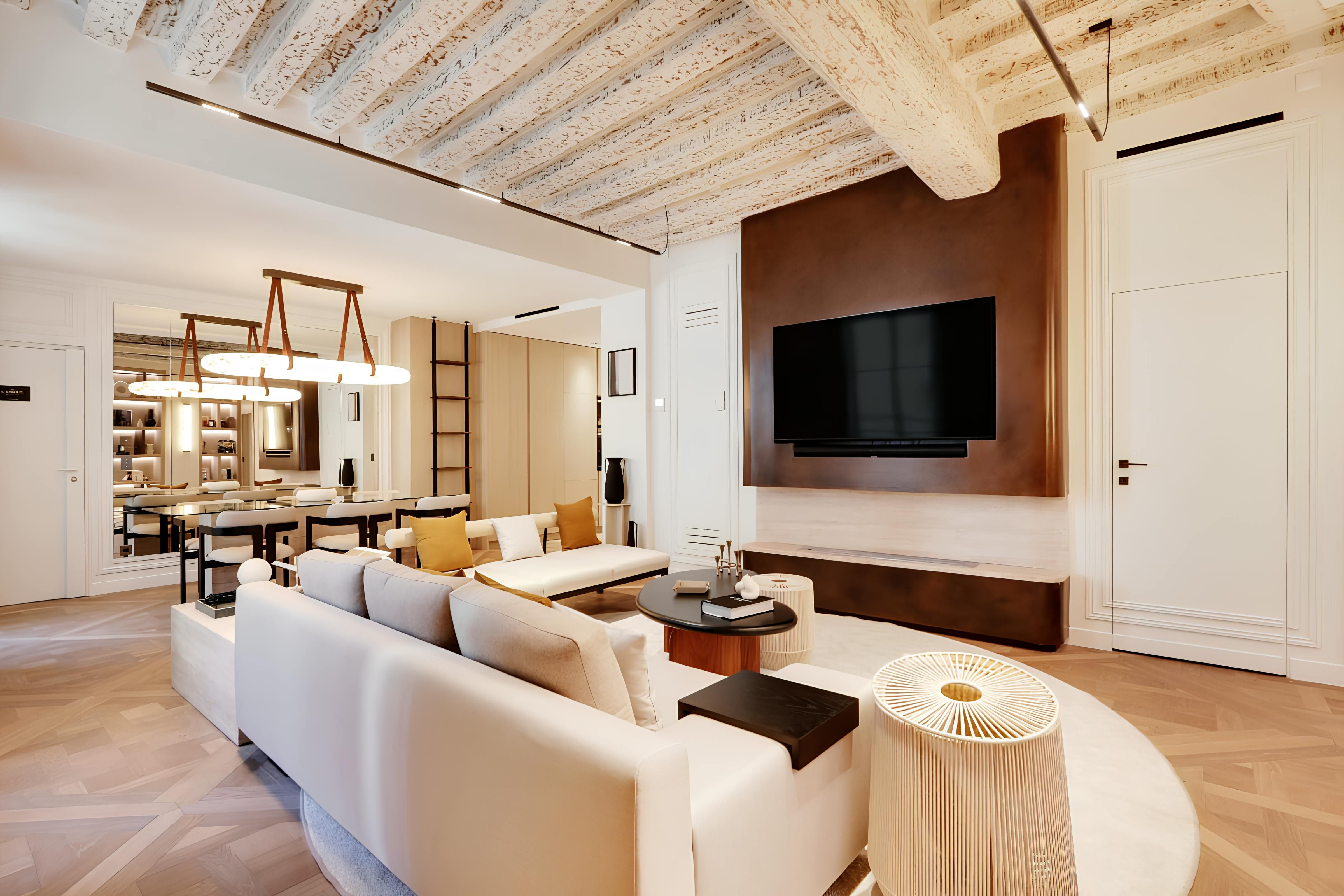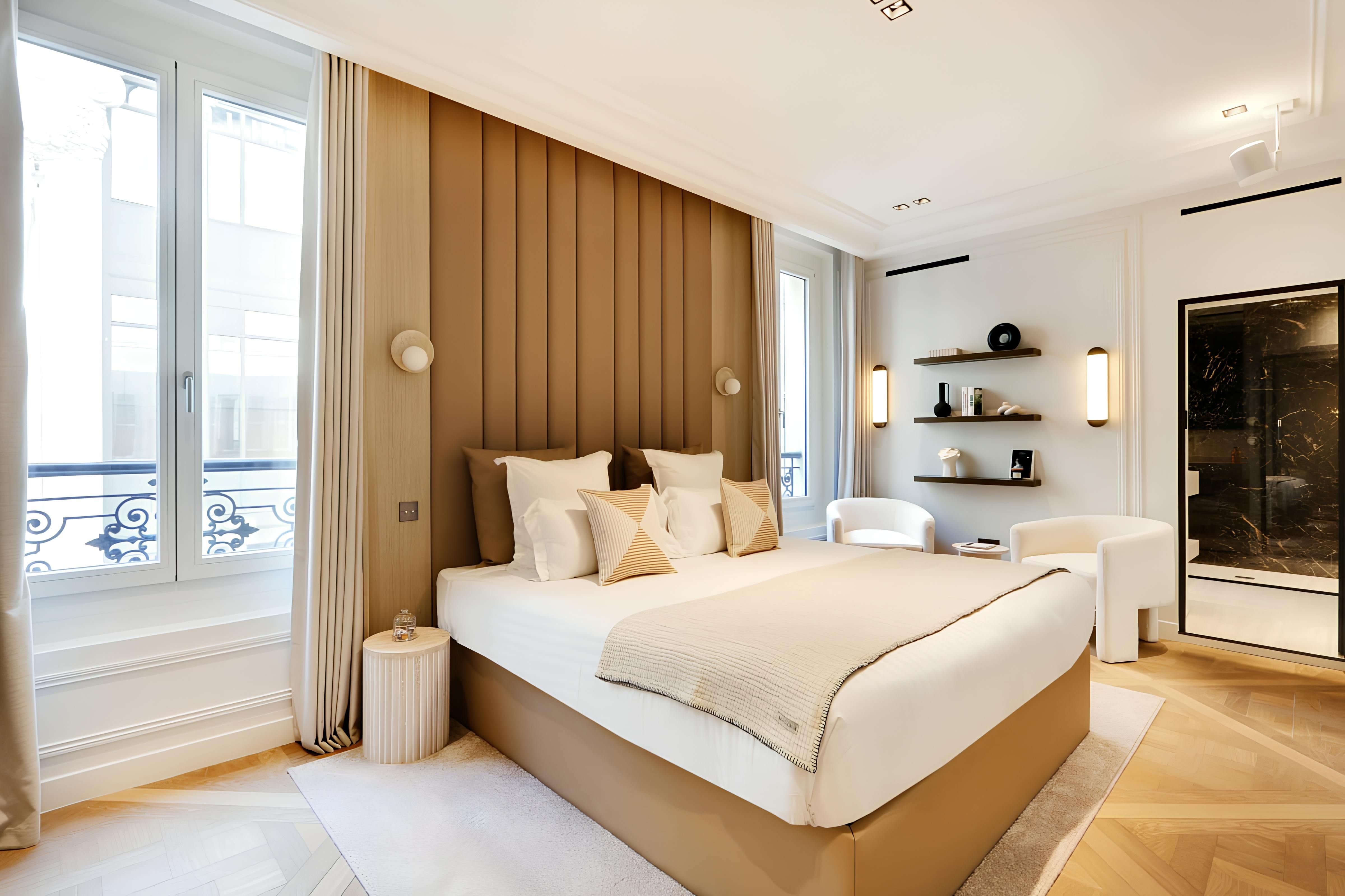 The iconic Louvre Museum and the Palais-Royal are both within walking distance of this home. Other nearby landmarks include the Hôtel de Ville, while the River Seine can also be reached on foot. Located in a quiet courtyard, this architect-designed apartment has a stylish living space with characterful beams. And we have to say we love the two bathrooms, especially the one with the freestanding bath. This abode is perfect for a family or group of friends looking for a luxurious and comfortable stay in Paris.