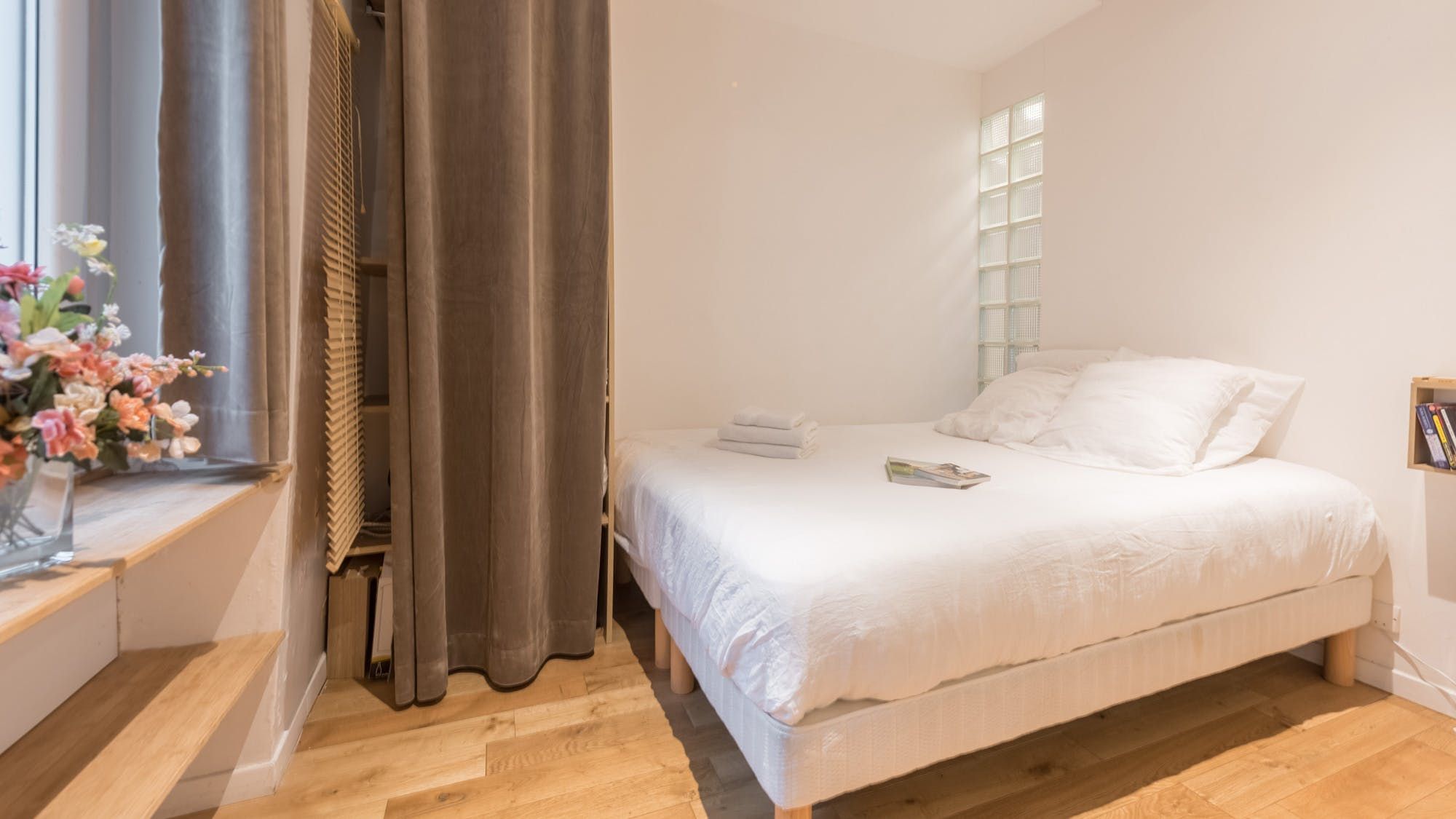Rustic charm meets city chic in this peaceful apartment located in Paris’ Grands Boulevards district. Tucked away on a quiet street, you’ll feel perfectly Parisian in this pretty, petite home that’s full of understated elegance with its beamed ceilings, wood floors and contemporary furnishings. Whether you’re feasting on fresh croissants and coffee at the breakfast bar or kicking back on the sofa with a glass of French wine and a book from the shelves, you’ll feel relaxed and at ease in this calming, neutral-toned space. Factor in the comfortable inner courtyard-facing bedroom and the luxurious rainfall shower in the bathroom and you’ve got everything you need for a blissful stay. Outside of your home, you’re just a twenty-minute walk from the Louvre, the Canal Saint-Martin and the Marais district with its cosy cafes, vintage shops and Centre Pompidou, while those with a penchant for sweet treats will love the Musée du Chocolat, a two-minute stroll from your door. With plenty of organic bistros, speciality food stores, boutiques and trendy bars in your neighbourhood too, there's no end to the adventures in store.