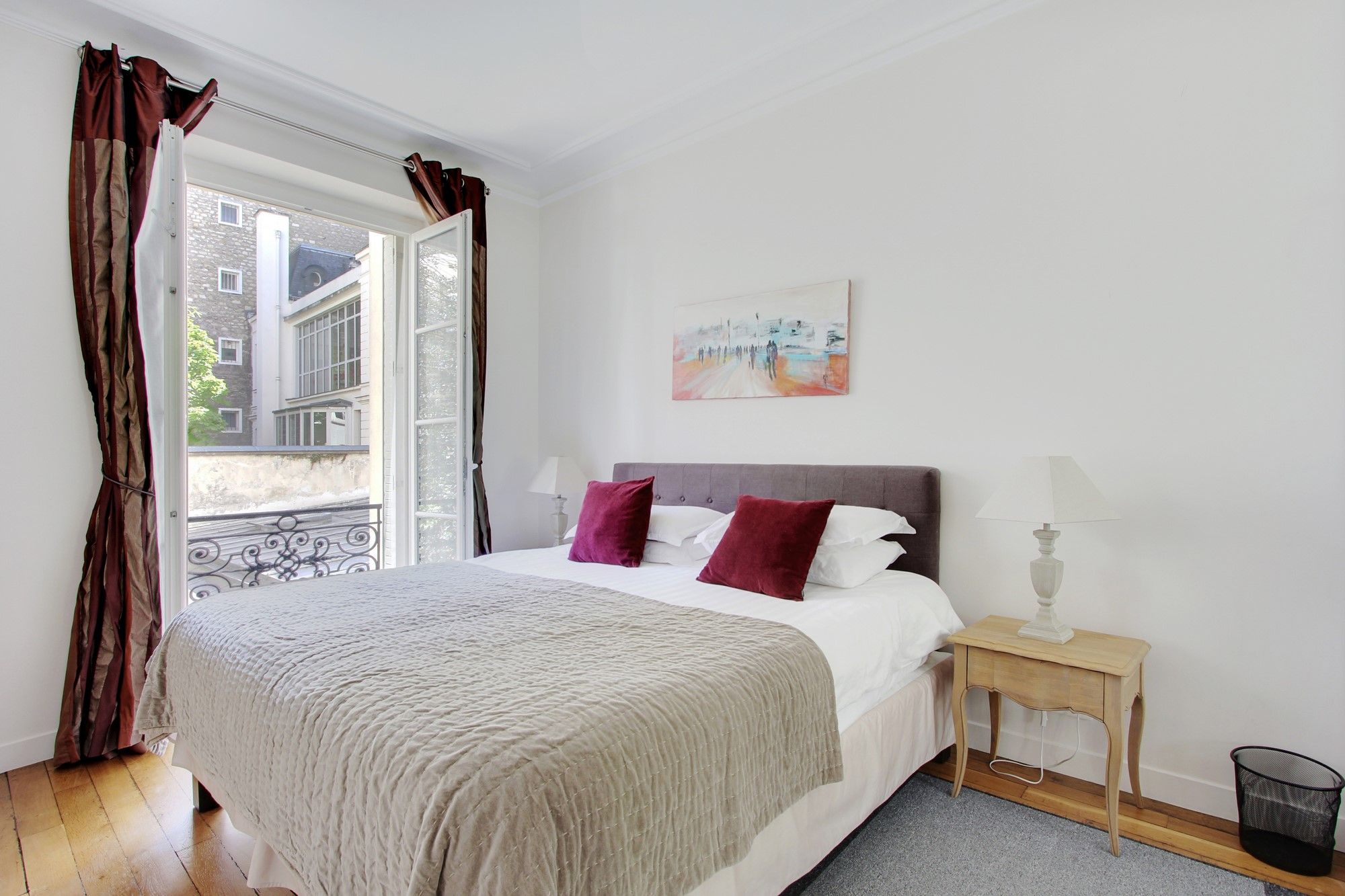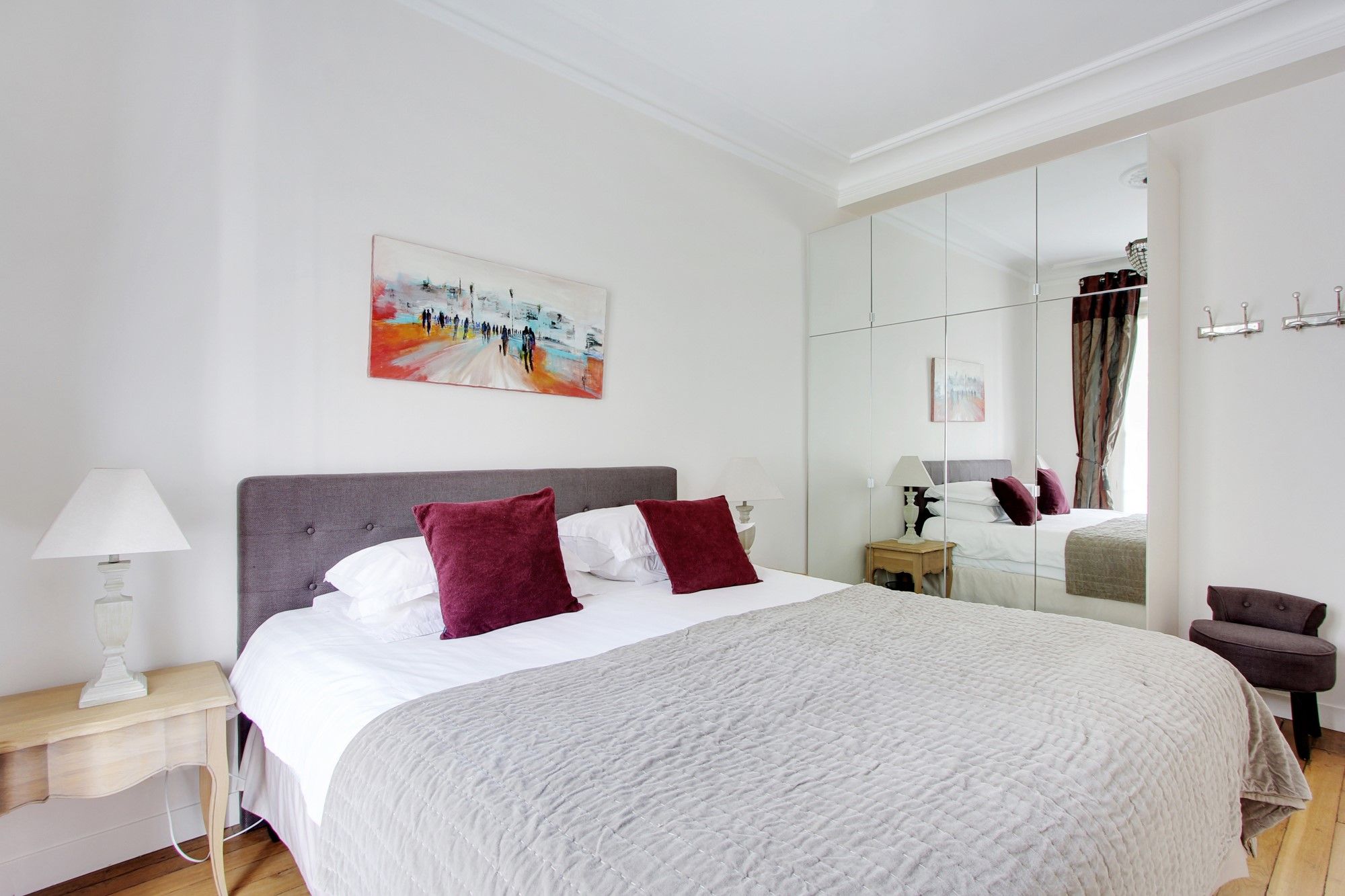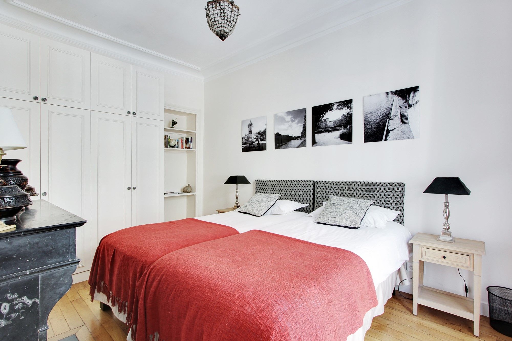Just a fifteen-minute walk from the Eiffel Tower, this is a plush Paris pad that captures the debonair atmosphere of its 7th arrondissement setting. The main room exudes elegance with its crystal chandelier, herringbone wood floors, swish armchairs and the pair of French doors that lead out to Juliet balconies. Make yourself a coffee in the kitchenette, then people-watch as you survey your neighbourhood or kick back on the sofa while you plan your day of activities. You’re in the city’s cultural heart here with Les Invalides just an eight-minute walk away, the Musée Rodin and Musée d’Orsay walkable in less than twenty and Rue Cler right on your doorstep, famous for its vibrant cafes, restaurants and gourmet shops. After a day of exploring, come back home for a glass of wine on the sofa and a meal around your dining table. Then retreat to your bedrooms – where you'll find two more Juliet balconies – to wish the city a ‘bonne nuit' before settling into a restful night’s sleep.