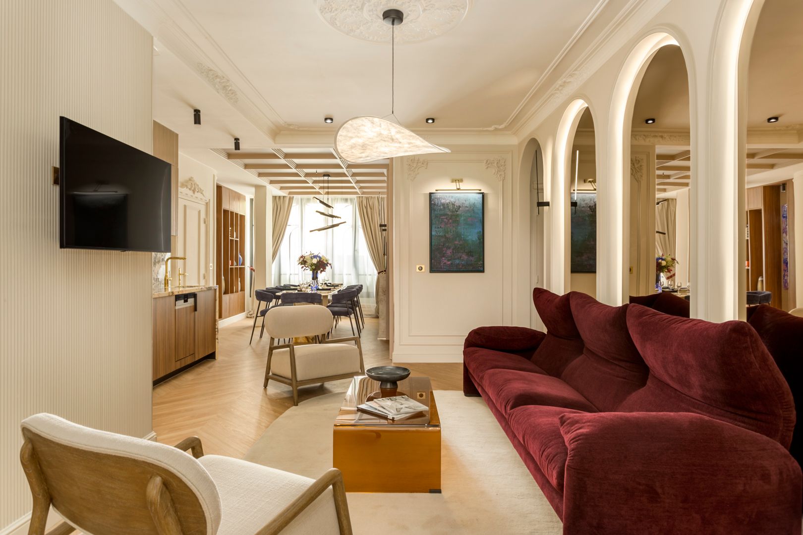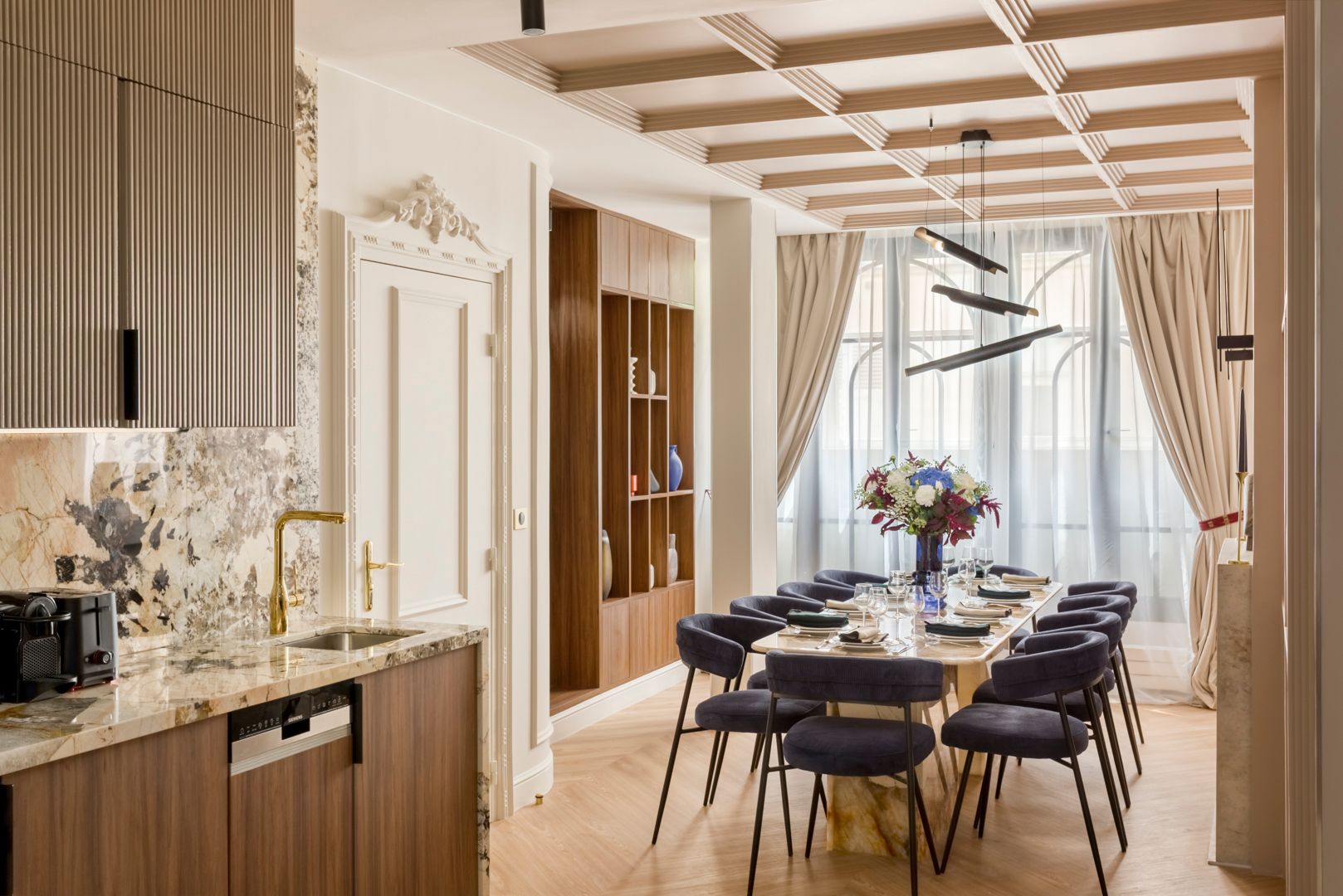 We think this apartment is the pinnacle of chic. It has all you need for a comfortable stay with its elegant living area, compact but sleek kitchenette, and stylish bedrooms (two of which are en-suite). Sure, it's a bit snug for all nine people, but that's a small price to pay, given the location. You're in the heart of Paris here, an easy fifteen-minute stroll from the Eiffel Tower and even closer to the Hôtel des Invalides. Exploring on foot couldn't be easier, especially with a handful of metro and train stations close by offering quick connections to the rest of the city.