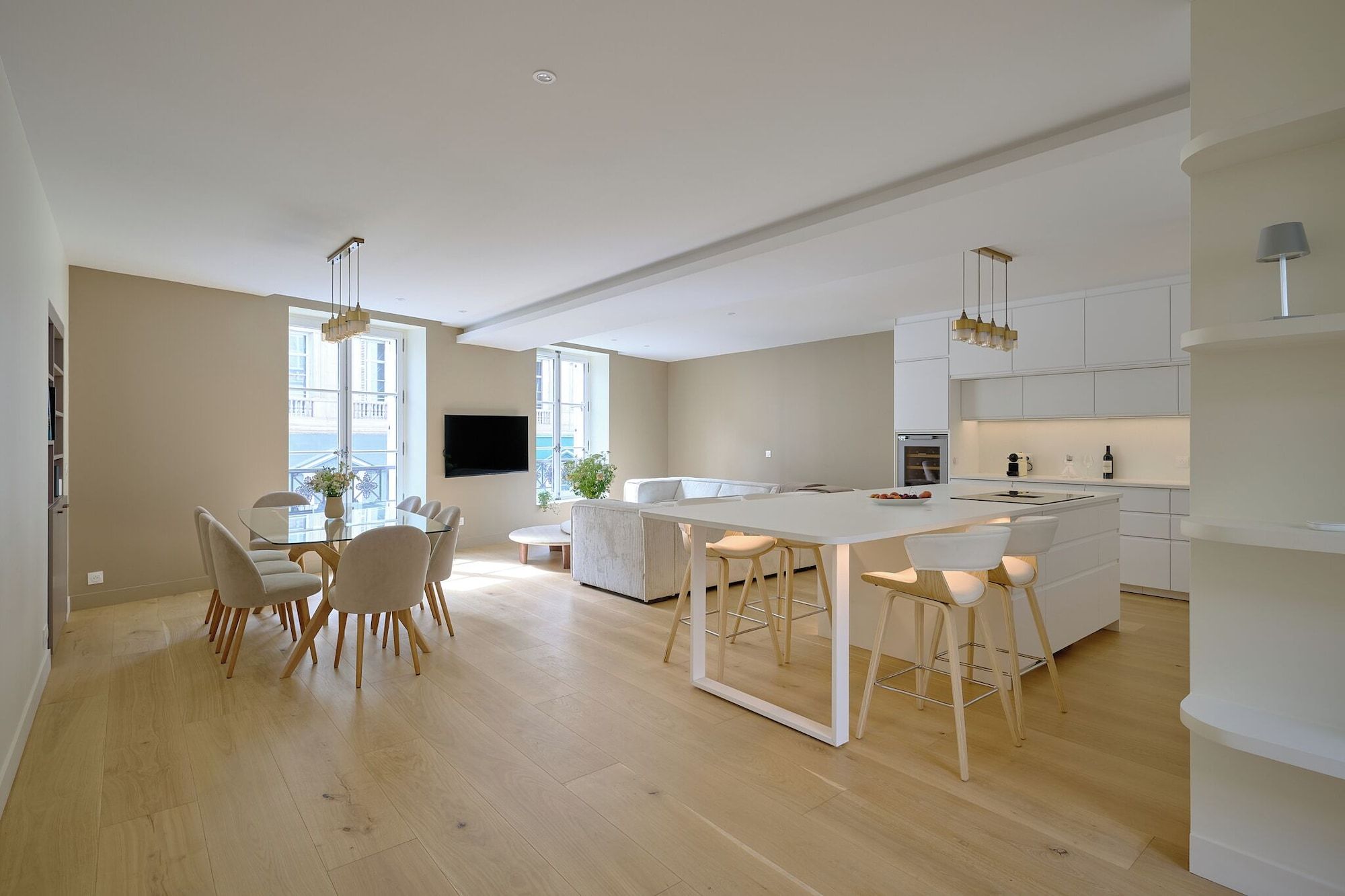 You'll find this light-filled apartment in the buzzy Latin Quarter, a three-minute stroll from the Jardin du Luxembourg. In terms of location, it's hard to beat – there are cafes, restaurants and shops aplenty here, landmarks within walking distance, and metro stations nearby for further adventures. The apartment itself is bright and roomy. We love the open-plan living space, where you can decompress with a bottle of wine and relax. Planning to work from home? Two bedrooms have desks, making them ideal for digital nomads.