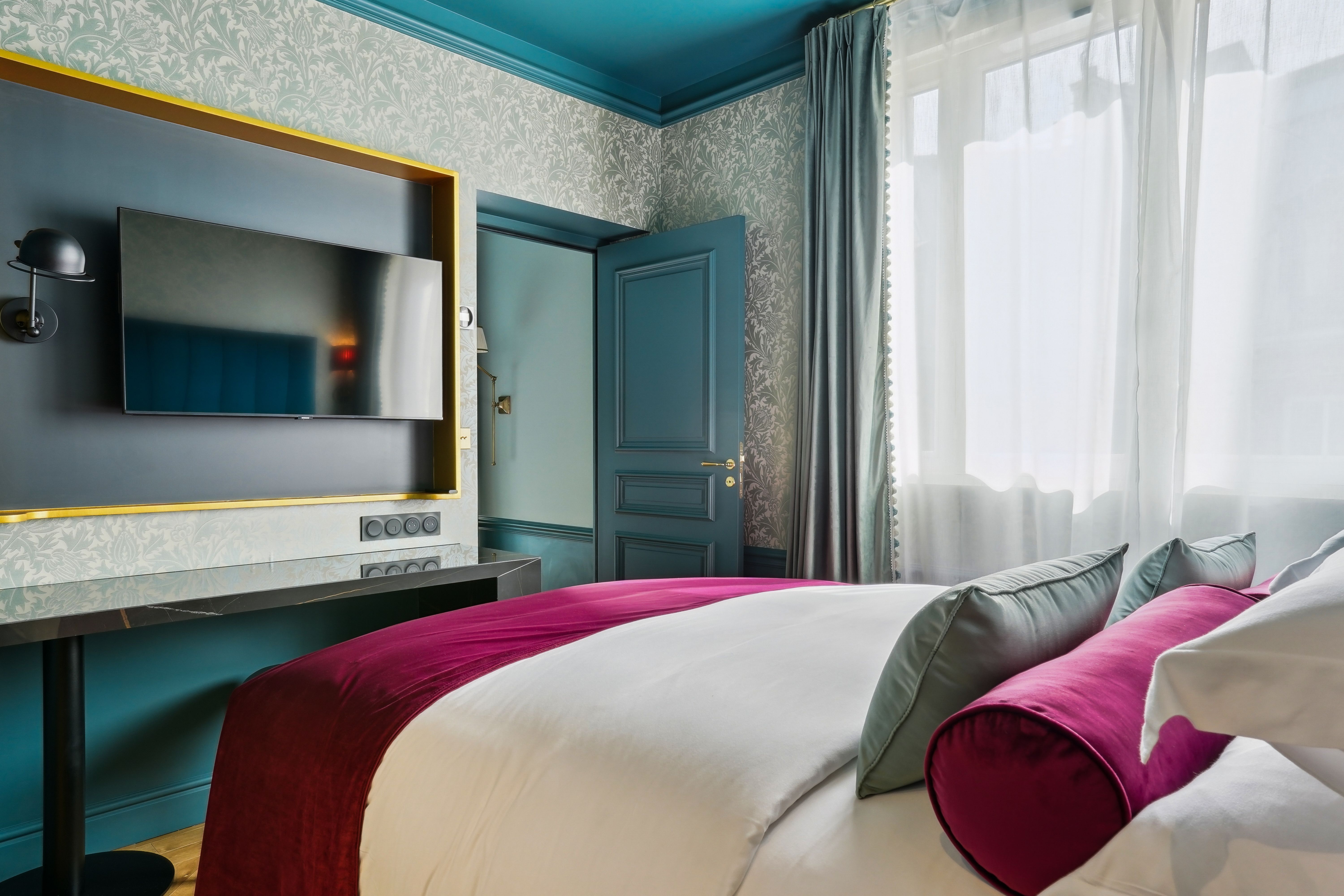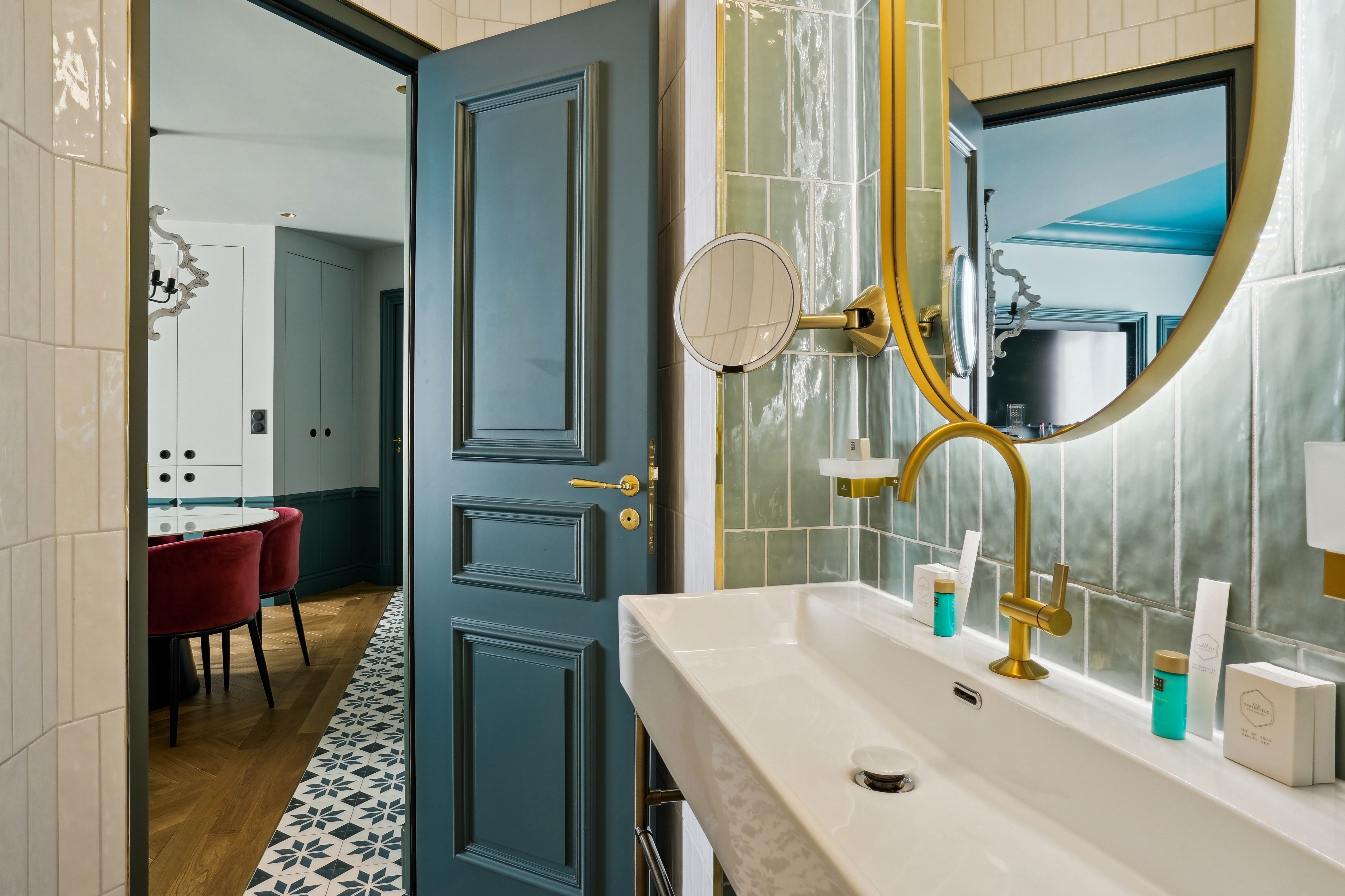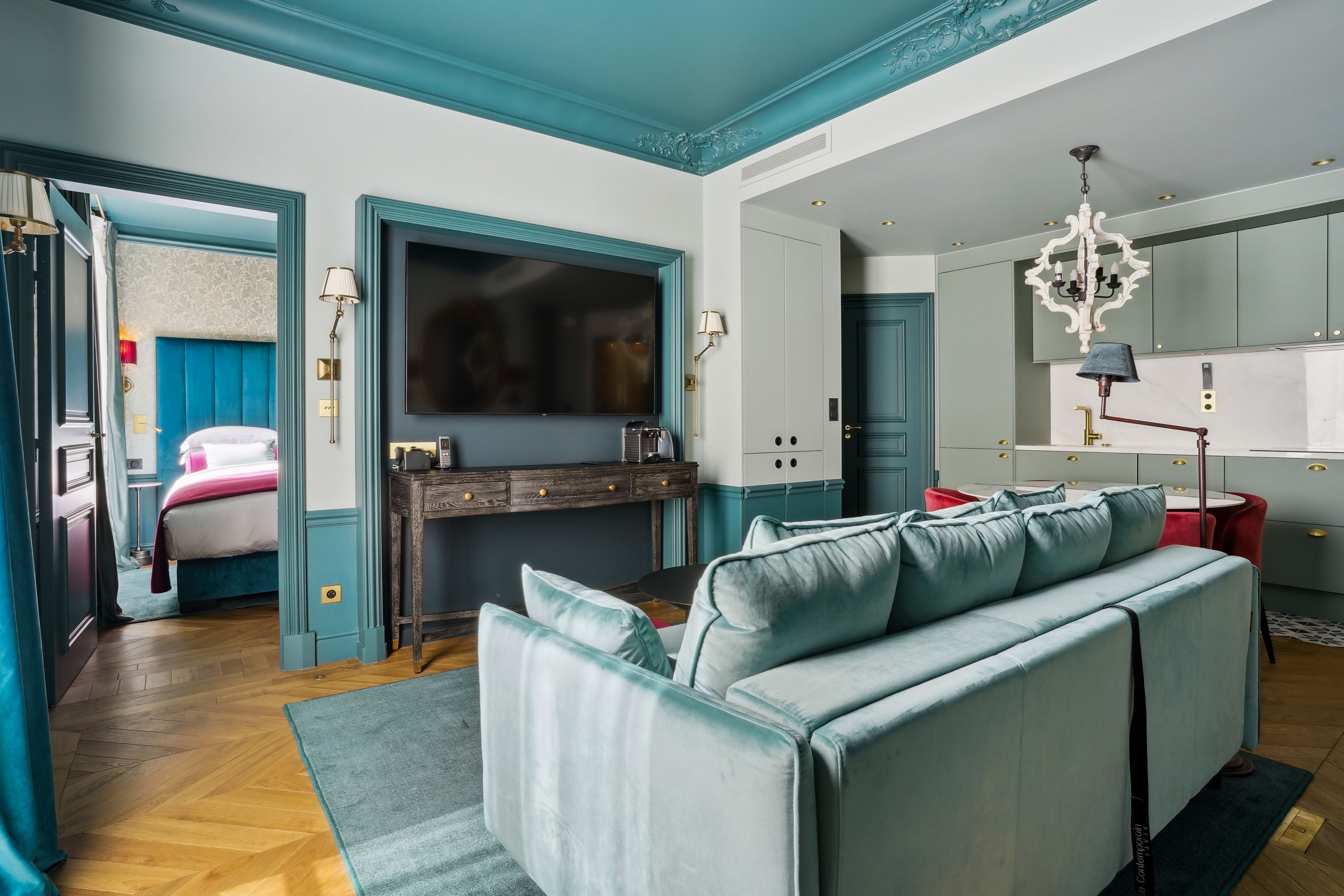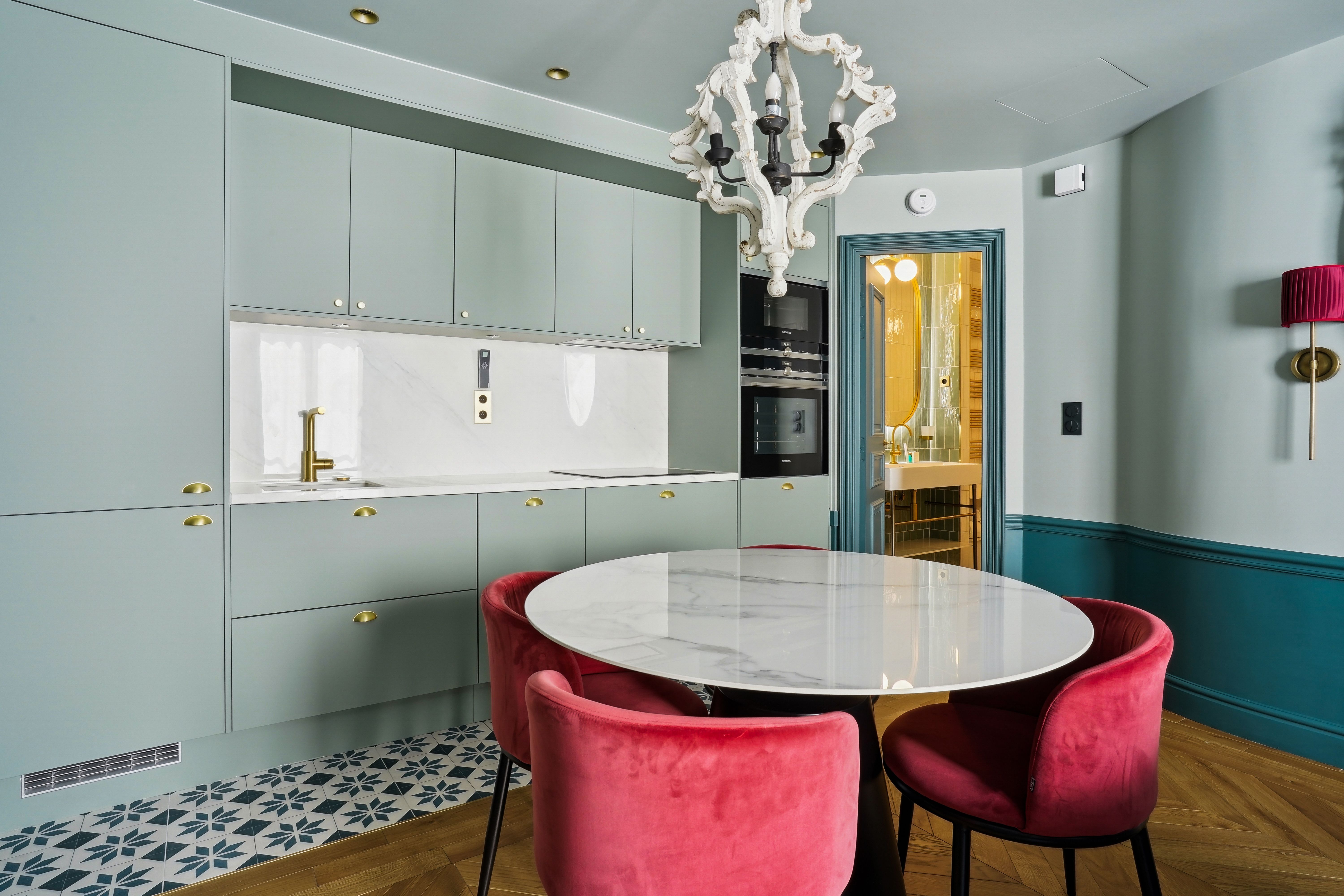 This apartment in chic Madeleine is not to be missed. Although it's on the smaller side, it's filled with five-star details. Our favourite feature is the Jacuzzi-style bath, perfect for a post-sightseeing soak. The kitchen is well-appointed (albeit compact), the bedroom has plenty of storage, and the moody decor radiates Parisian glam. Just note that two guests will sleep on a sofa bed. Location-wise, you're surrounded by cafes, shops and restaurants here. A short walk away is the iconic Opéra Garnier, while a metro station is five minutes on foot – no wonder it caught our eye.