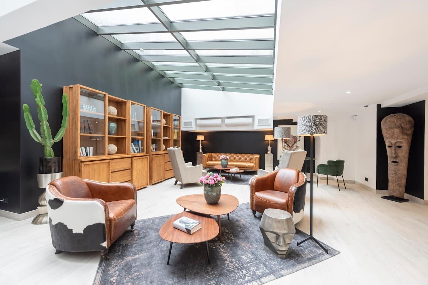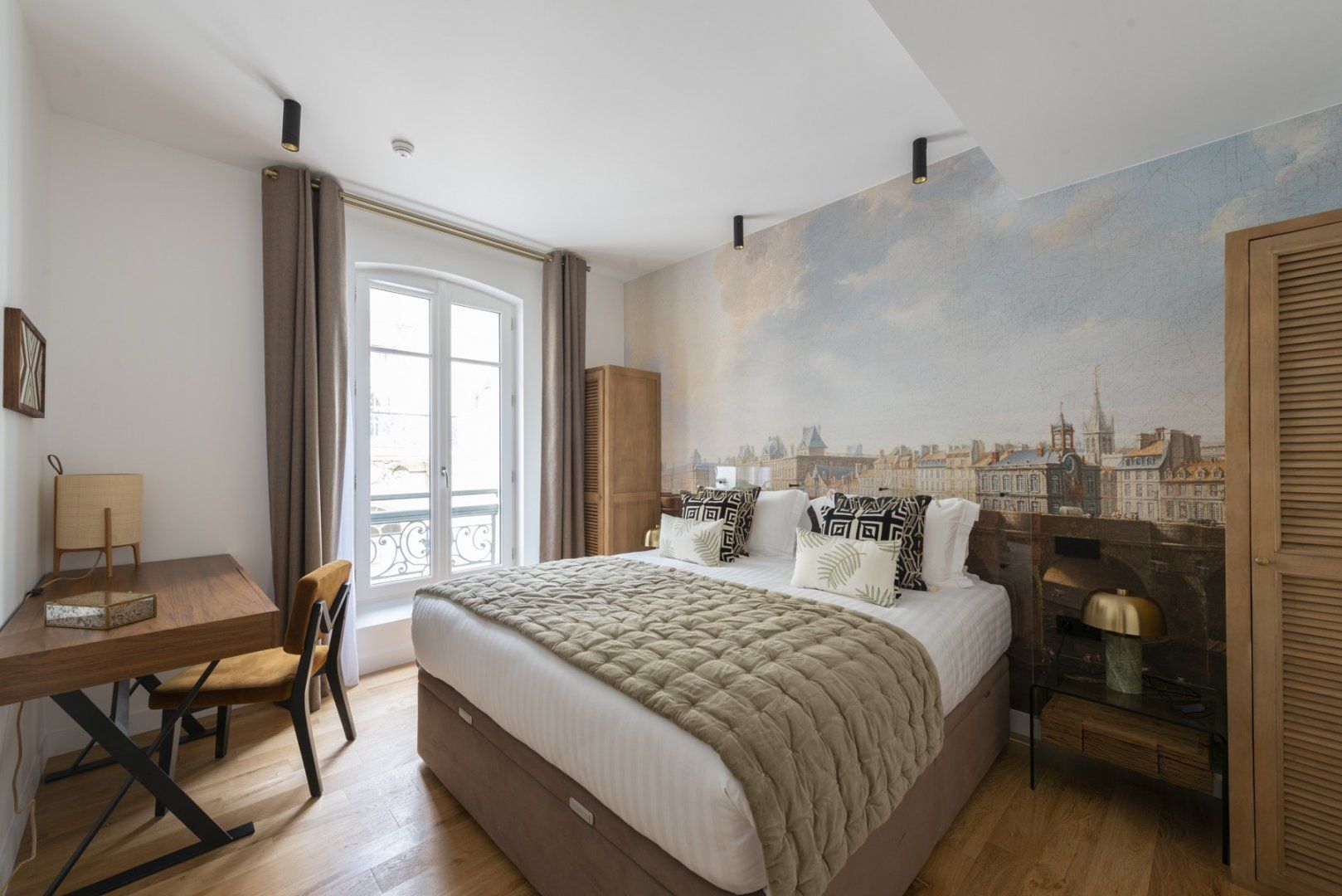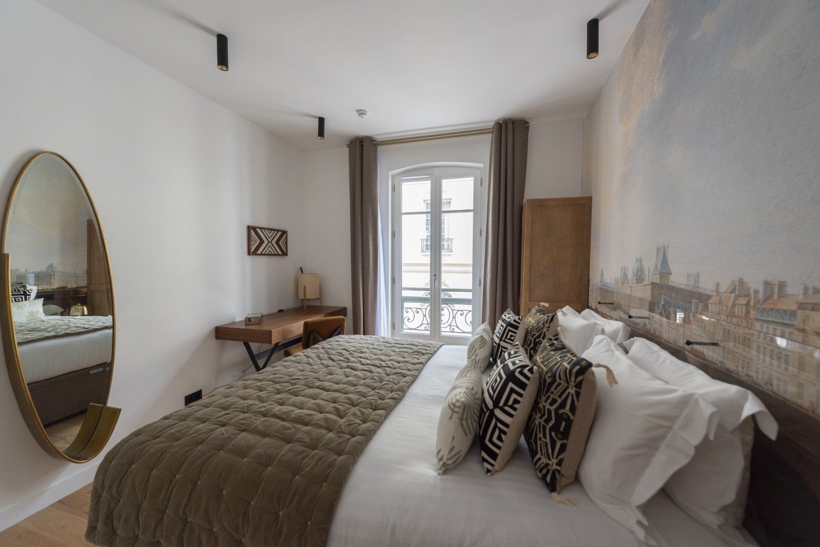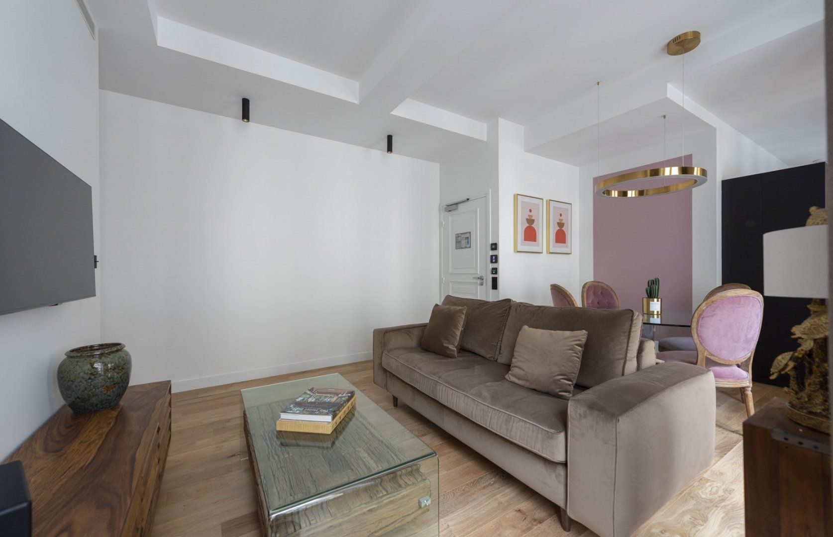 Located in one of Paris’ most glamorous neighbourhoods – just a five-minute walk from the Arc de Triomphe – this stylish apartment perfectly reflects its chic environs. Though close to some of the city's most famous sights, the building's locale on a quiet street ensures a relaxing, restful stay. From its wood floors to its contemporary furnishings and French doors giving way to beautiful Juliet balconies, there’s an effortless elegance to this home that will make you feel welcome right away. We love the glass dining table with its plush pink seats that give off some serious Marie Antoinette vibes, while the bedroom’s Paris-inspired mural creates a dreamy canvas for a blissful night’s sleep. There’s a desk space here too should you need to catch up on work, but with your building’s communal lounge boasting an indoor fire pit and a pool table – not to mention the countless sights waiting for you on your doorstep – we suggest less work and more play here. Speaking of exploring, walk just three minutes for some indulgent retail therapy on the Champs-Élysées, stroll along the Seine (a fifteen-minute walk) or visit Paris’ most iconic sight – the Eiffel Tower, bien sûr – thirty minutes on foot from your door.